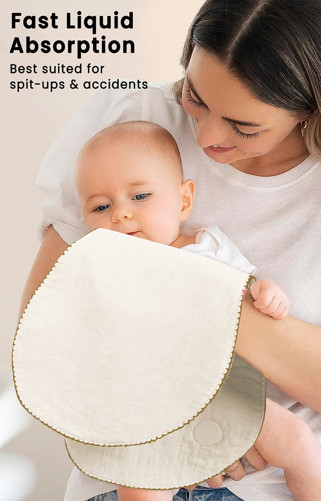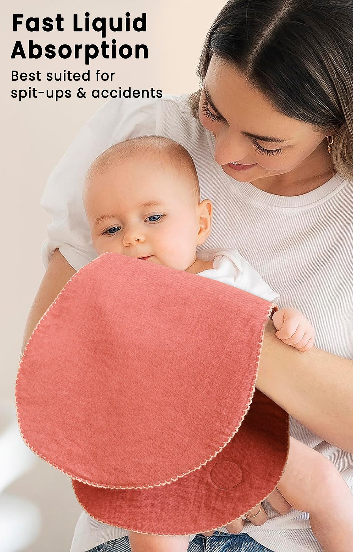 Crafted from breathable, lightweight muslin, these burp cloths are gentle on your baby’s delicate skin while keeping you protected from spills and messes. Highly absorbent and quick-drying, they’re perfect for everyday use. The fabric gets softer with every wash, making them a long-lasting essential for both baby and parent.