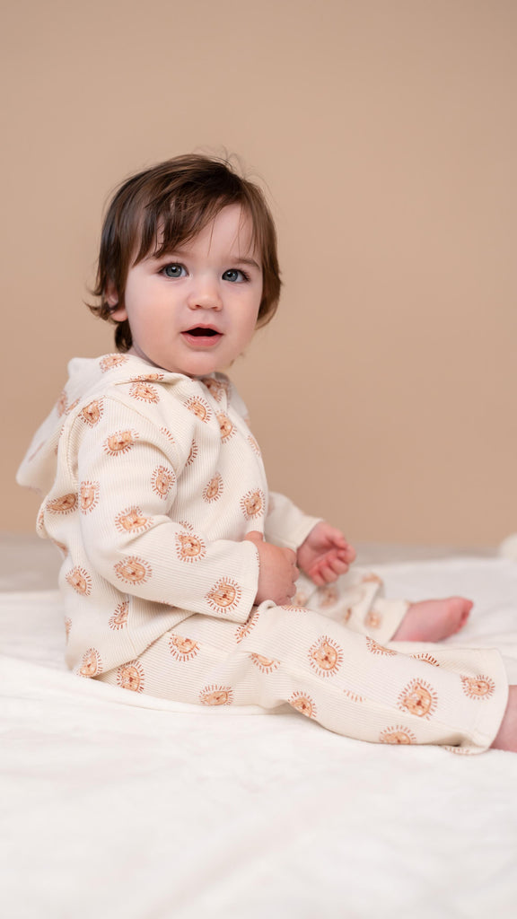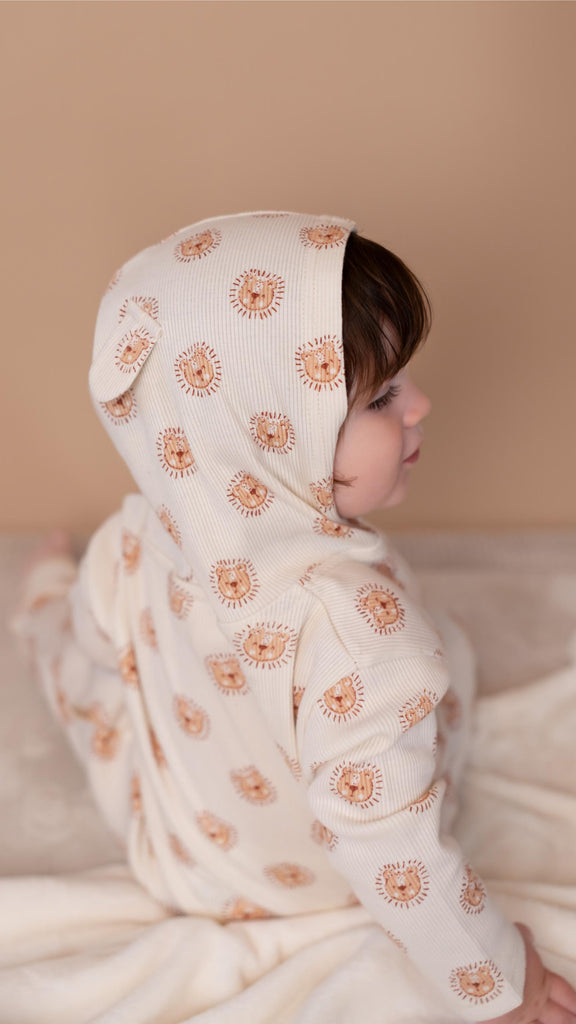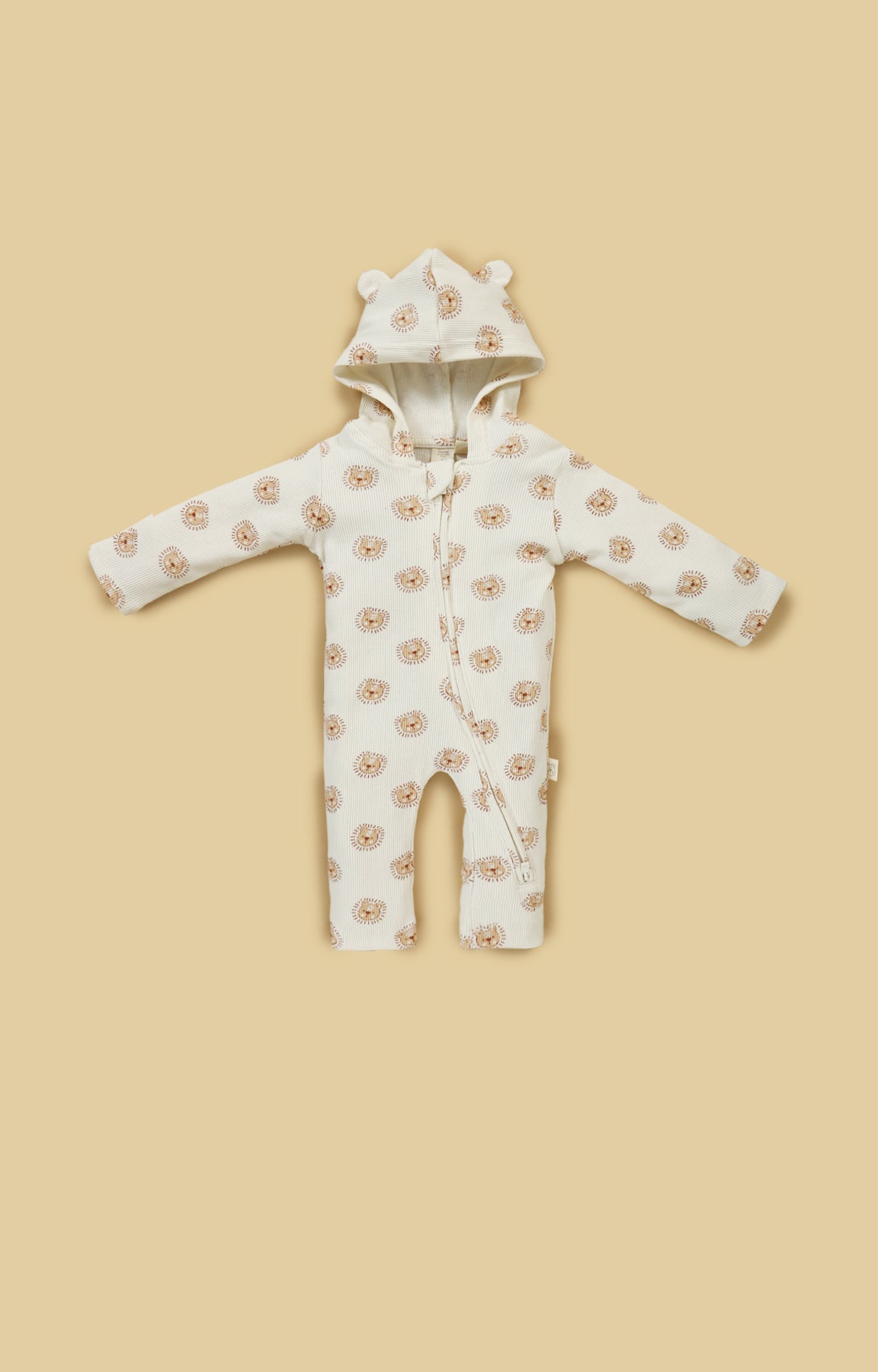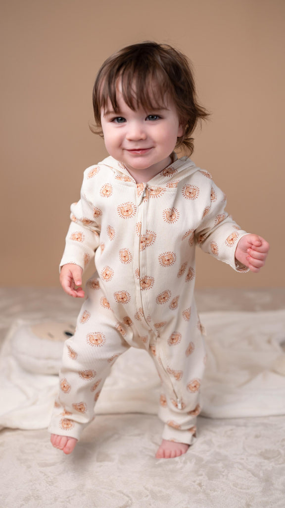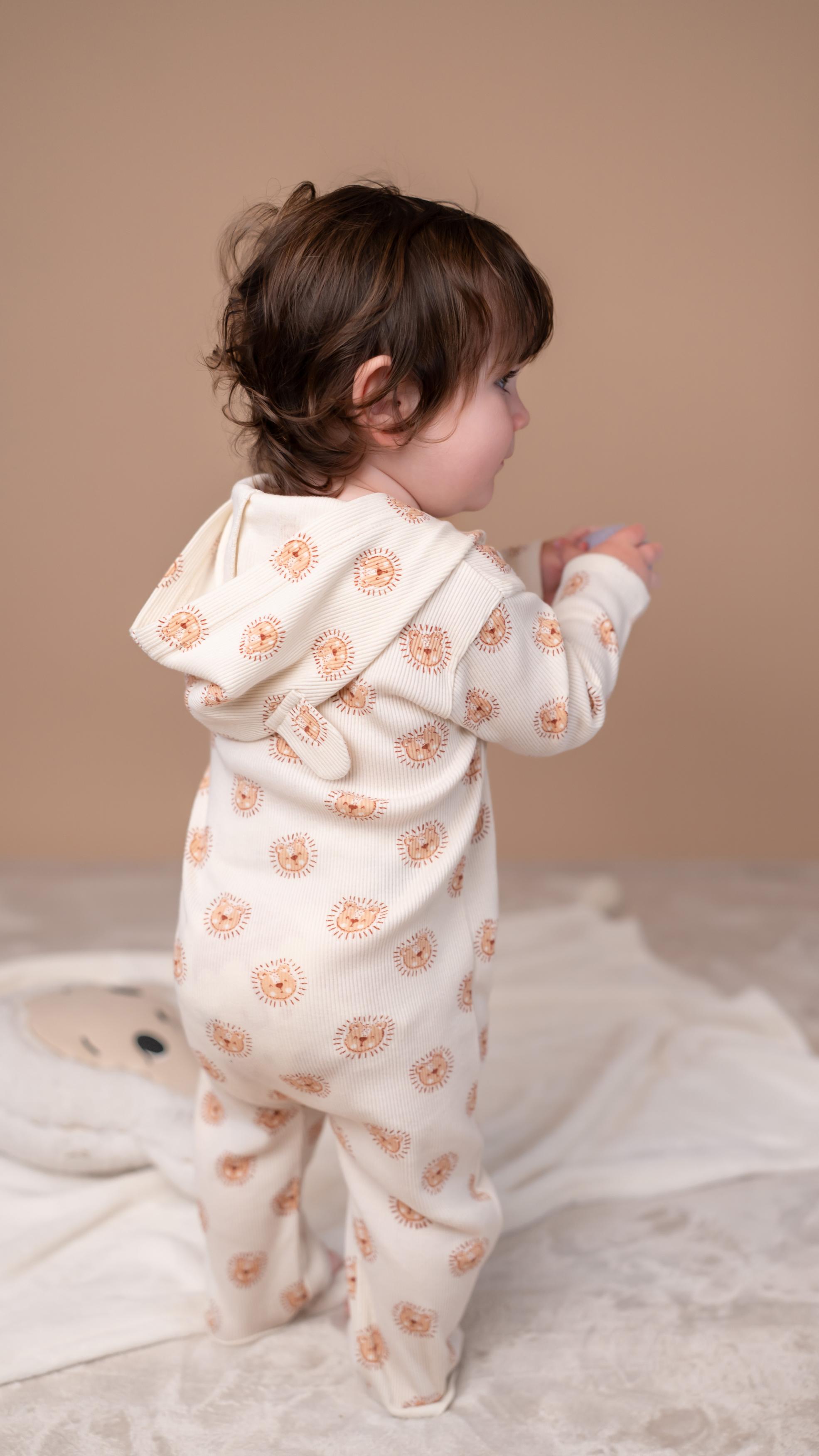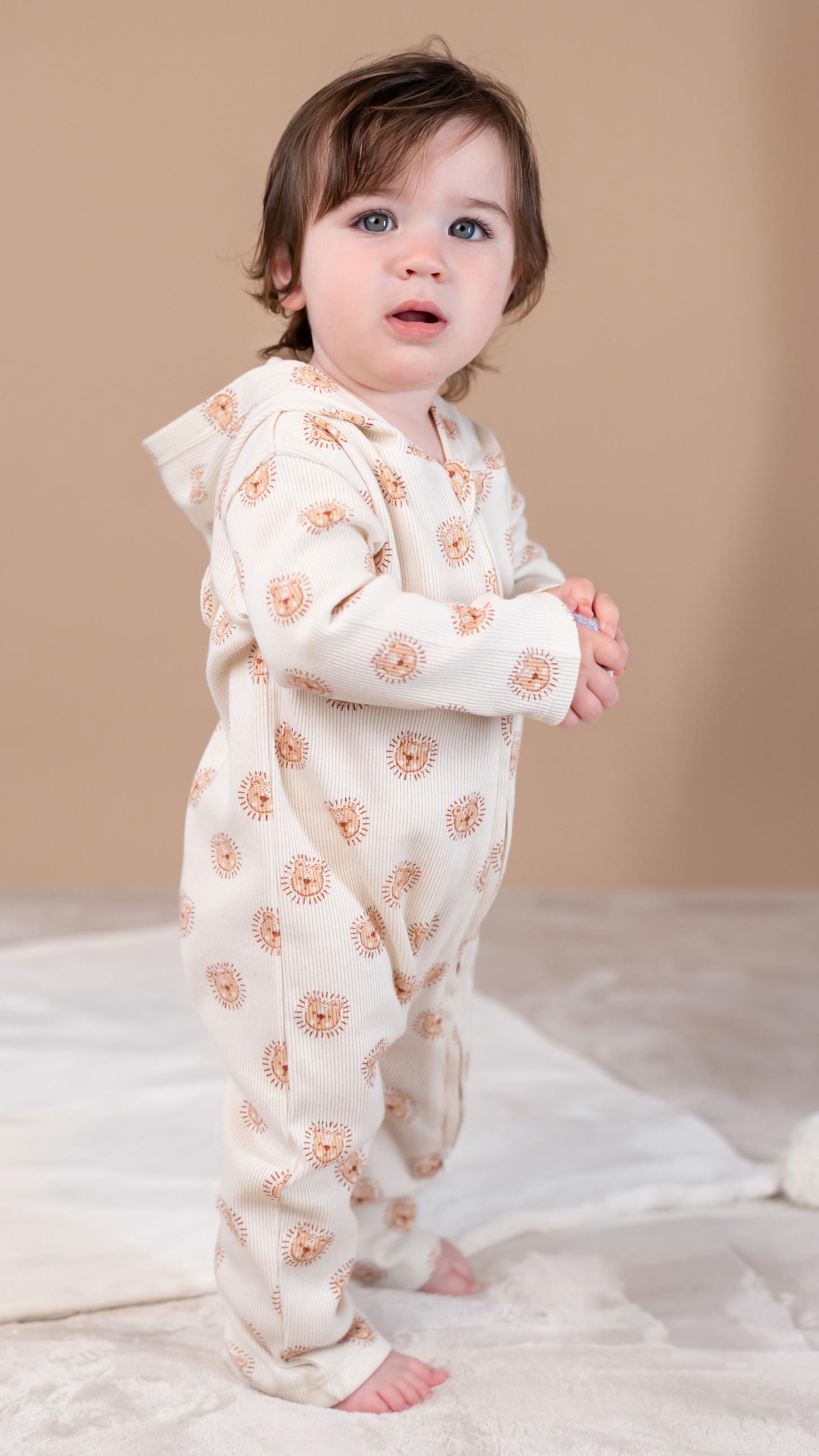 Made from soft, breathable Rib 2x1 fabric, this features playful all-over lion printed romper. Easy zipper closures, it keeps your little one cozy, comfortable, and irresistibly cute every day.