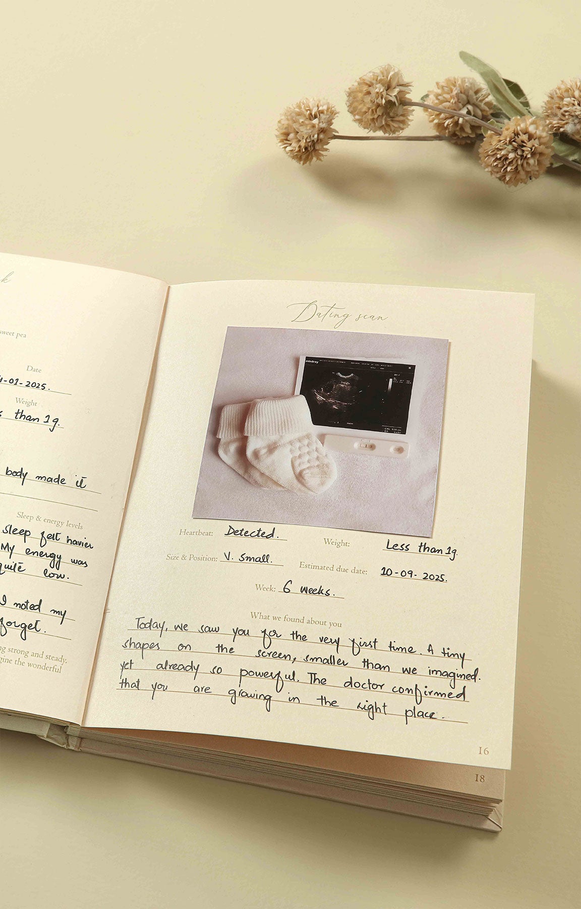 A beautifully minimal pregnancy journal designed to capture every milestone from bump to birth. Thoughtfully crafted pages help you reflect, record memories, and cherish your journey into motherhood.
