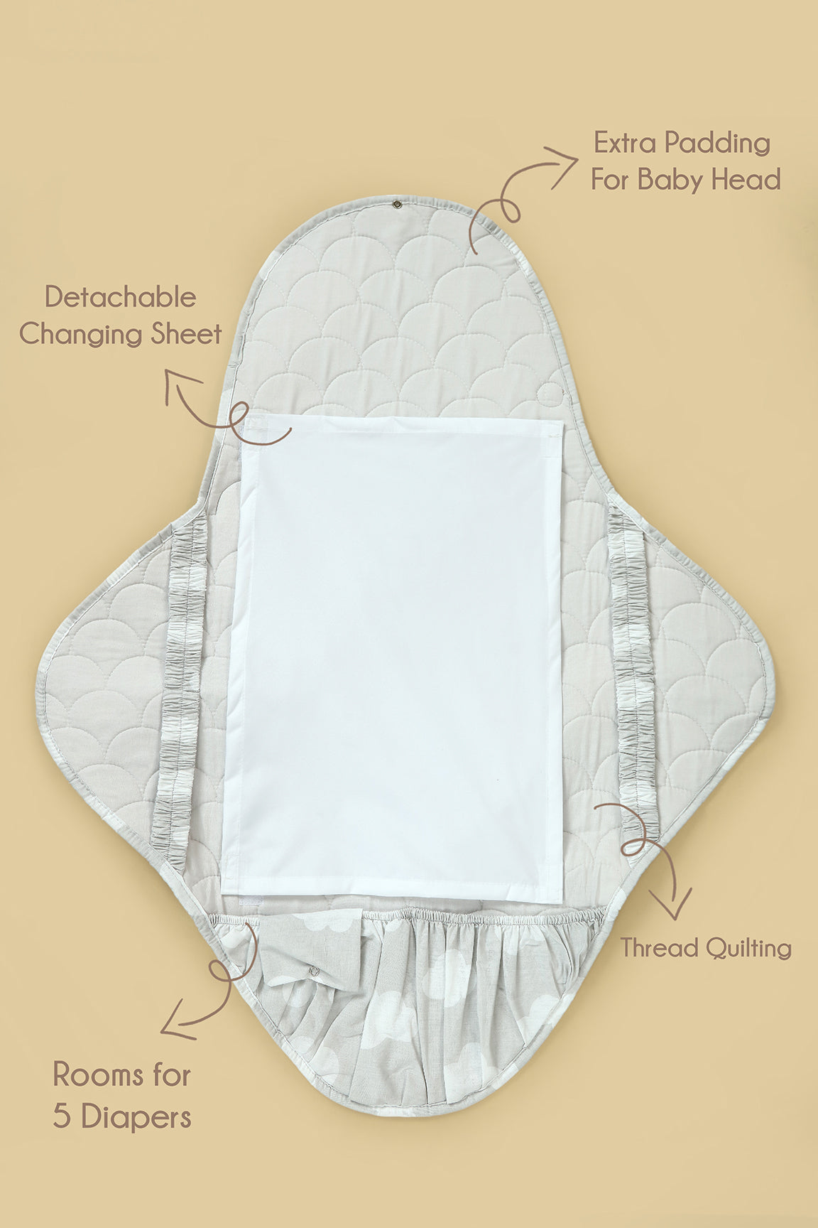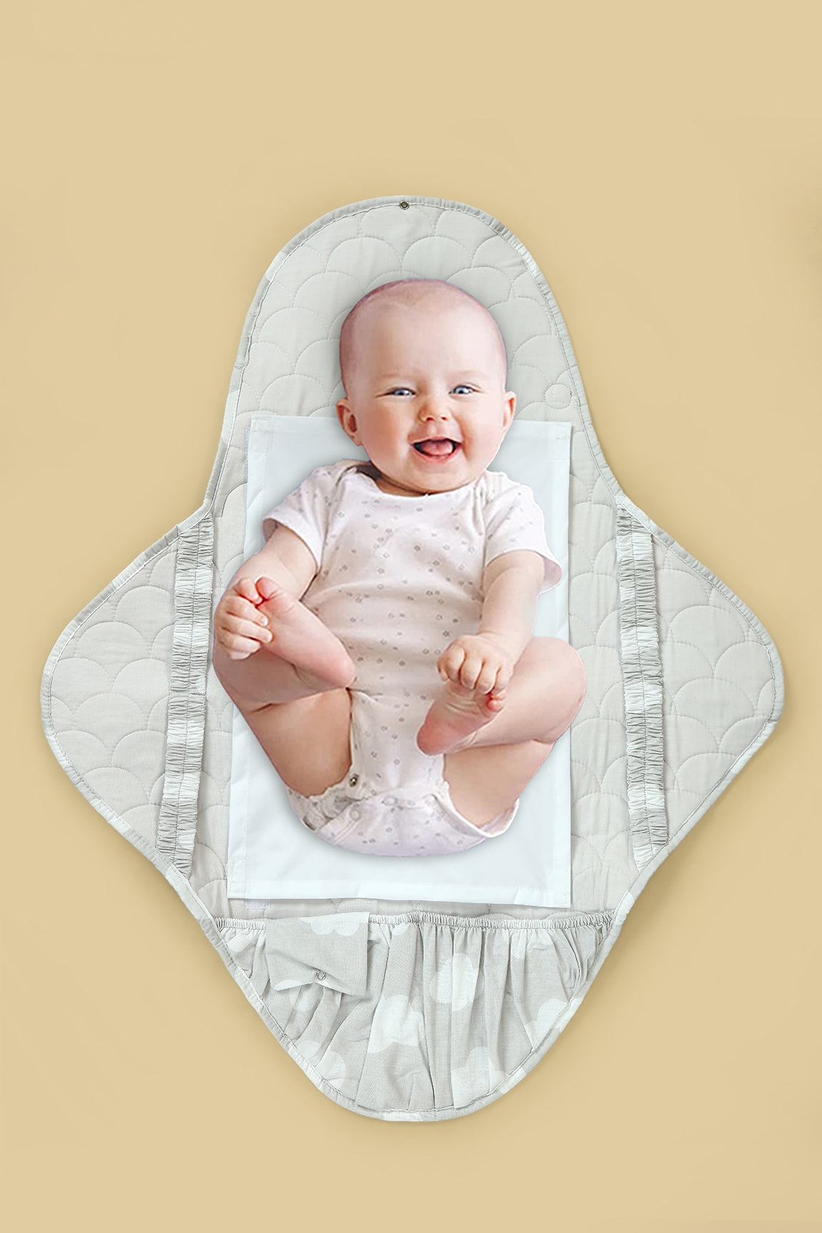 A baby diaper changing sheet provides a clean, comfortable, and hygienic surface for diaper changes, often with added storage for essentials.