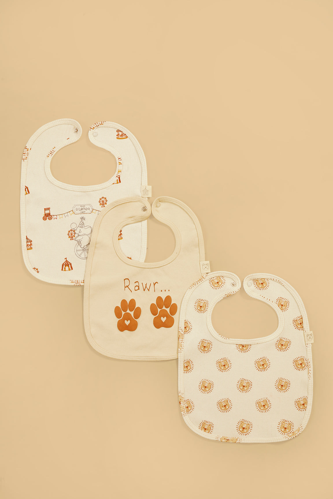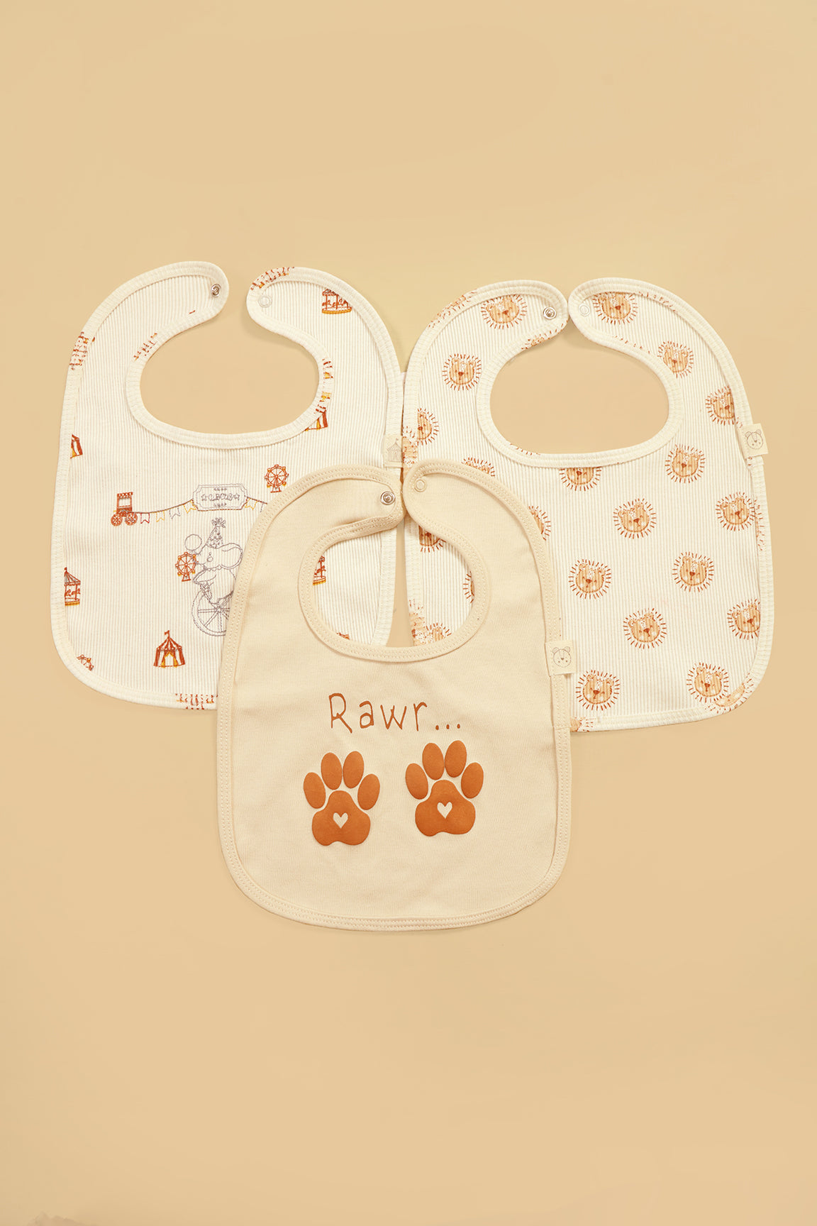 Crafted from soft, breathable interlock and rib 2x1 fabric, the Circus Pals Bundle features playful circus tent prints, cheerful lions, and a “Rawr” paw-print design. Two adjustable snap buttons ensure a perfect fit as your baby grows — bringing comfort, cuteness, and fun to every mealtime.
