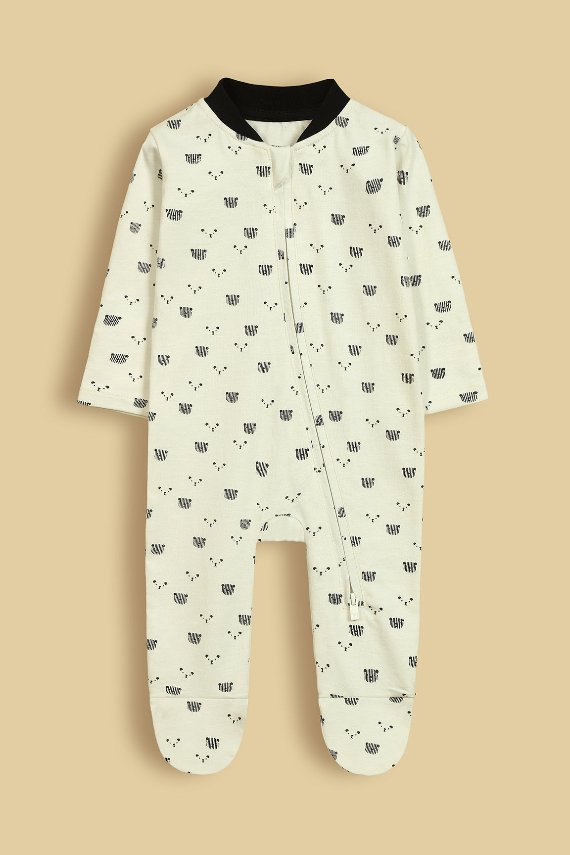 Our Bear printed baby romper is crafted from 100% knitted cotton breathable, soft, and gentle on delicate skin. Designed in playful bear prints with a naturally easy stretch keeping your little one cool, comfy, and cuddled through every summer moment. Thoughtfully made for newborns (0 & 0โ€“3 months), with tiny mittens and footed ease keeping every little part softly cared for.