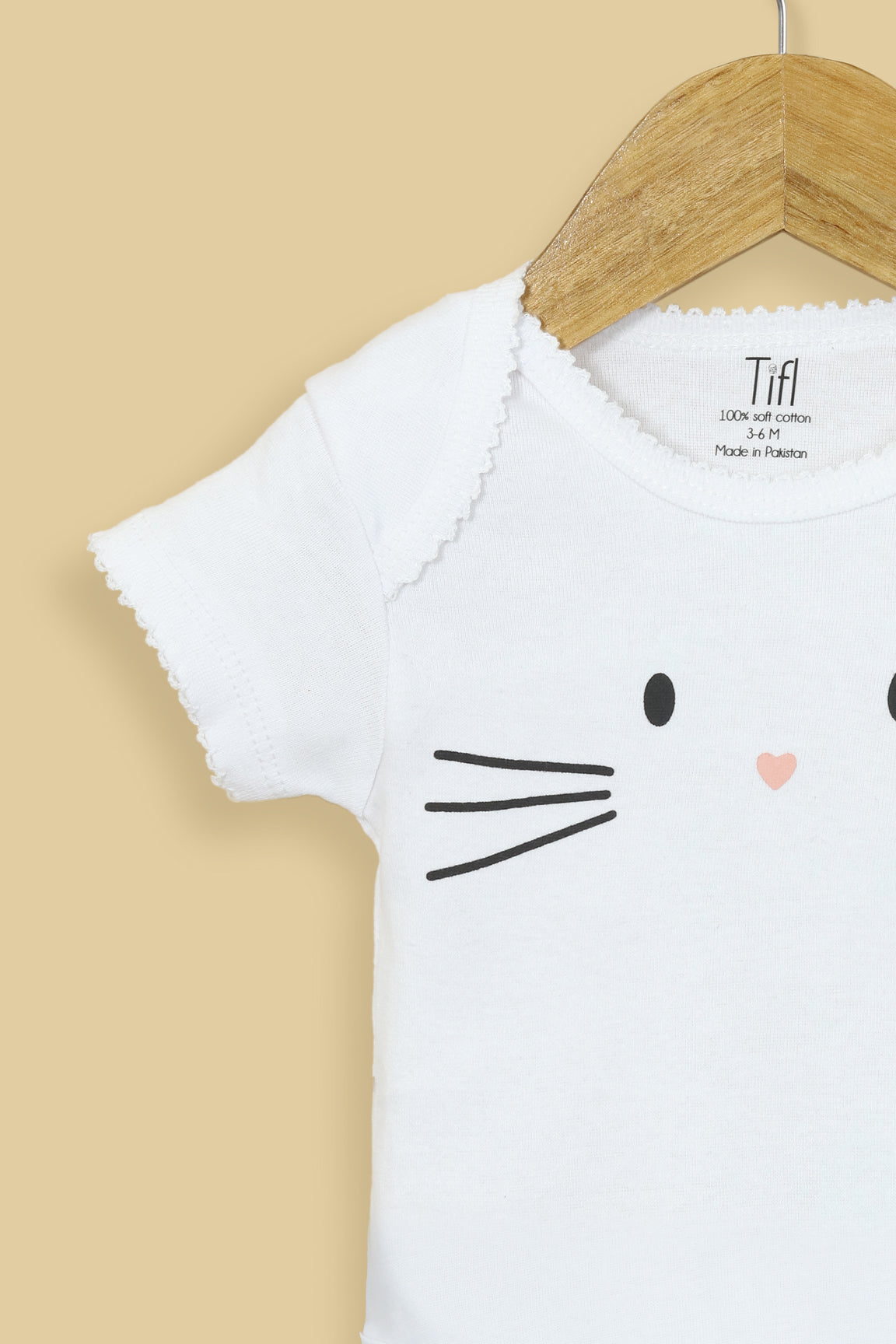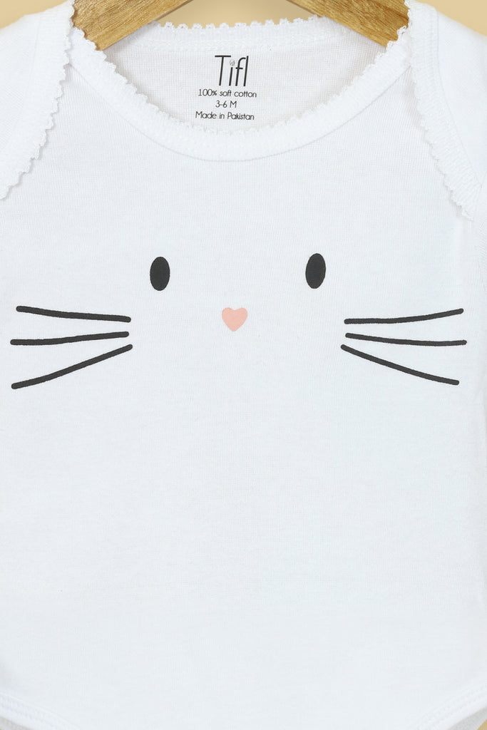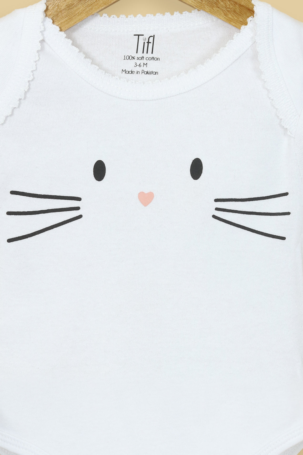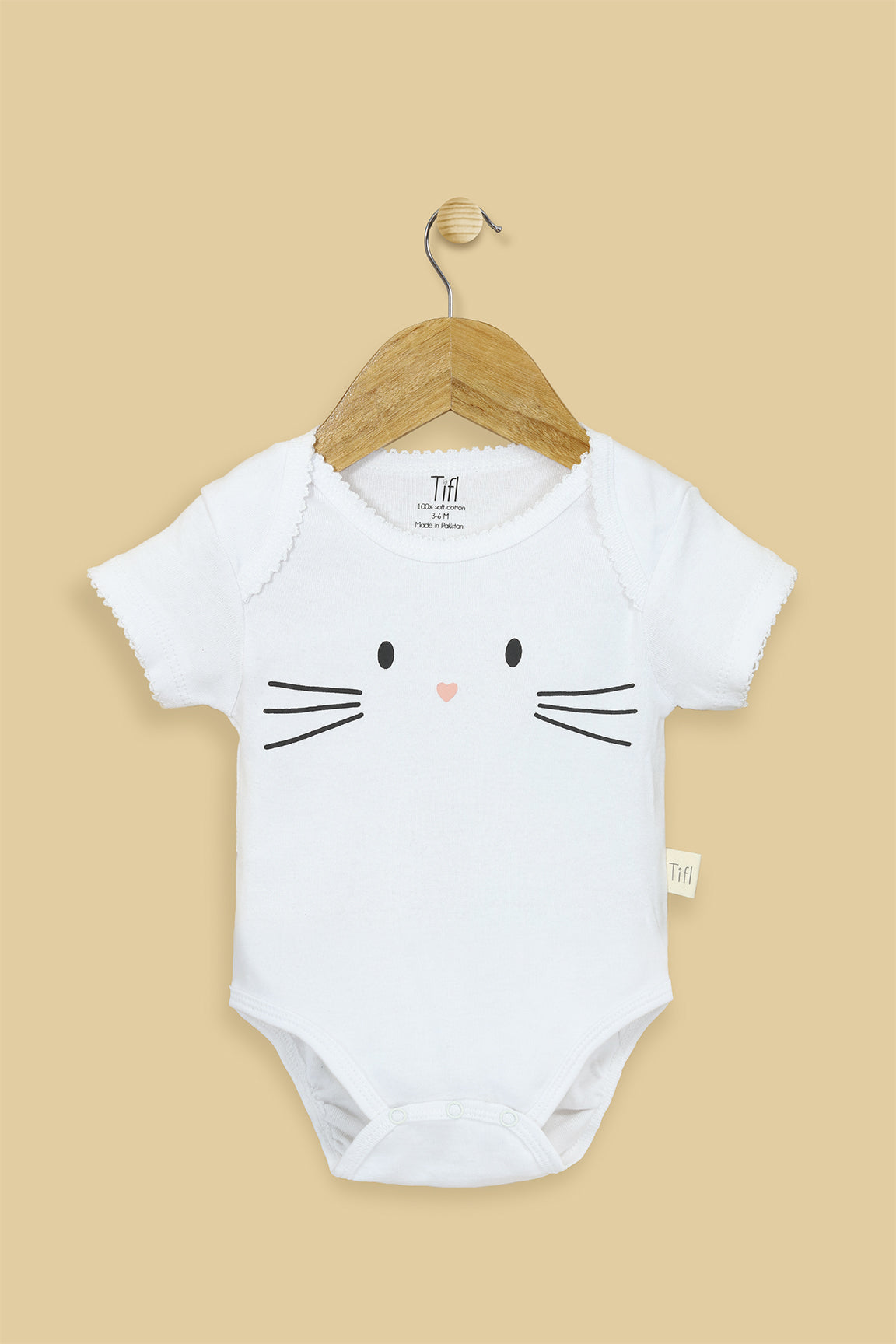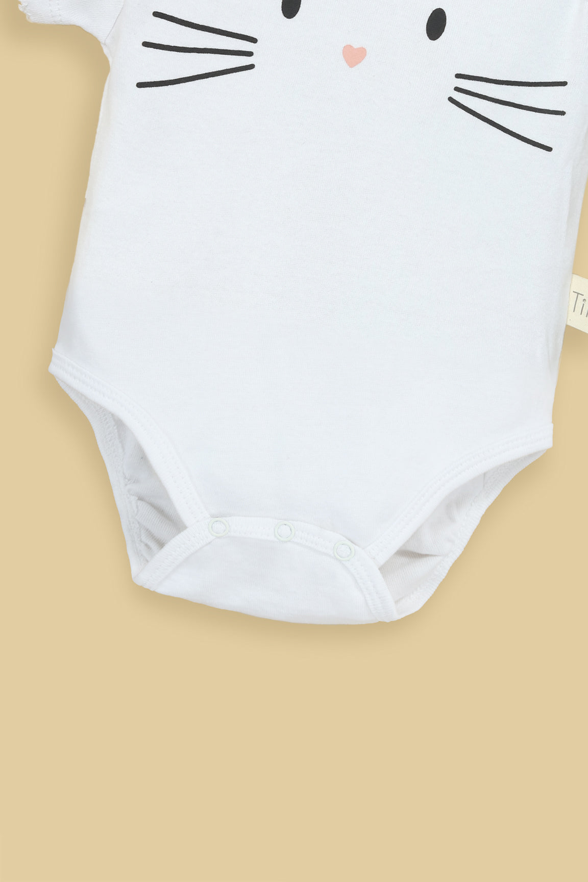 This adorable white bodysuit features a minimalist Bunny face sticker print with tiny whiskers and a sweet heart-shaped nose for a playful touch. Designed with soft jersey fabric and easy snap buttons, it ensures all-day comfort and hassle-free diaper changes. Perfect for everyday wear or as a thoughtful baby gift.