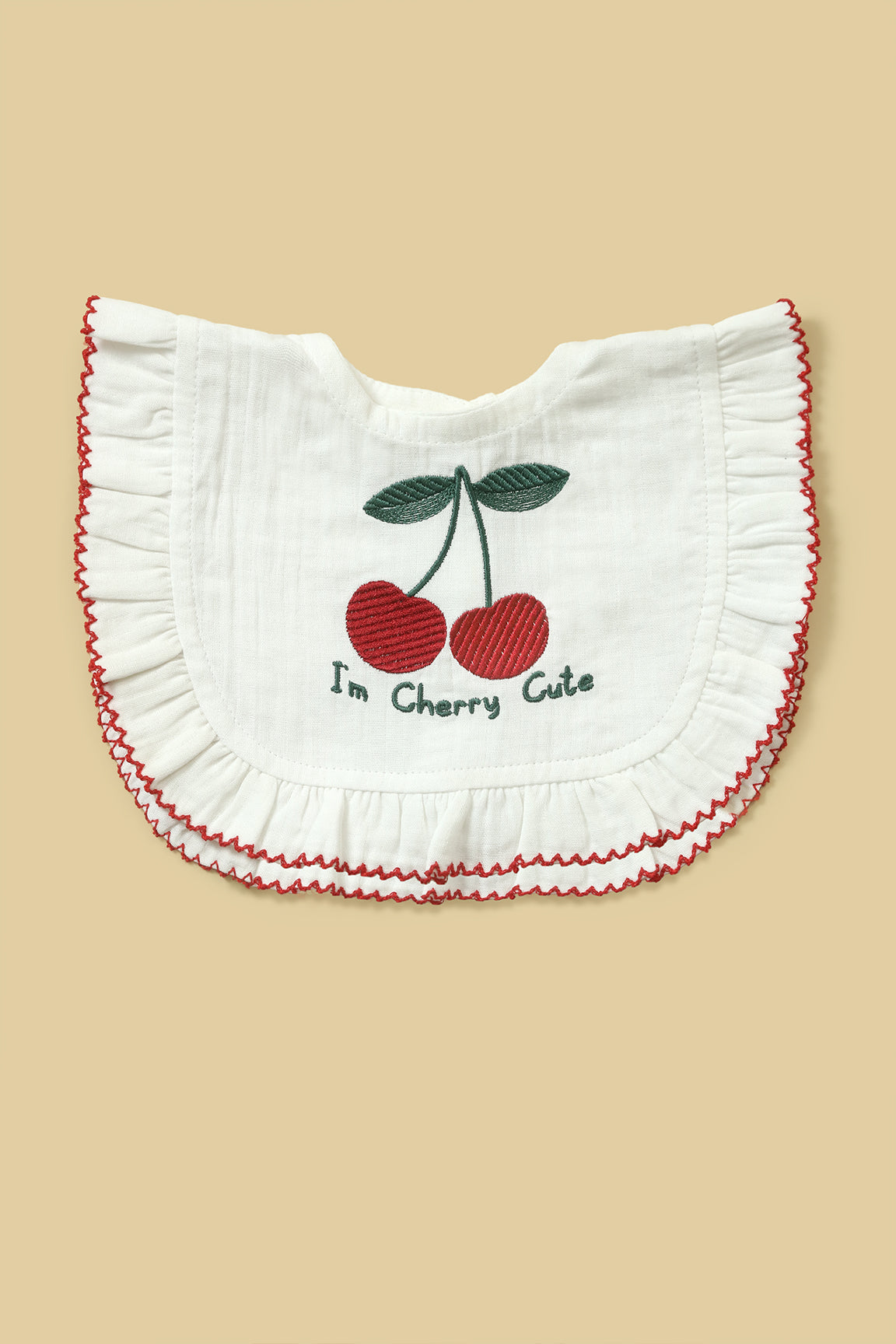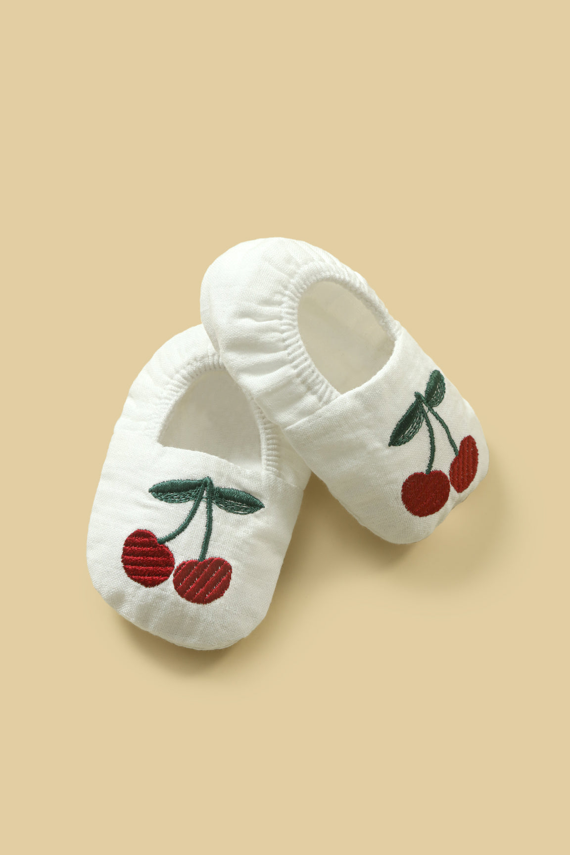 Cherry Embroidered Muslin Baby Gift Set (Bow Headband, Shoes, Bib)