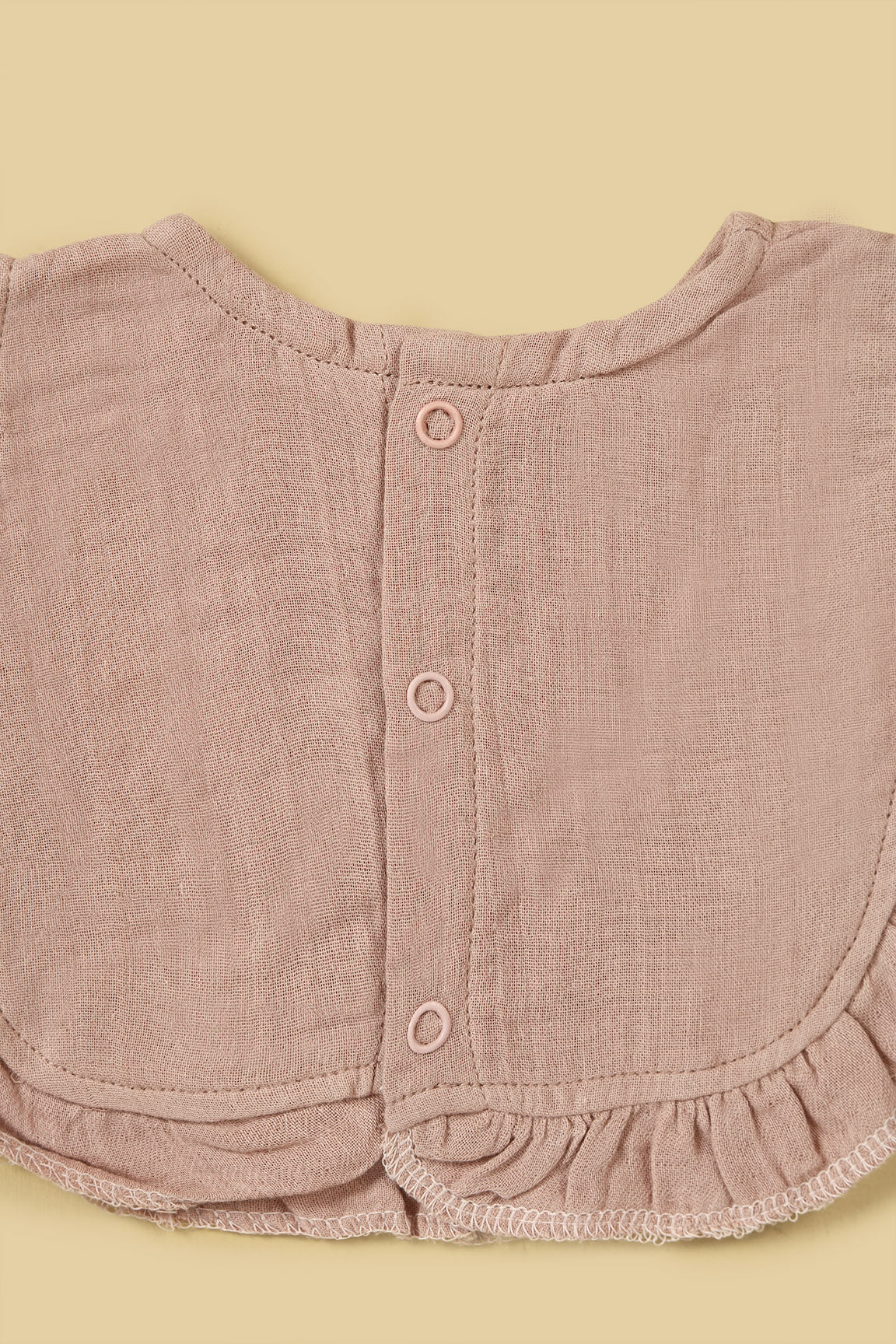 This charming baby accessory set is crafted from premium soft muslin fabric in a rose dust shade. The set includes a ruffled muslin bib, a pair of matching soft-sole shoes, and a cute bow headband, all perfectly coordinated for a stylish newborn look. Perfect for daily wear, gifting, special events, or newborn photo-shoots, this set brings together comfort, softness, and adorable style.
