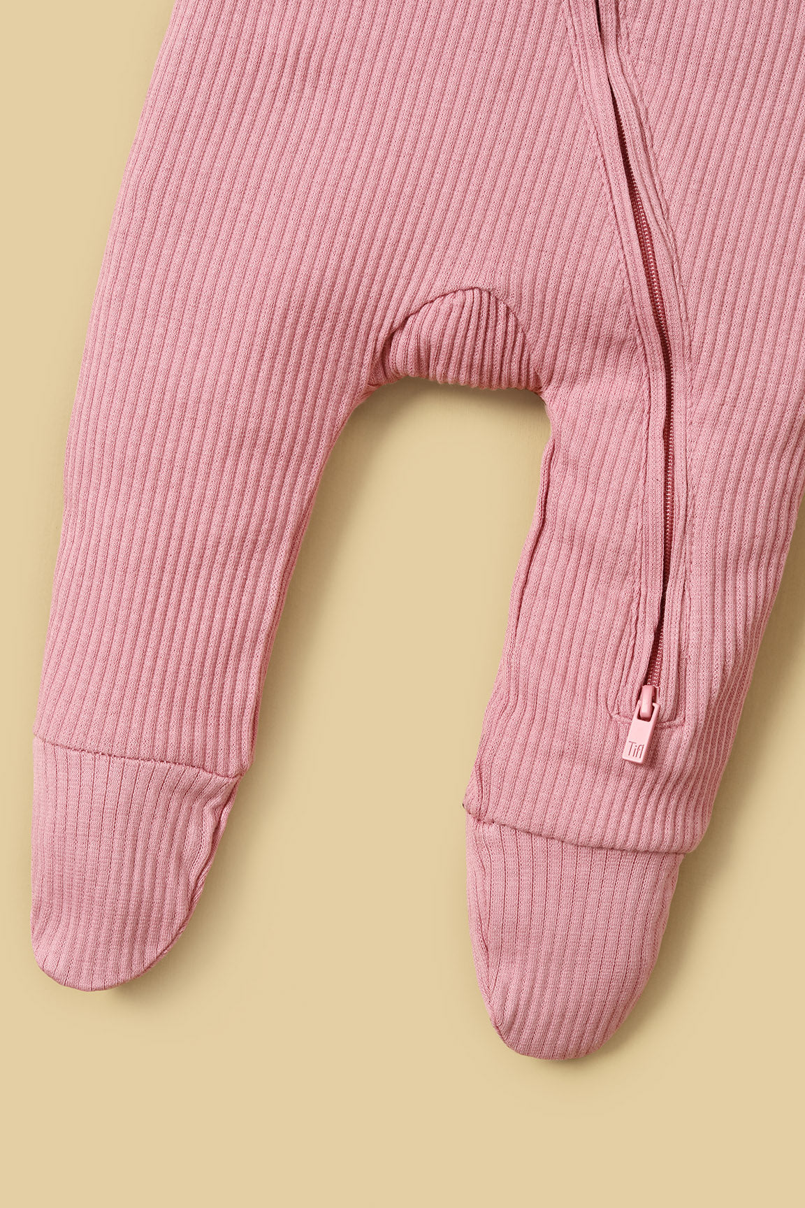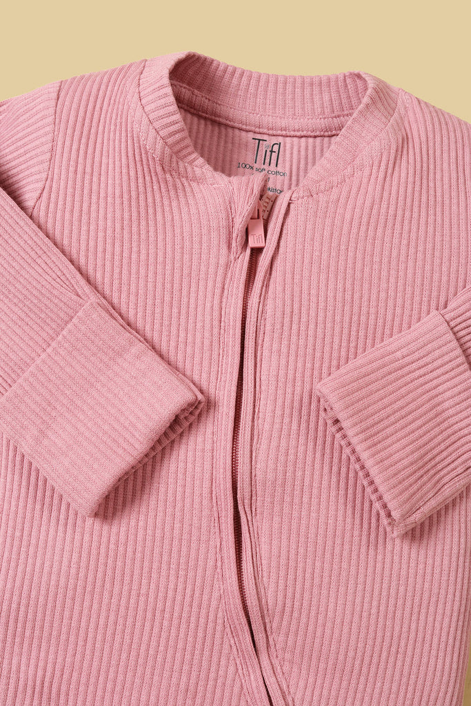 Made from premium 4x1 rib soft cotton, featuring a front zip closure for effortless dressing. The fabric is stretchy, breathable, and gentle on delicate skin, ensuring all-day and night comfort.