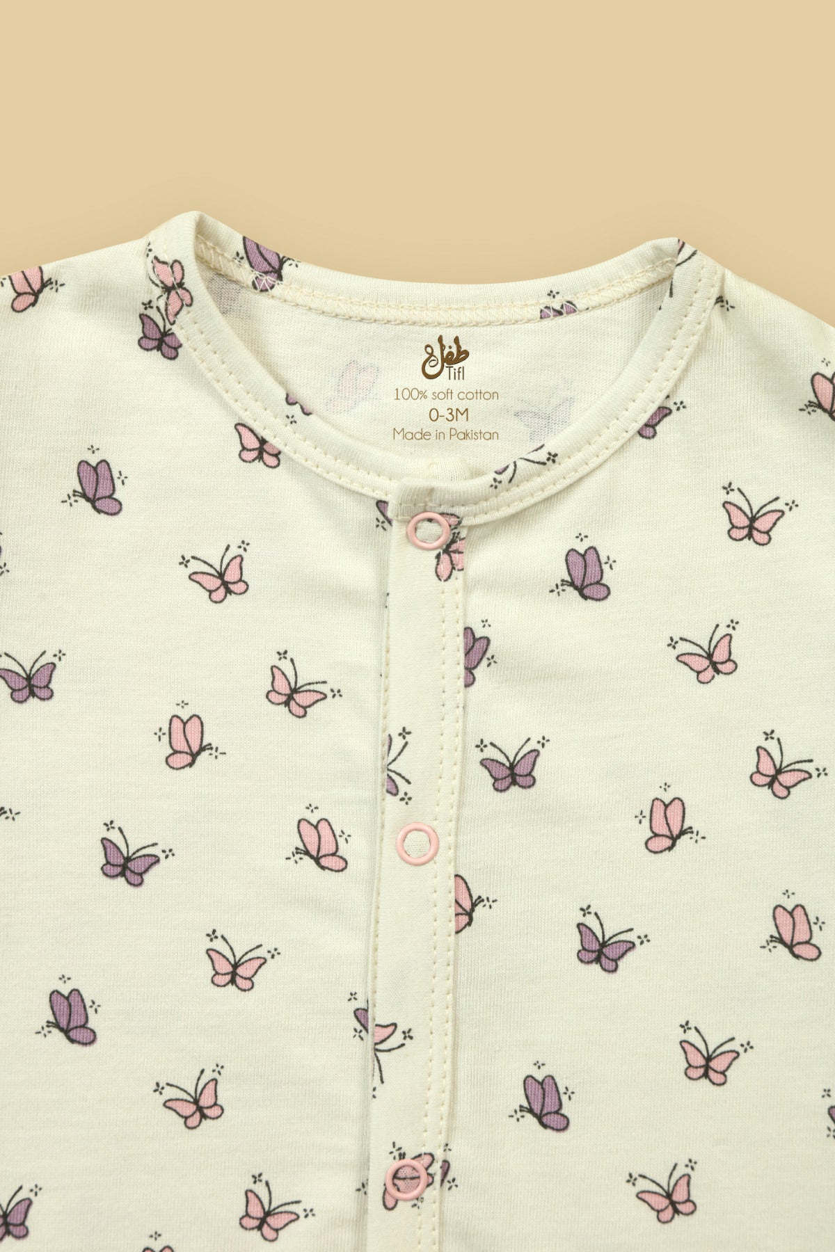 Made from soft, breathable knitted cotton fabric, our Butterfly printed romper are designed for comfort. It keeps your little one cozy and irresistibly cute every day.