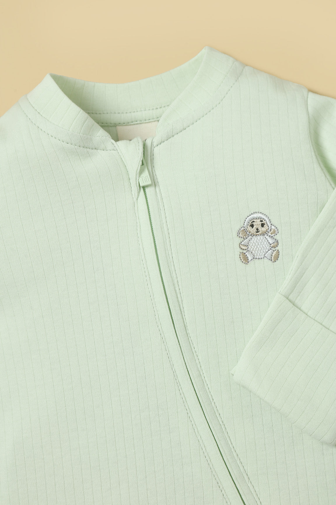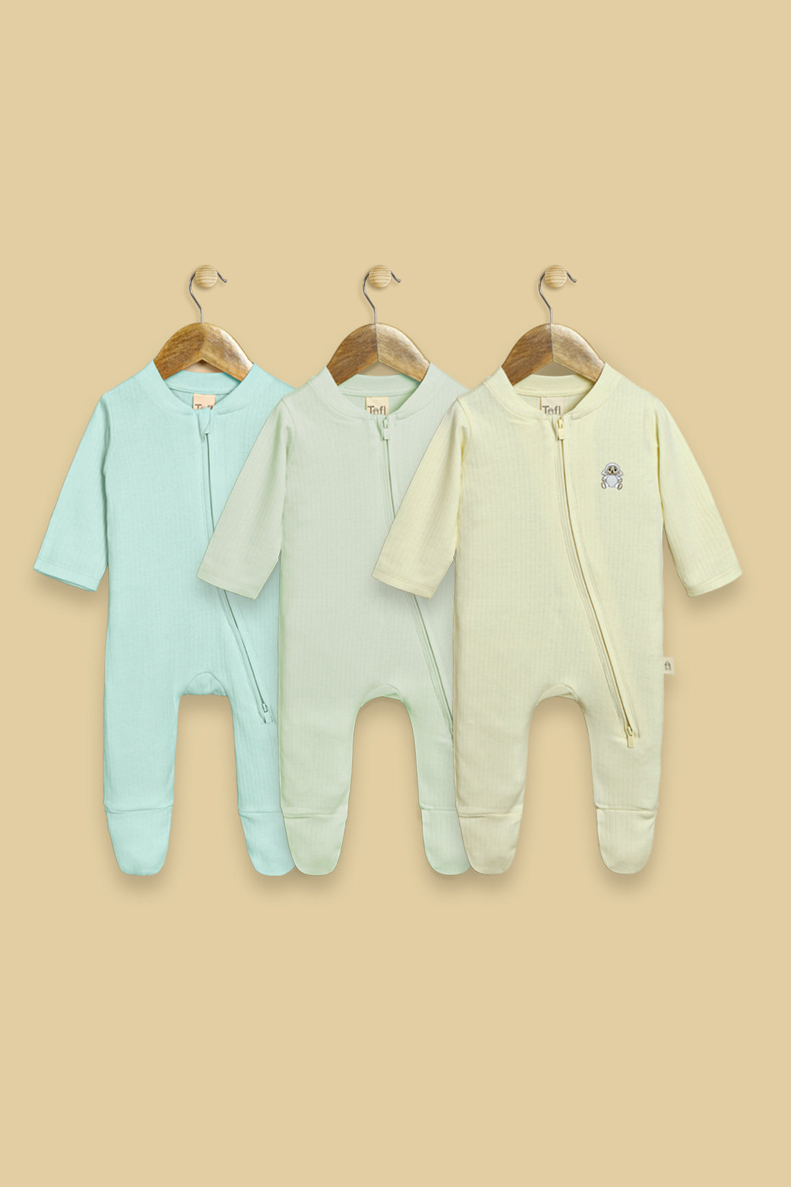 Embroidered Double Zipper Haml Baby Sleepsuit Boy-Pack of 3