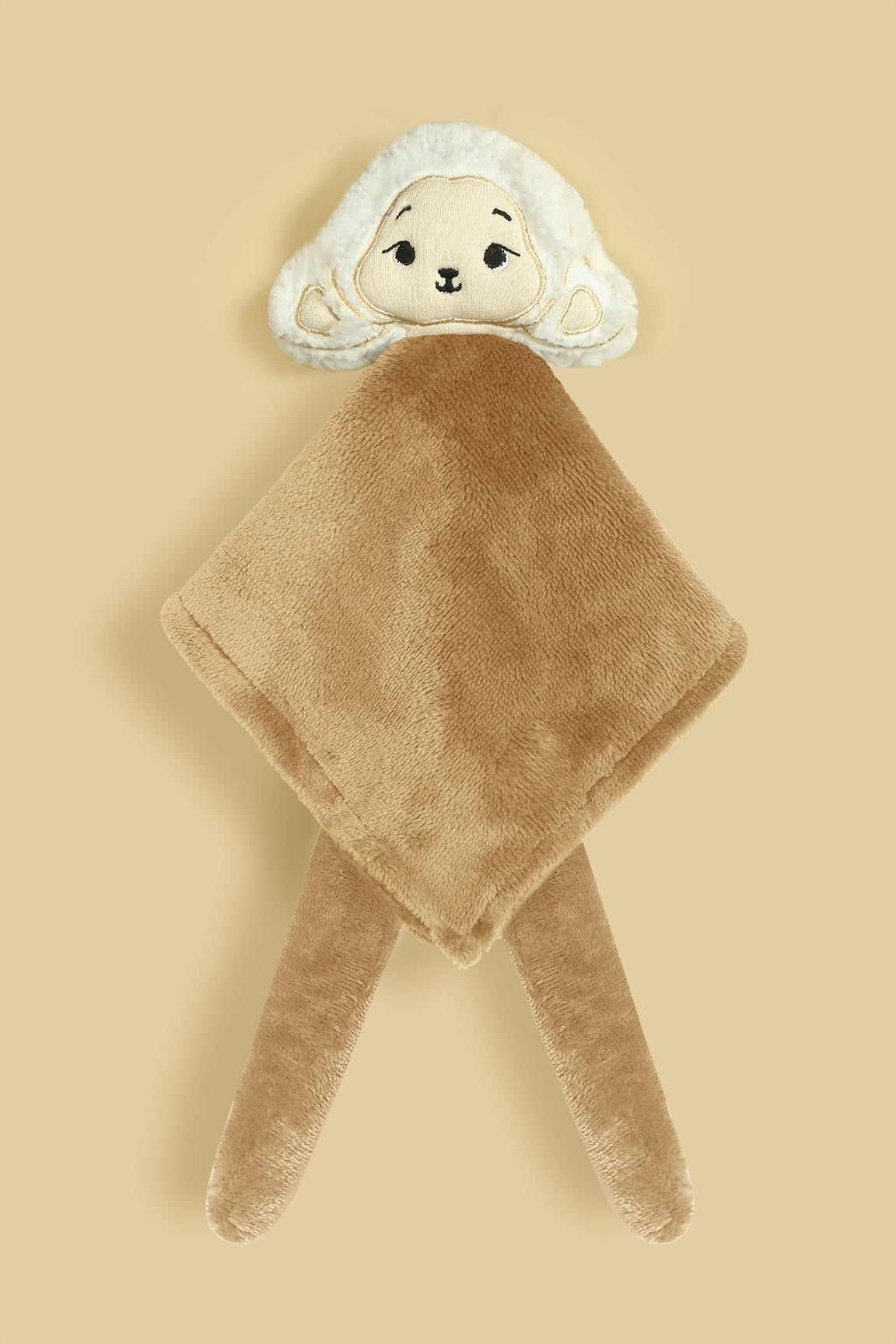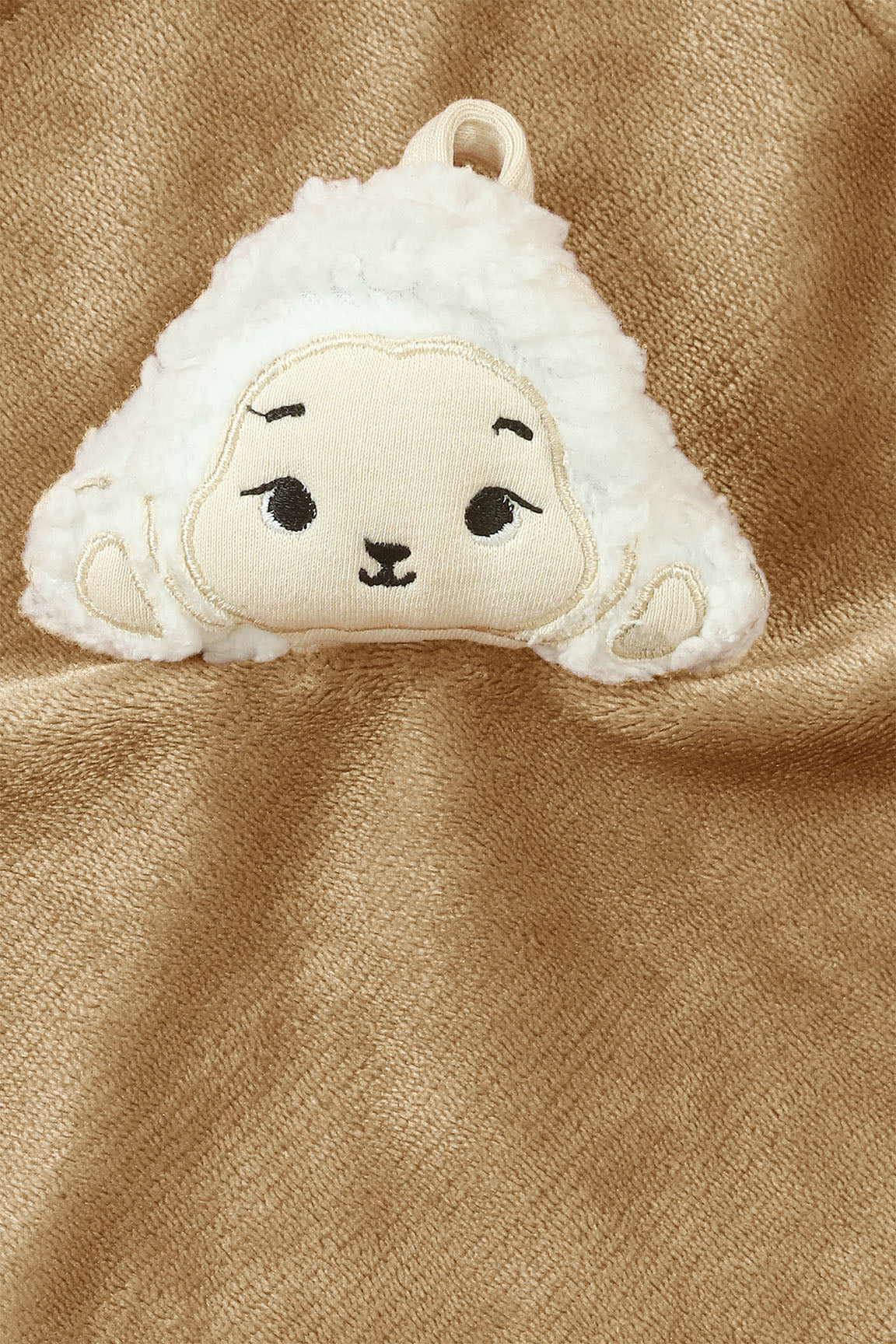 This adorable baby hankie features a soft, microfiber fleece with a cute haml face attached for a touch of charm. A practical yet endearing accessory, it combines comfort and style for your little one.