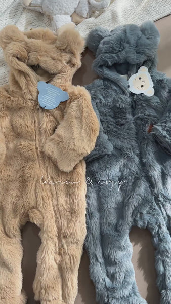This cozy baby upper features a slider zipper for easy wear. Made from fluff fur fleece with a comfortable single jersey inner lining, it keeps your little one warm and gentle on the skin. Also has a hood for warmth, zip guard flap, and anti-slip feet to help your baby move easily.