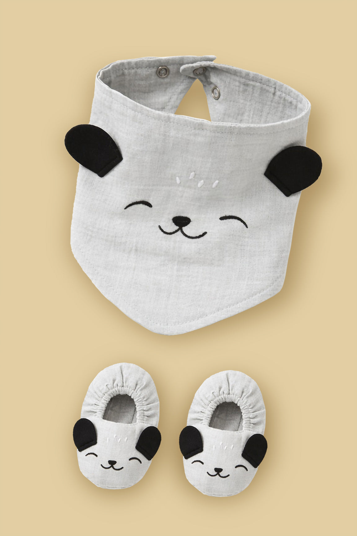 Panda Embroidered Muslin Baby Gift Set (Bib & Shoes)