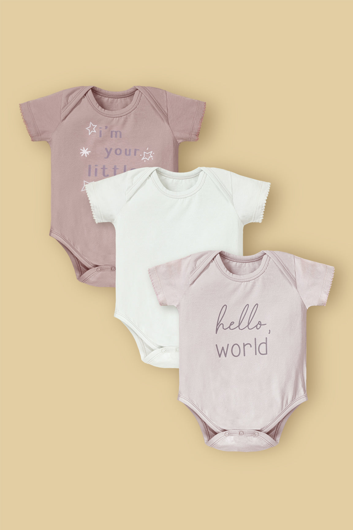 Crafted from 100% soft single jersey, these bodysuits offer a gentle, stretchy fit that moves comfortably with your baby. Featuring playful prints, they’re perfect for everyday wear, combining comfort with an effortlessly cute look.