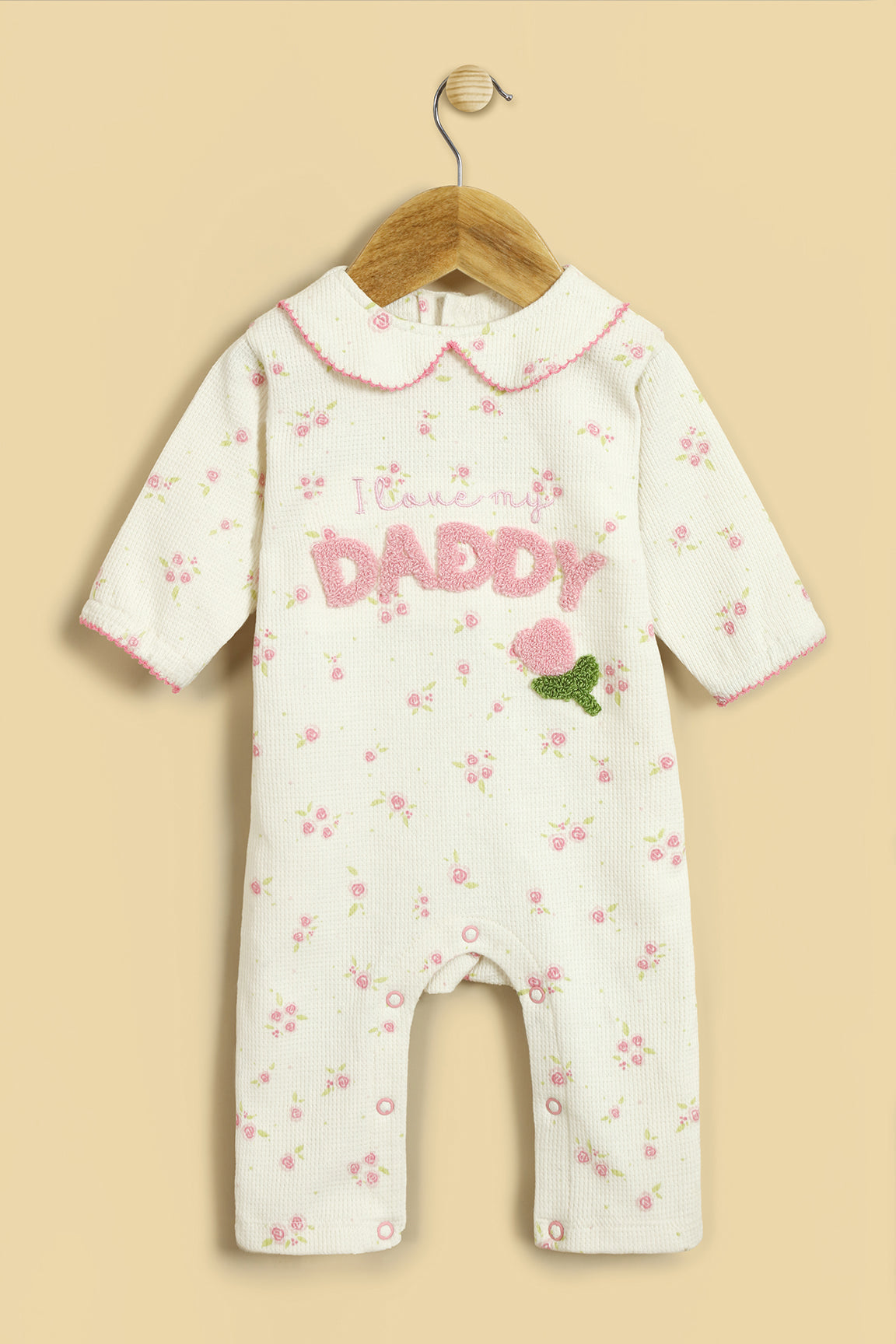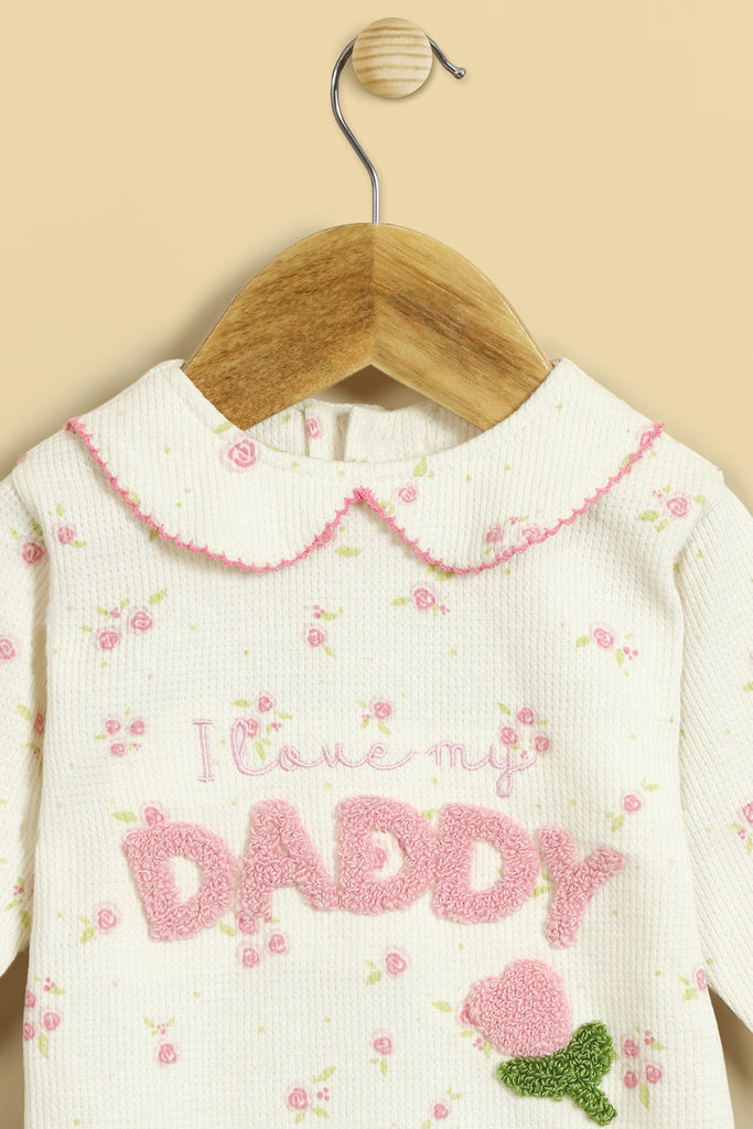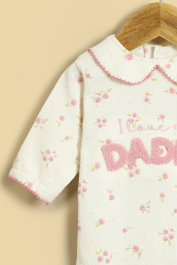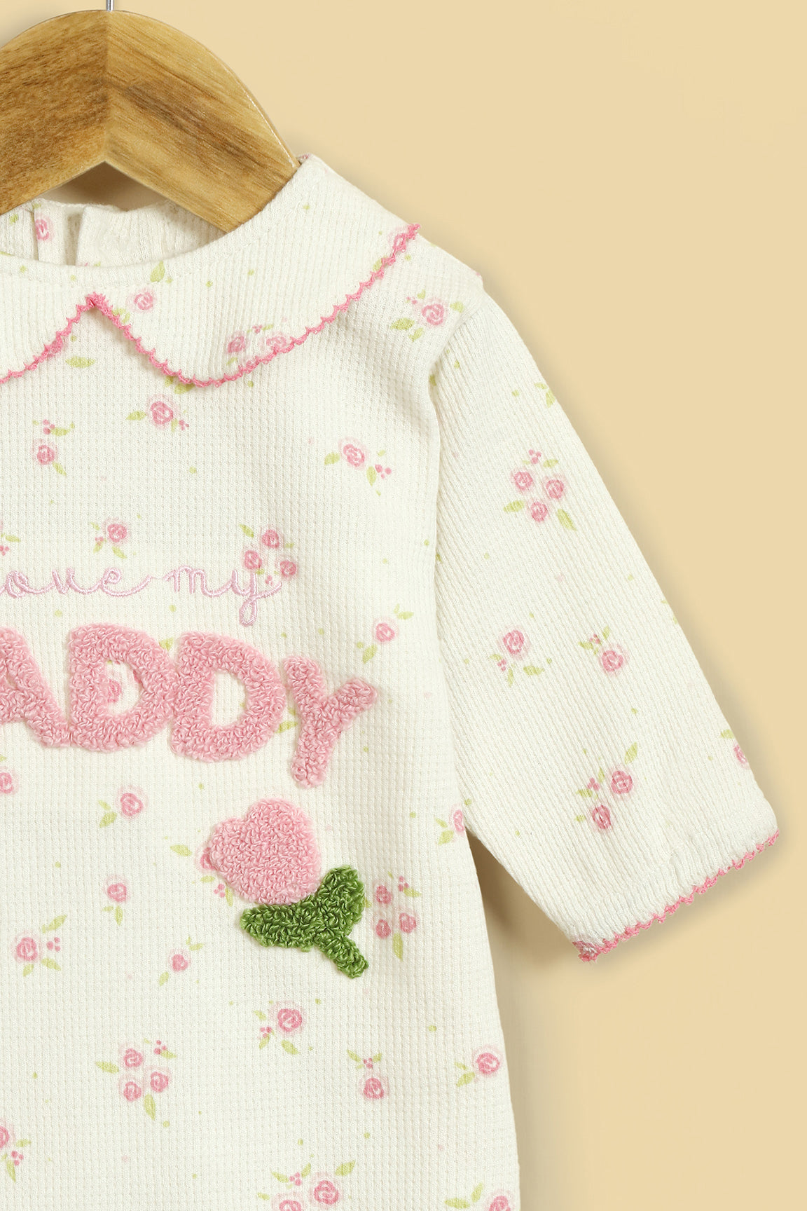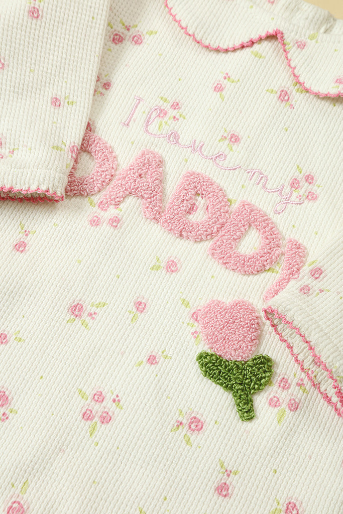Soft as a cuddle, sweet as a rose – this adorable romper with tiny florals and “I love my Daddy” embroidery is perfect for your little love bug. Easy snaps and cozy fabric make it as comfy as it is cute!