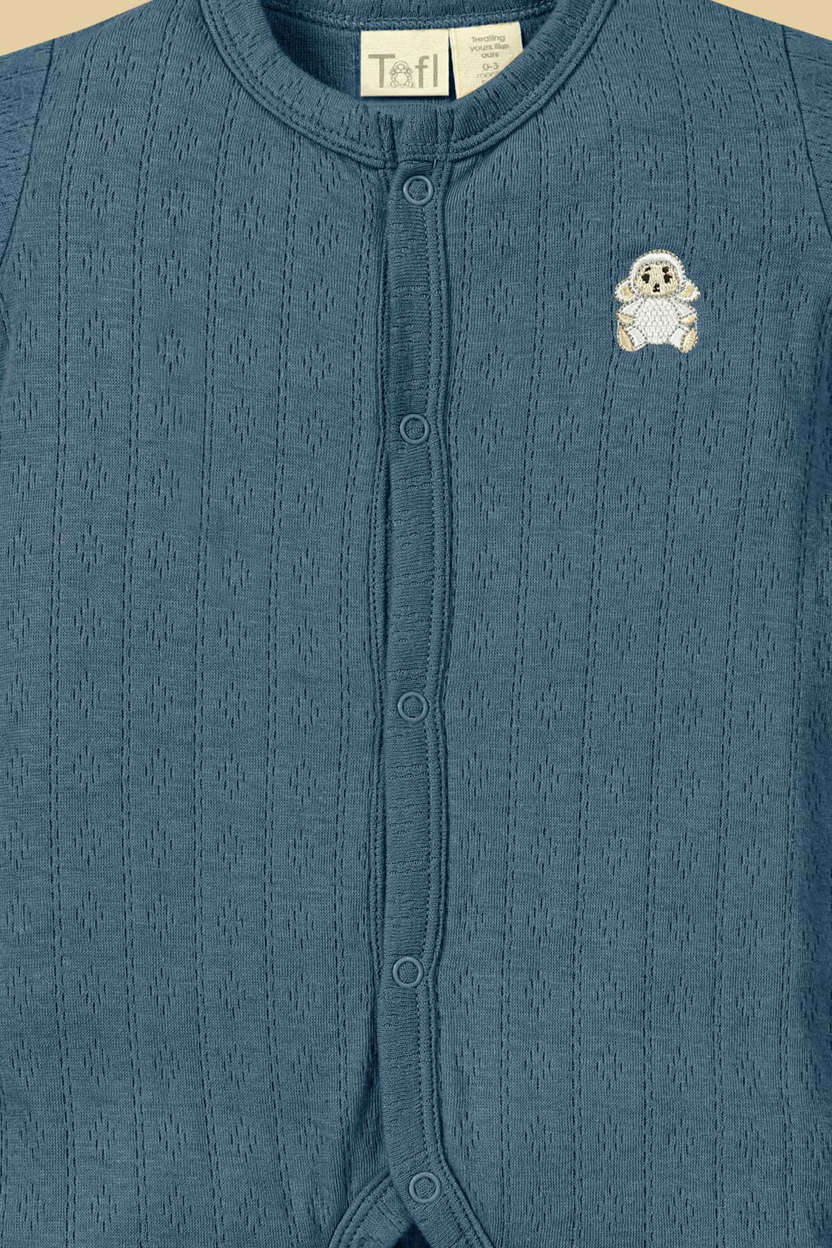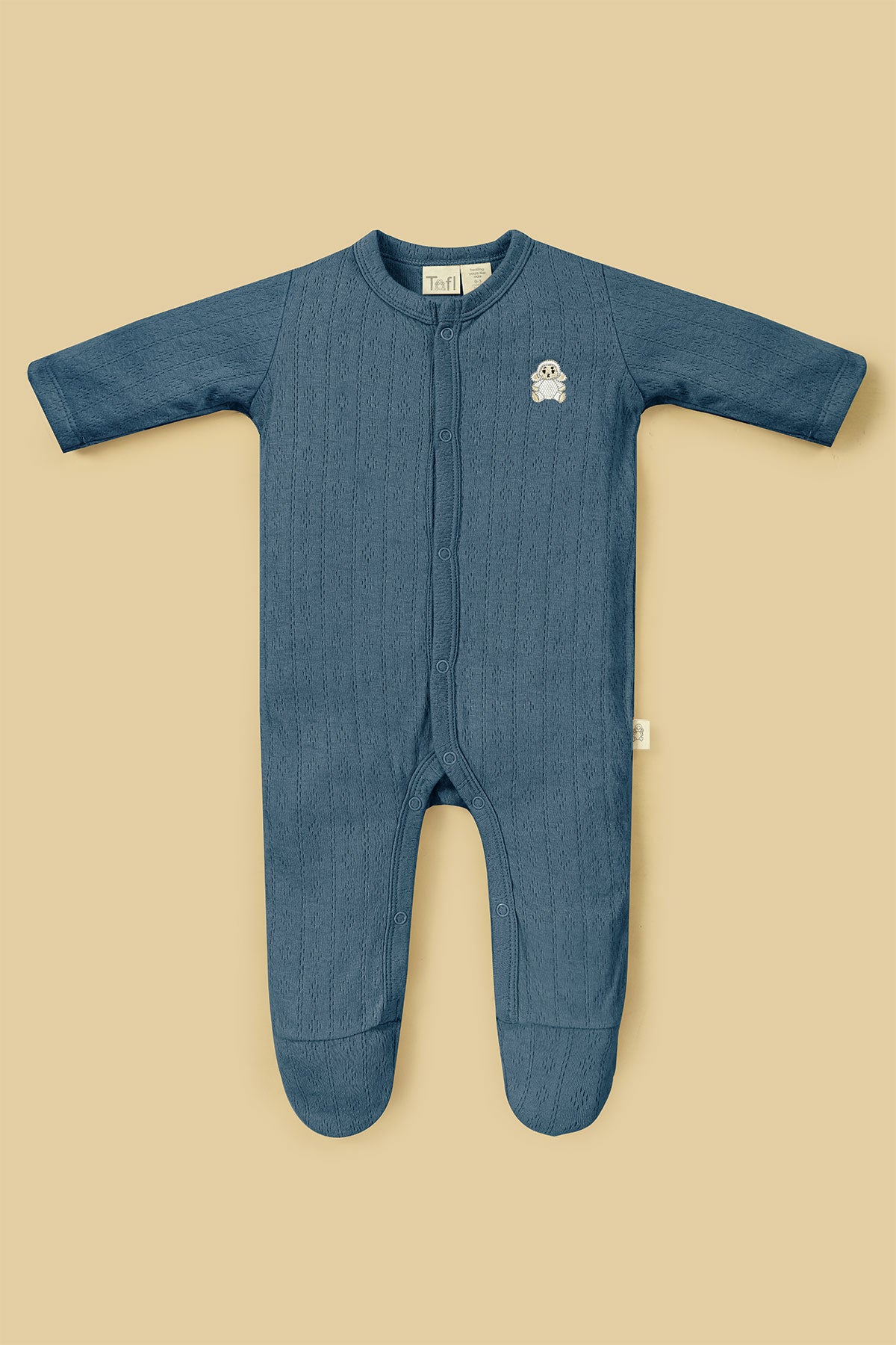 This knitted jacquard baby Rompers is made from soft, cozy fabric to keep your little one comfortable, features Sheep embroidered motif with soft mesh fusing on the back to protect baby’s skin form rashes.