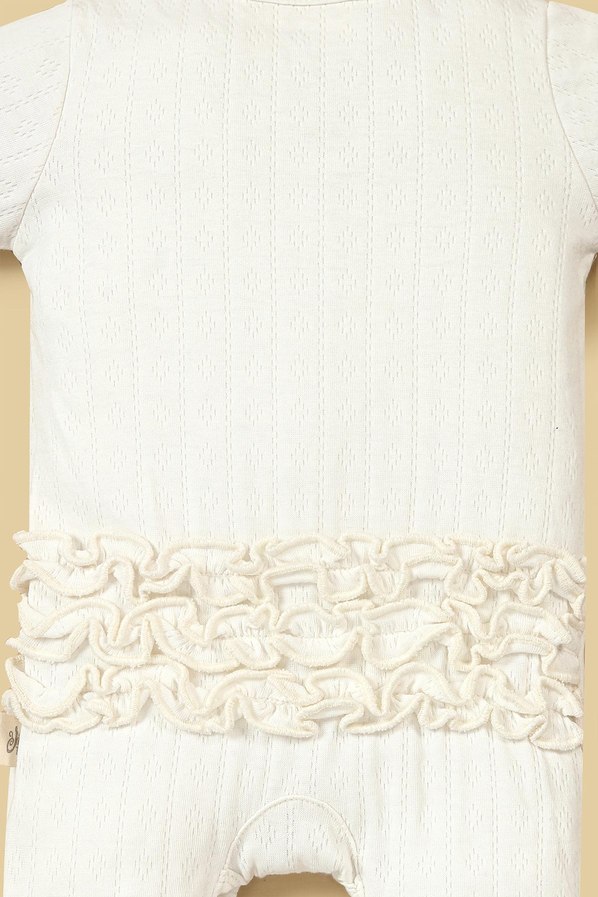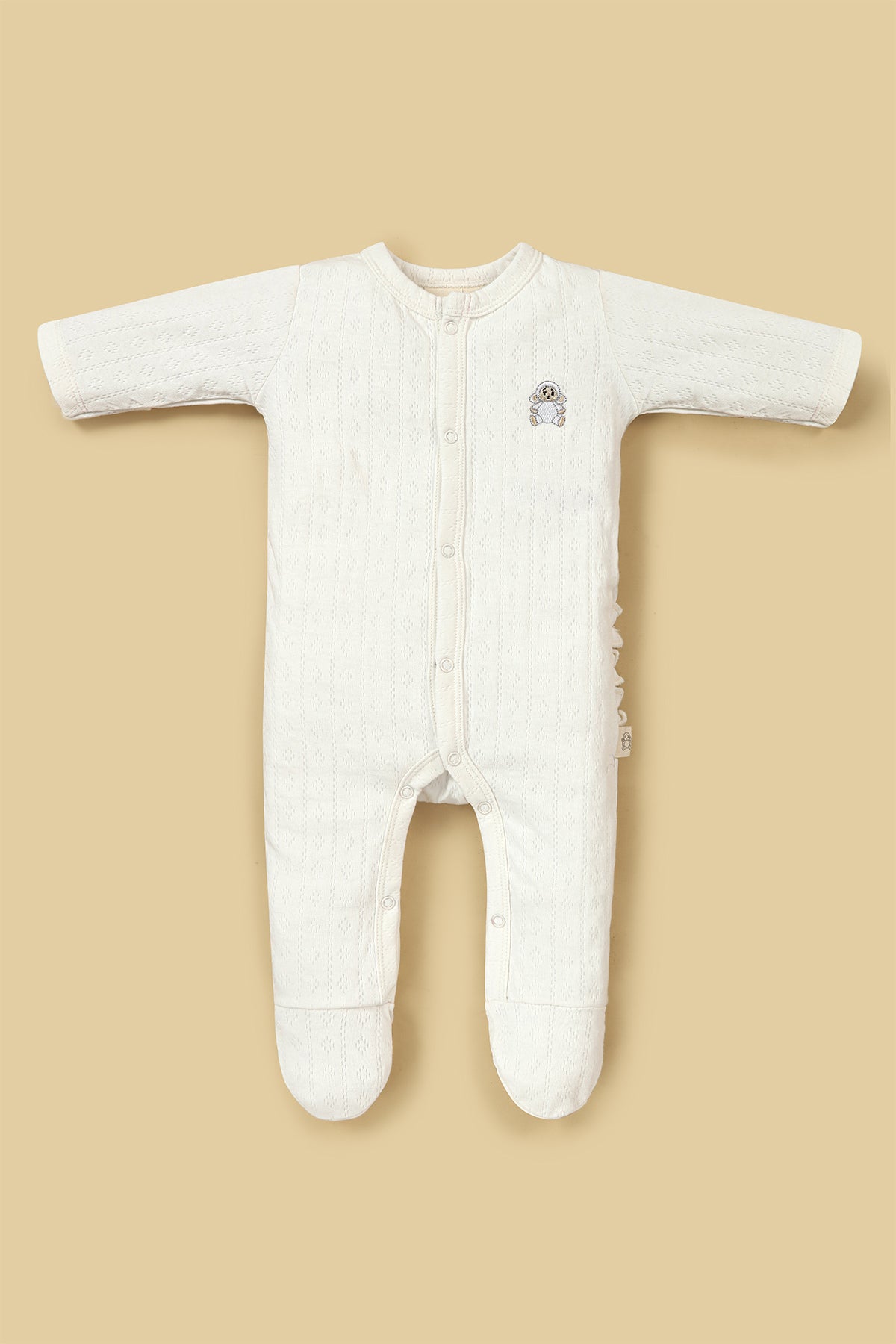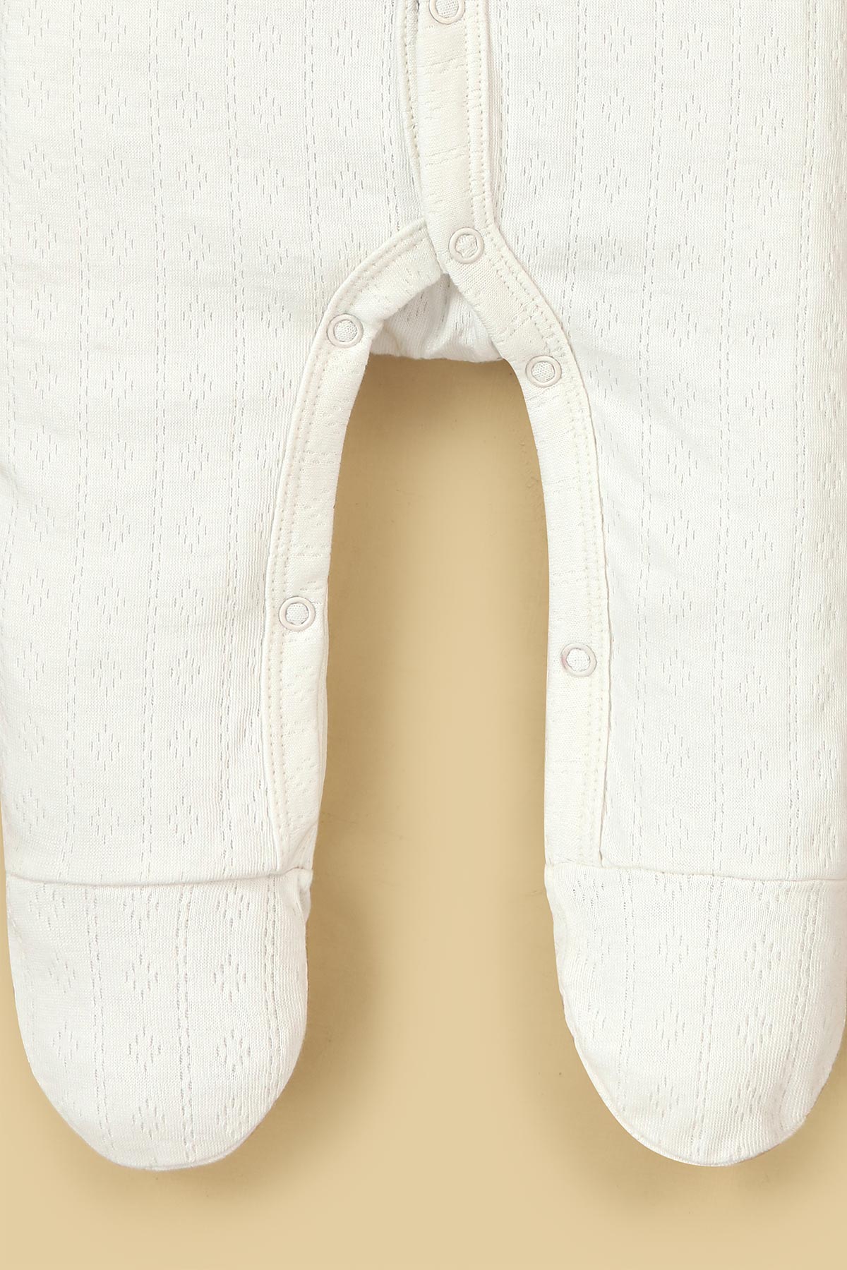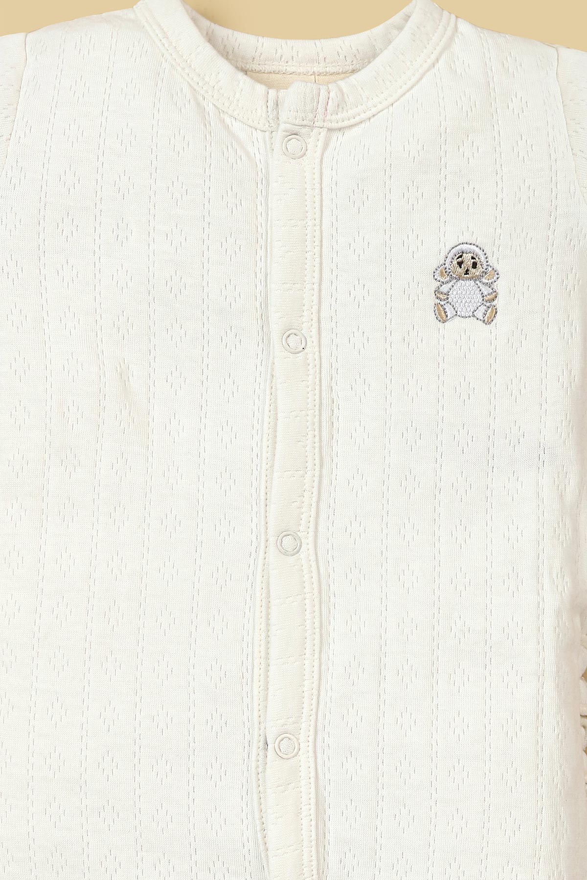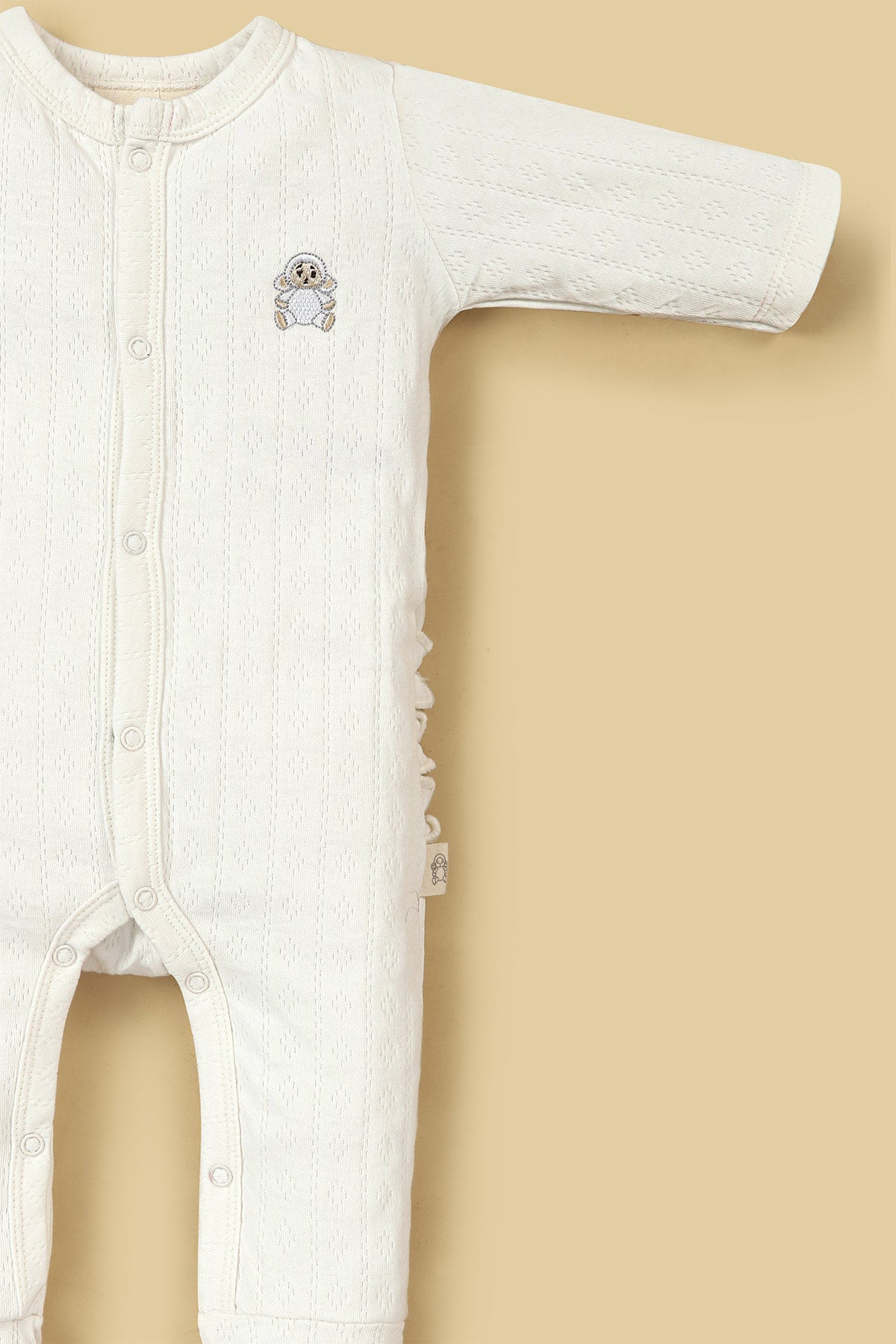 This knitted jacquard baby Rompers is made from soft, cozy fabric to keep your little one comfortable, features Sheep embroidered motif with soft mesh fusing on the back to protect baby’s skin form rashes.