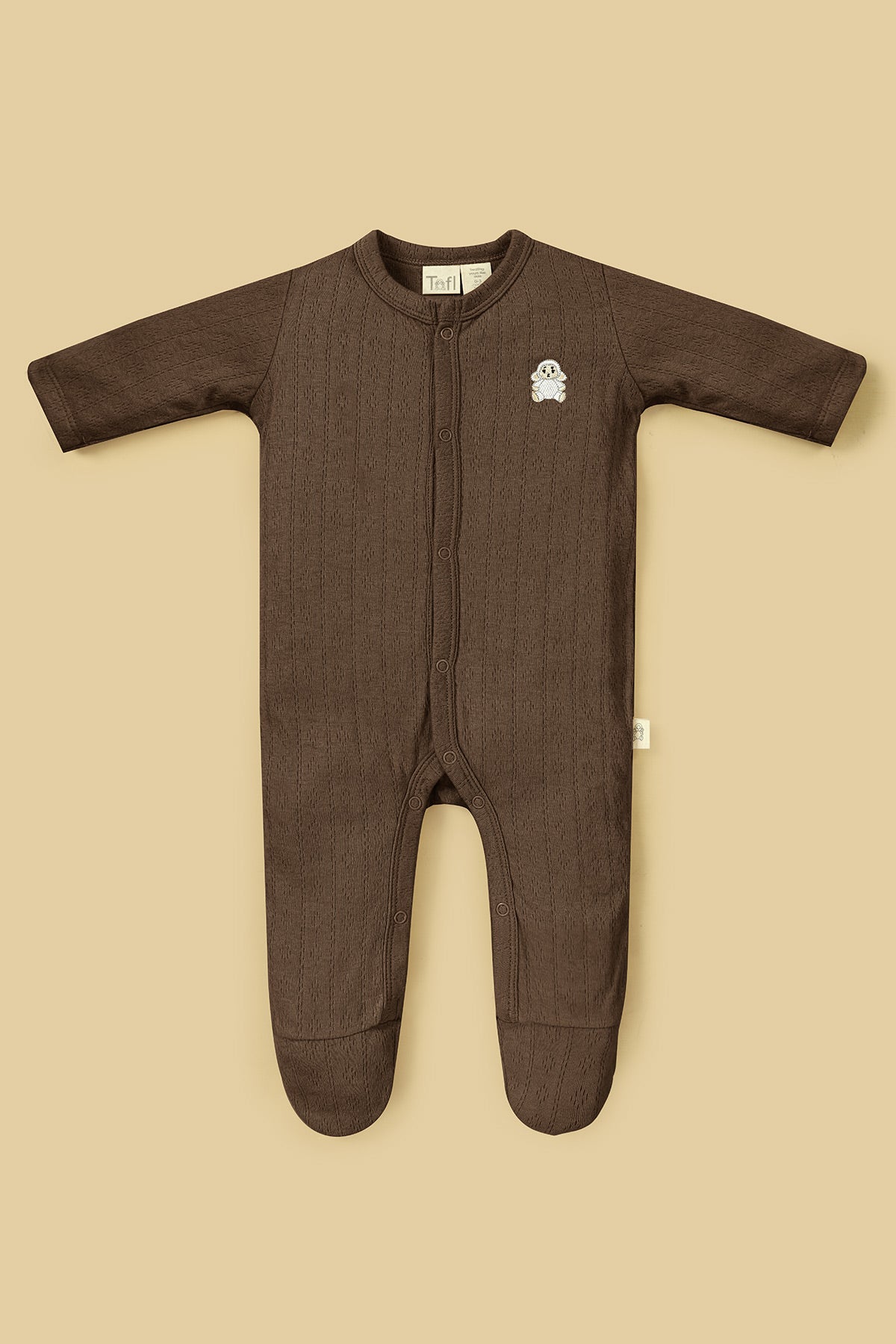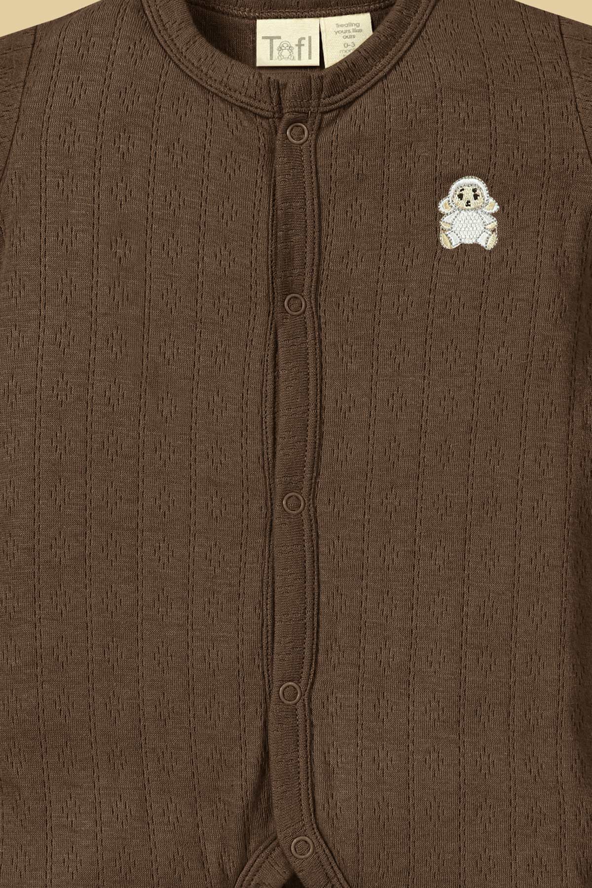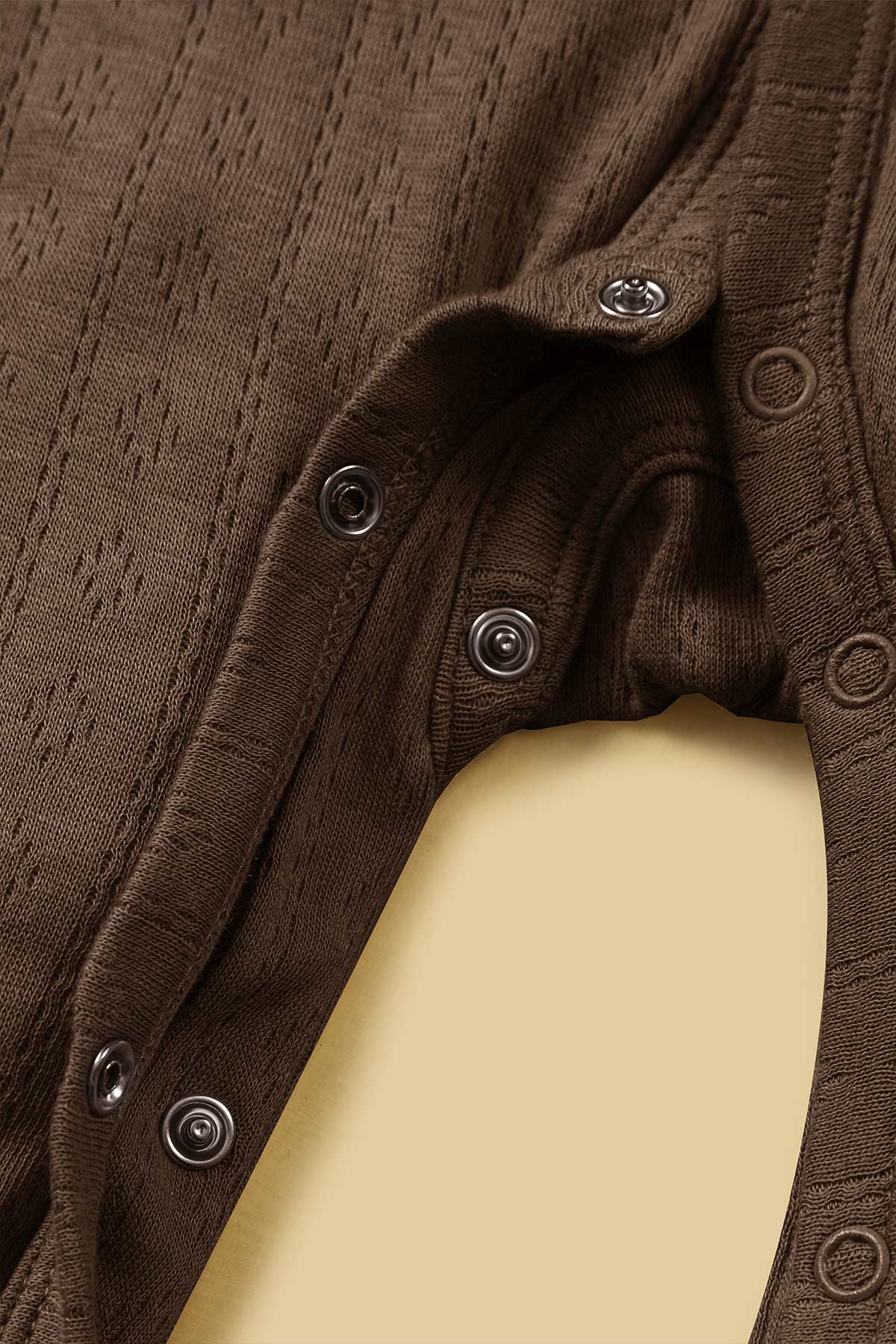 This knitted jacquard baby Rompers is made from soft, cozy fabric to keep your little one comfortable, features Sheep embroidered motif with soft mesh fusing on the back to protect baby’s skin form rashes.