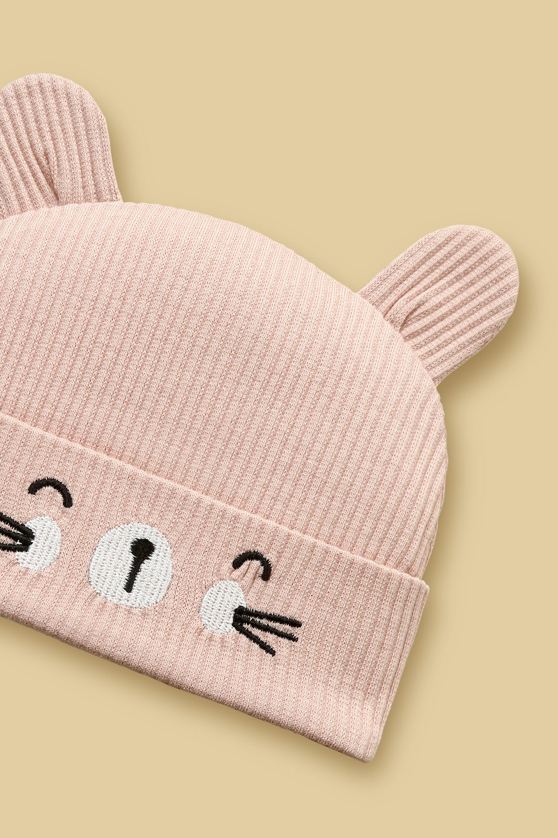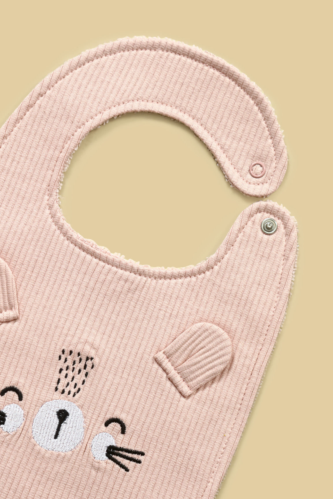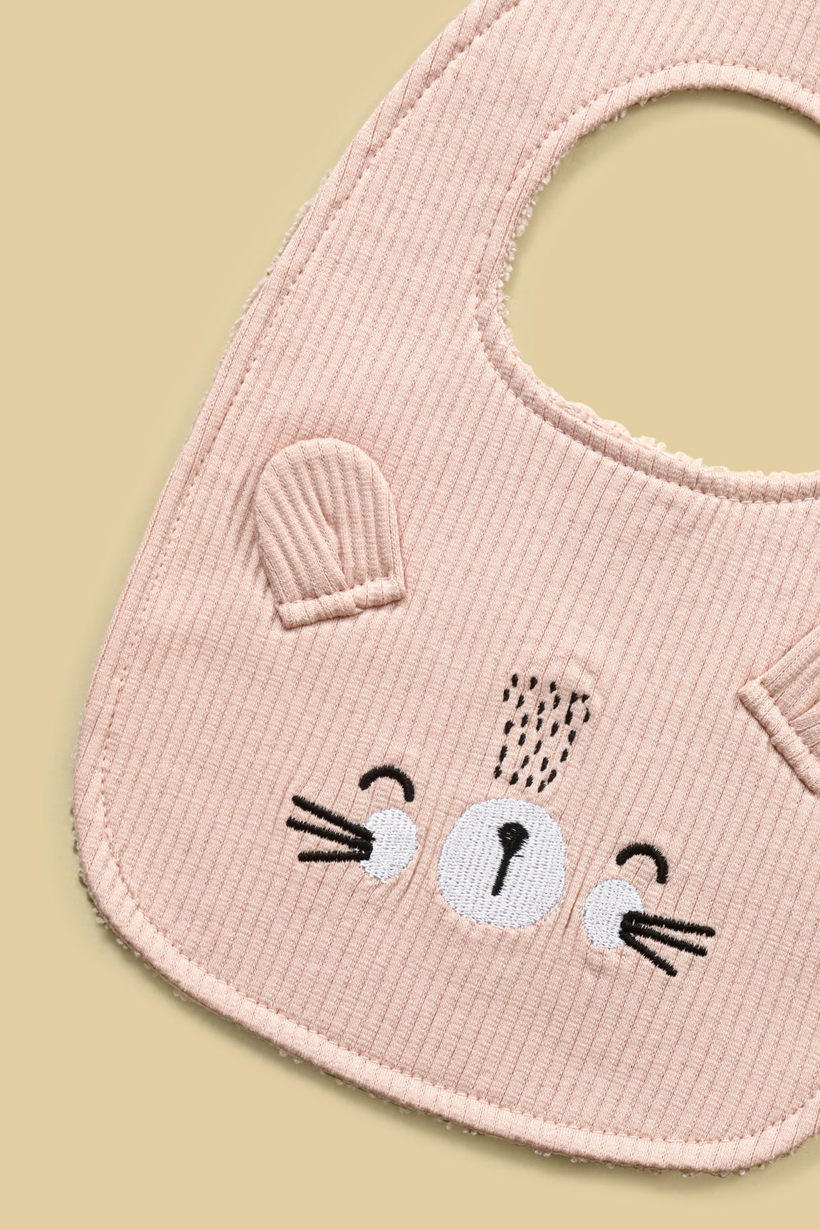 Crafted from a thick, stretchy wide-rib knit fabric, this set includes a matching bear cap, booties and bib, featuring adorable 3D ear details and an embroidered bear face.