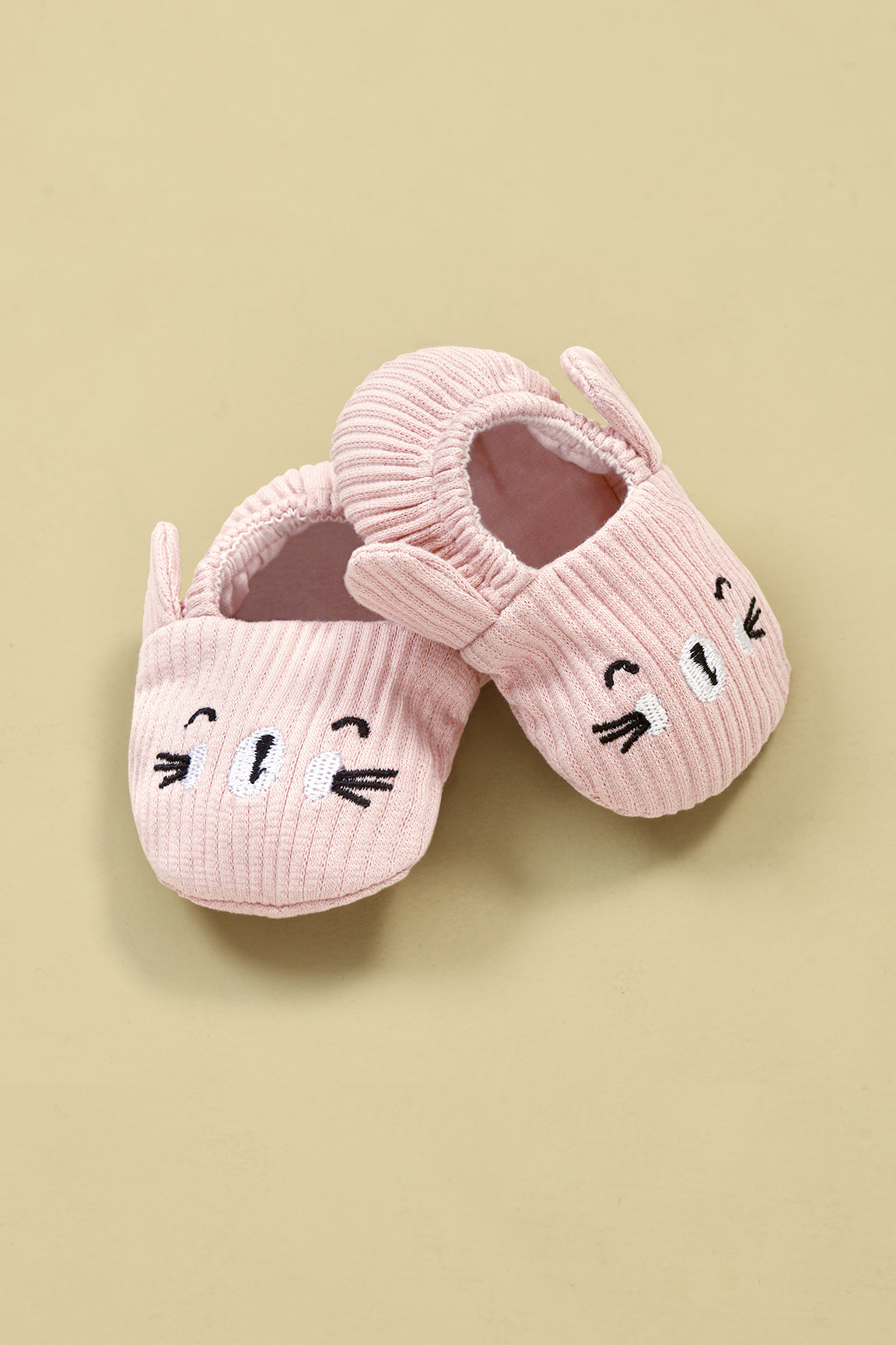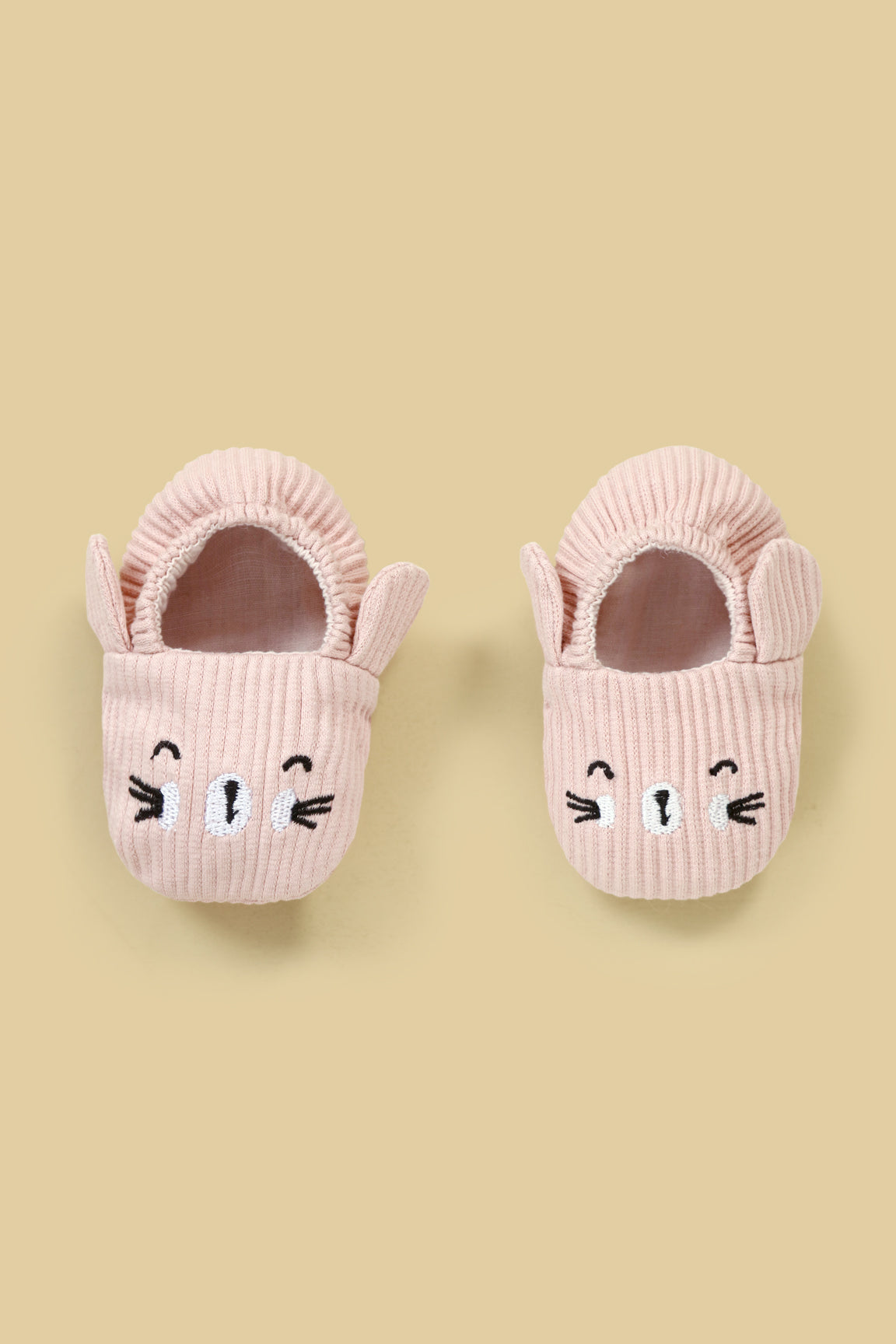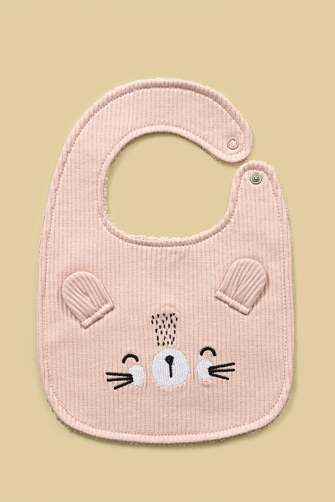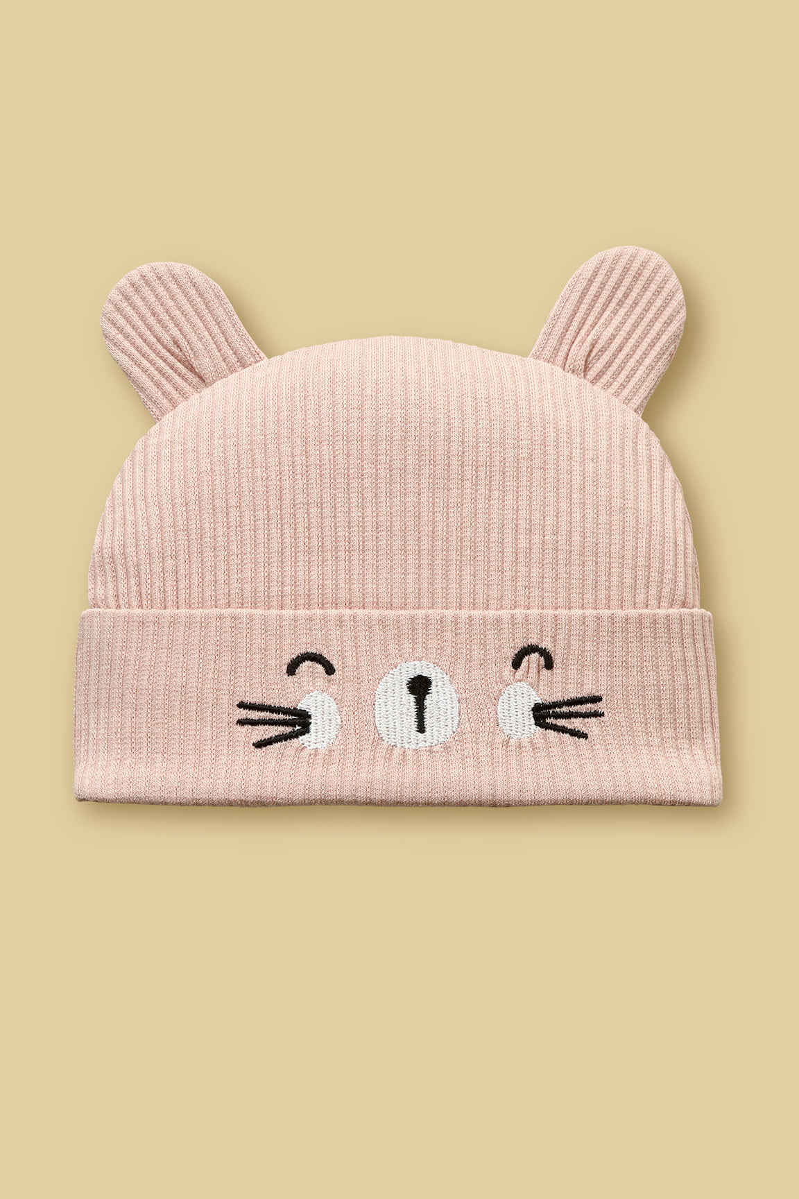 Crafted from a thick, stretchy wide-rib knit fabric, this set includes a matching bear cap, booties and bib, featuring adorable 3D ear details and an embroidered bear face.