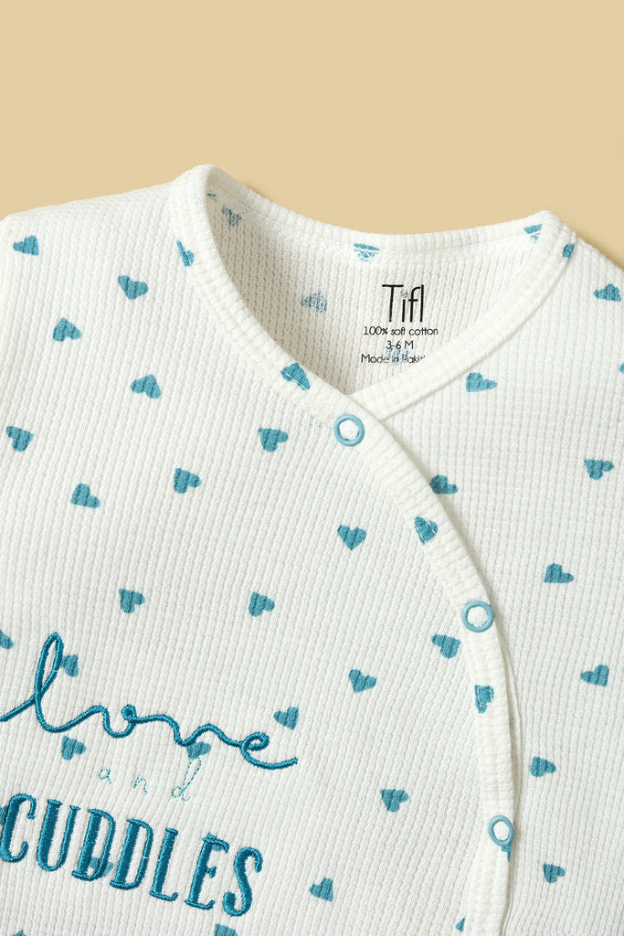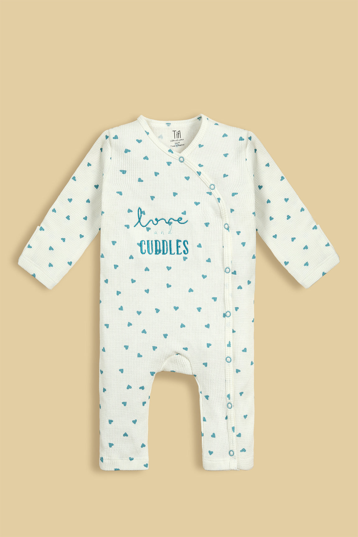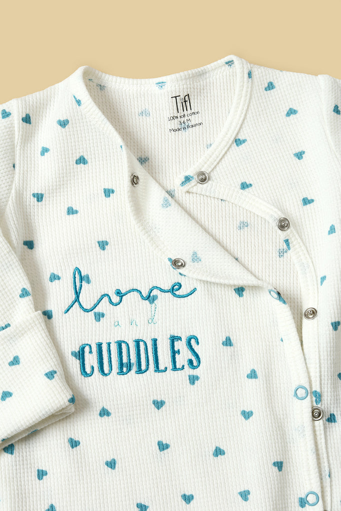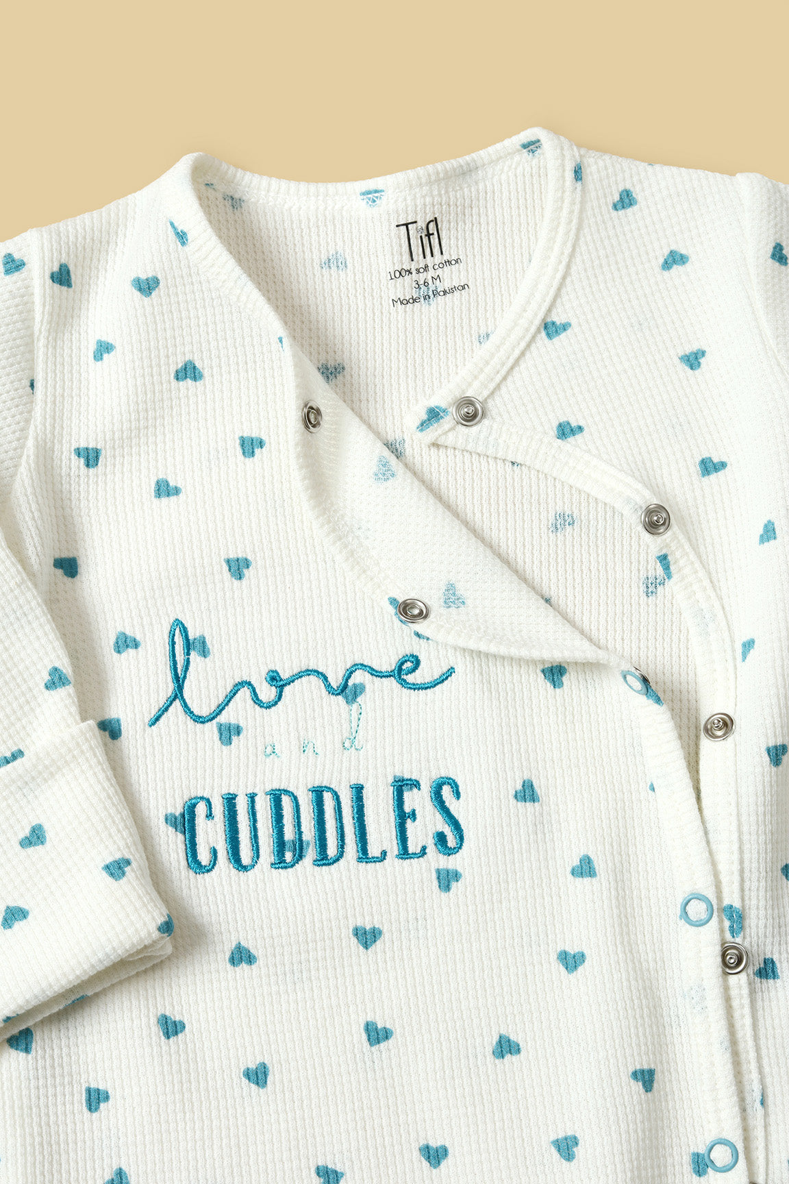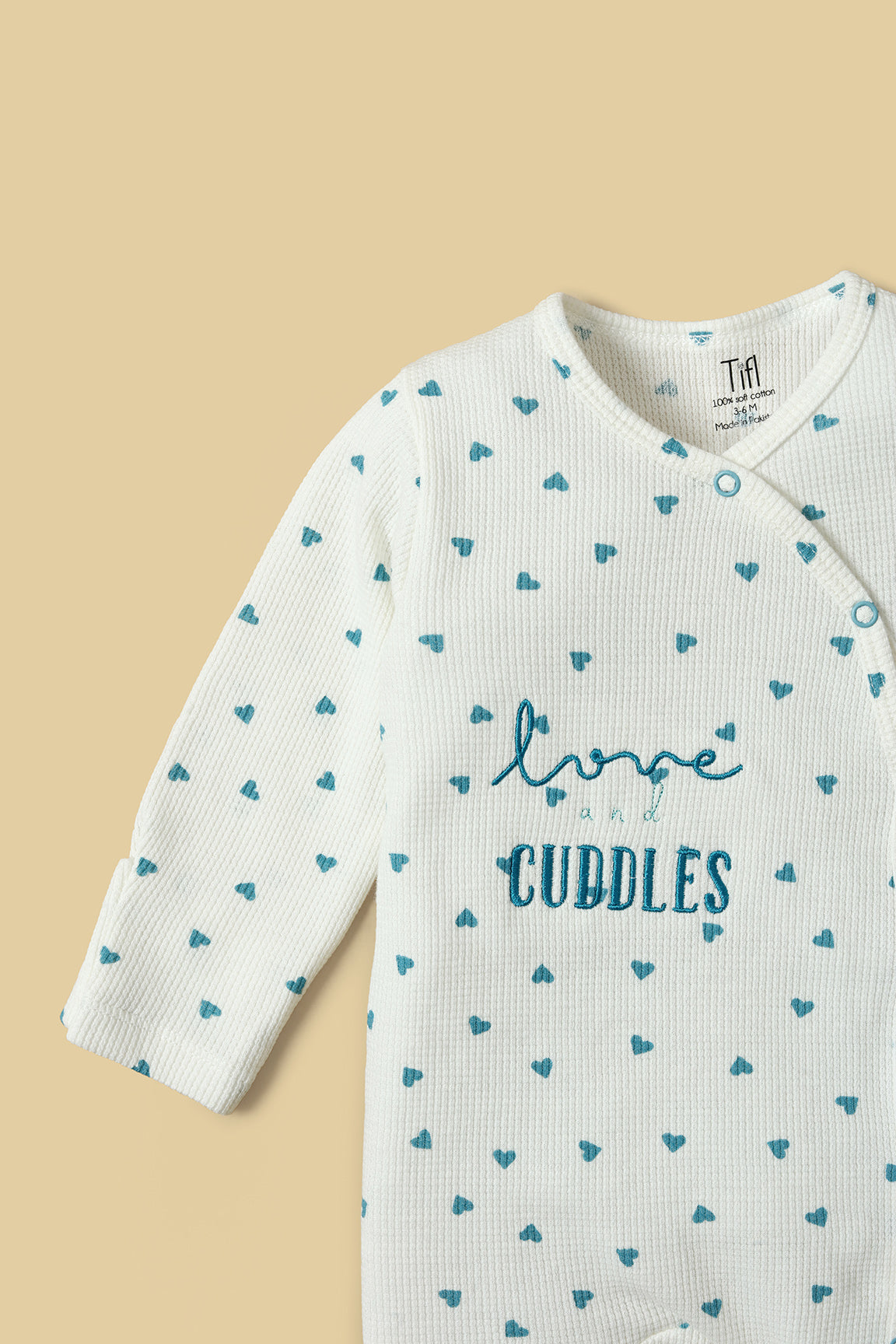 Crafted in our new knitted waffle weave — a beautifully textured design that mimics delicate mini boxes for a unique and charming look. Made from soft, breathable fabric, these rompers keep your little one comfortable all day long, allowing their skin to breathe while providing a gentle touch against the body. The intricate detailing adds a refined elegance, making each piece as special as the moments you’ll share in them.