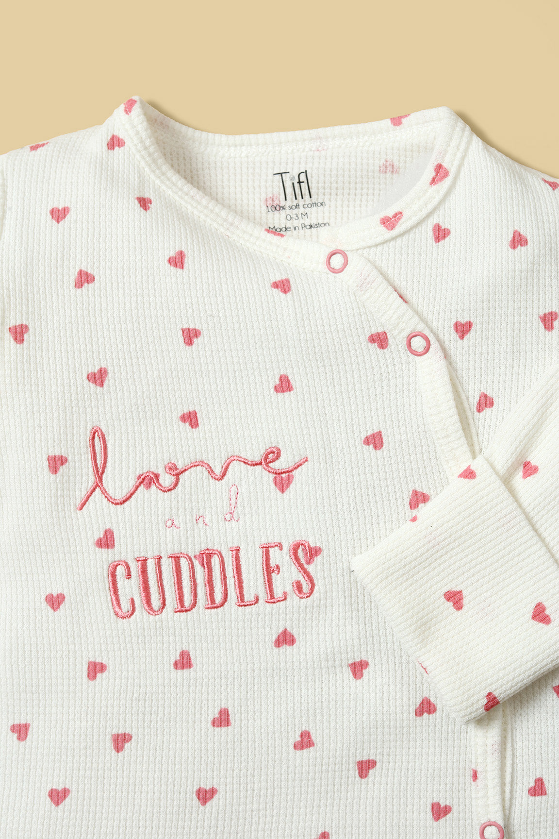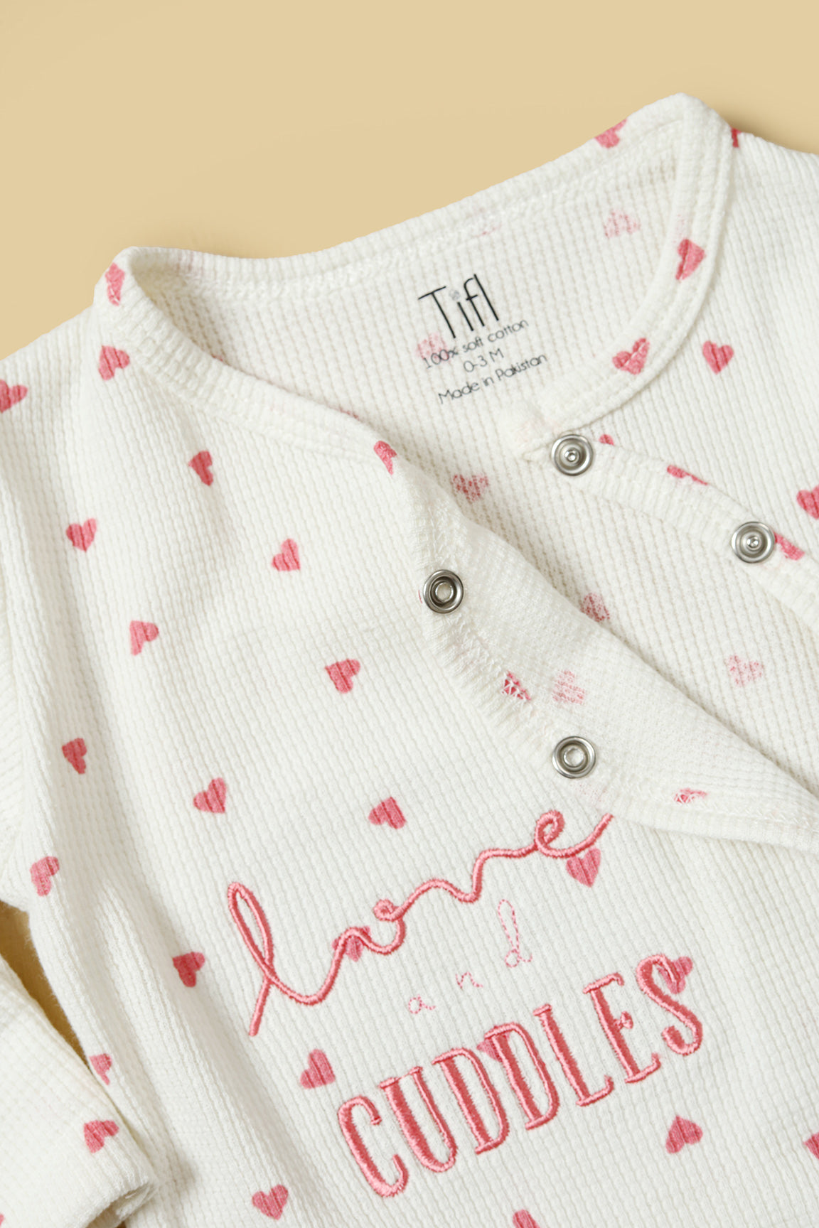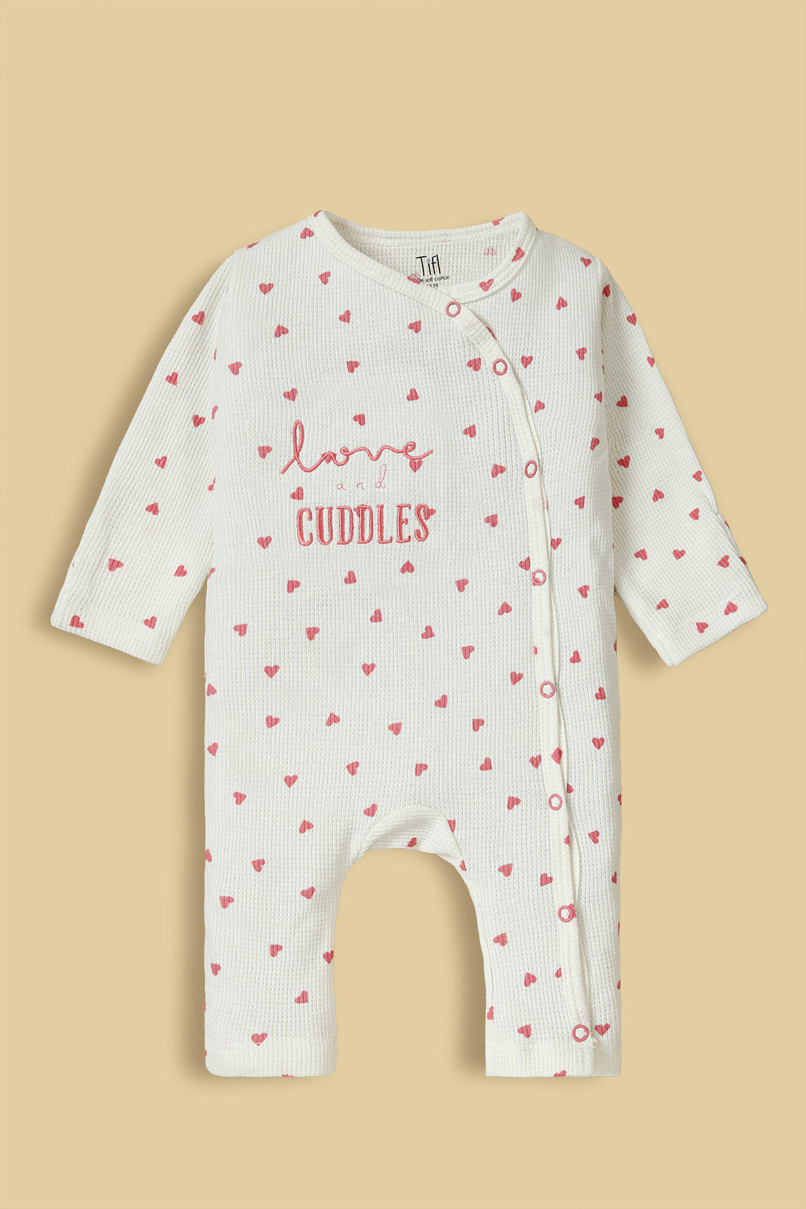 Crafted in our new knitted waffle weave — a beautifully textured design that mimics delicate mini boxes for a unique and charming look. Made from soft, breathable fabric, these rompers keep your little one comfortable all day long, allowing their skin to breathe while providing a gentle touch against the body. The intricate detailing adds a refined elegance, making each piece as special as the moments you’ll share in them.