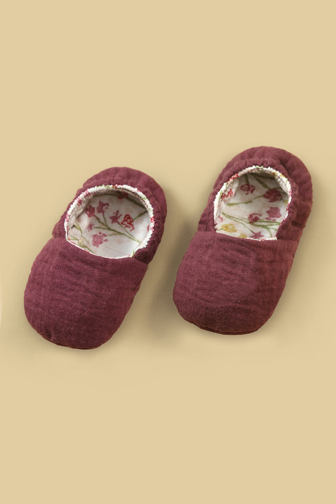 This charming baby accessory set is made from ultra-soft, breathable muslin fabric in a rich plum colour, perfect for newborn comfort. The set includes a ruffled muslin bib, soft-sole crib shoes, and a matching muslin bow headband, all thoughtfully coordinated for a sweet and stylish look. Ideal for newborn photo-shoots, daily wear, gifting, and special occasions, this set blends softness, elegance, and adorable floral charm.