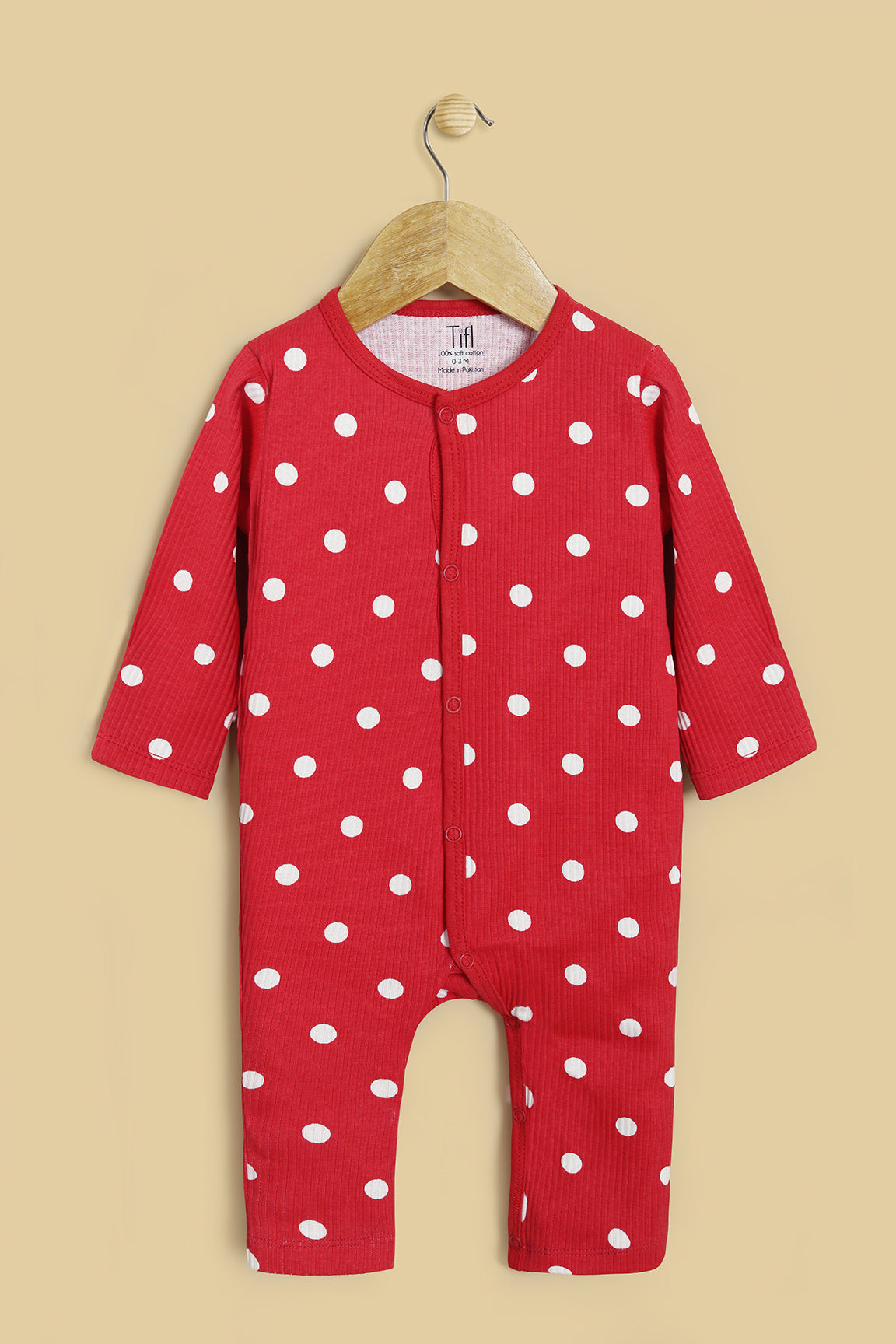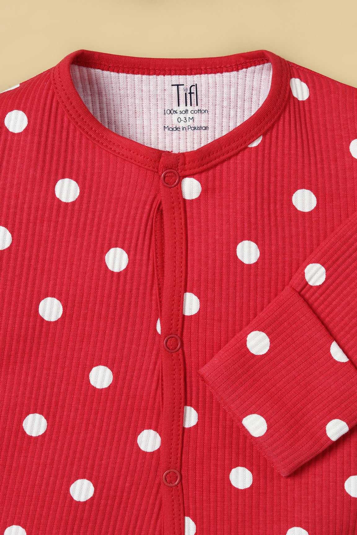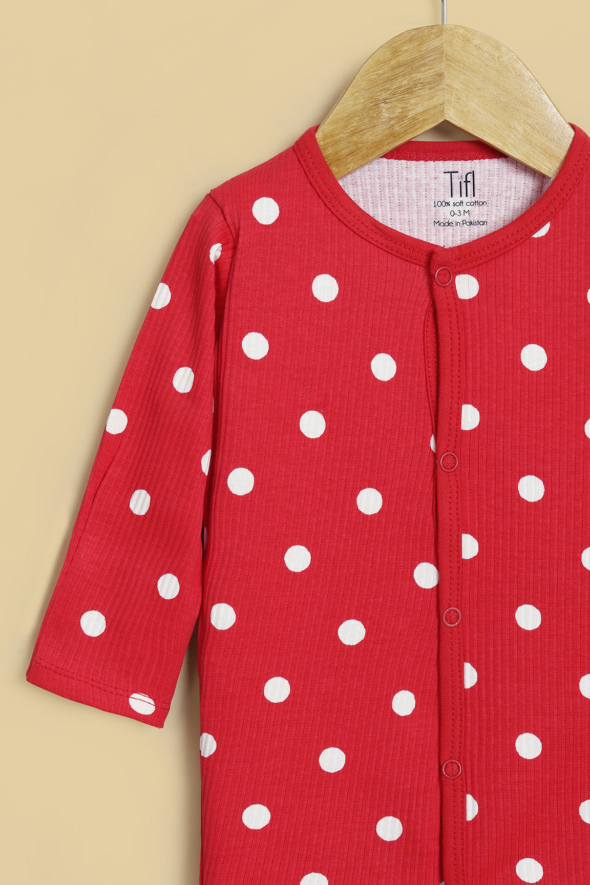 Made from premium 4x1 rib soft cotton, featuring snap closure or zip closure and polka printed for effortless dressing. The fabric is stretchy, breathable, and gentle on delicate skin, ensuring all-day and night comfort.