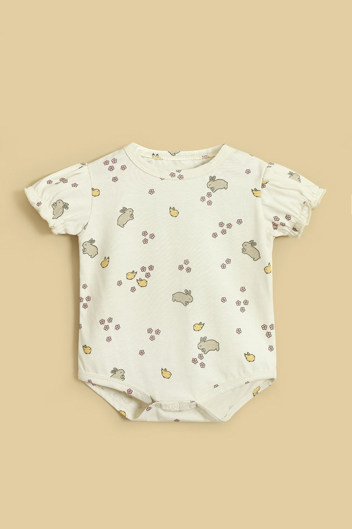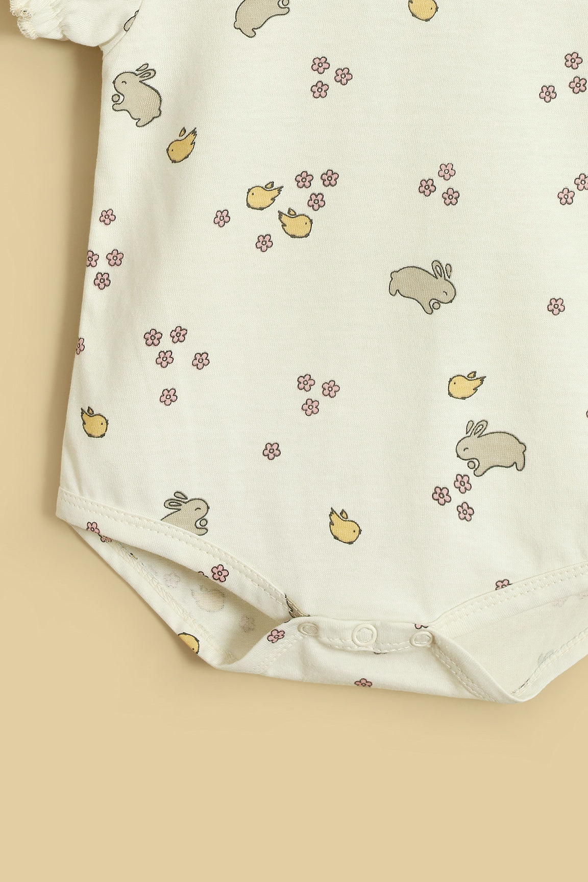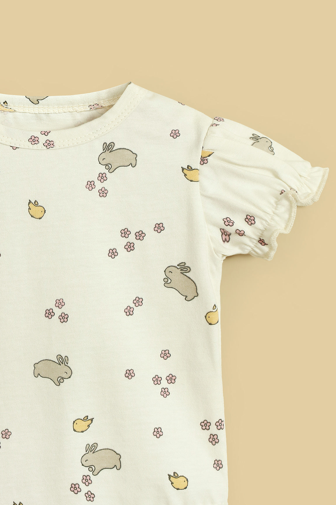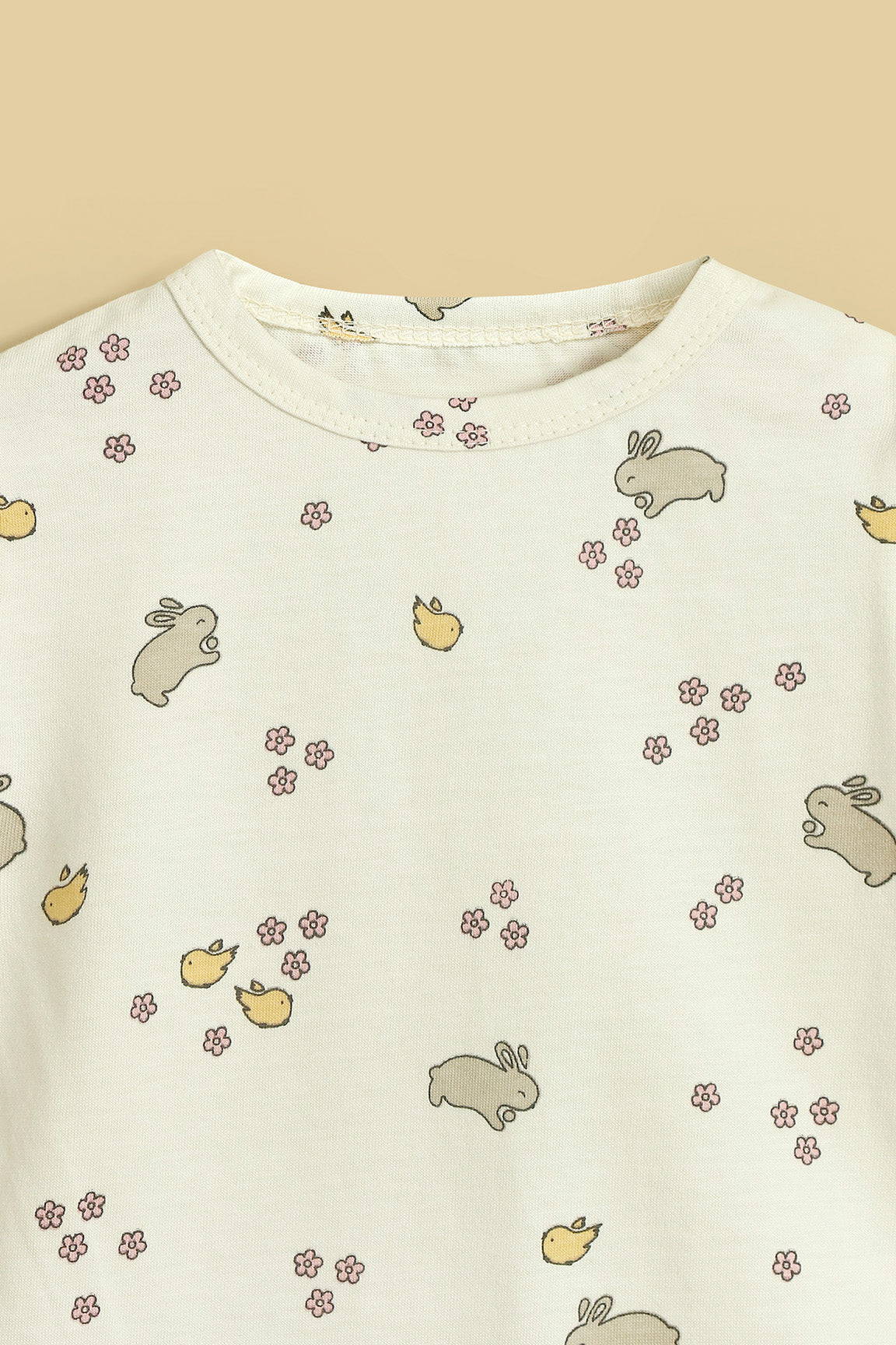 A 2-Piece Rabbit Set featuring an all-over rabbit printed bodysuit paired with a coordinating dungaree. It is crafted from breathable, high-quality cotton that is gentle on baby's skin.