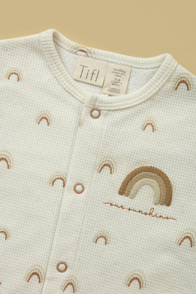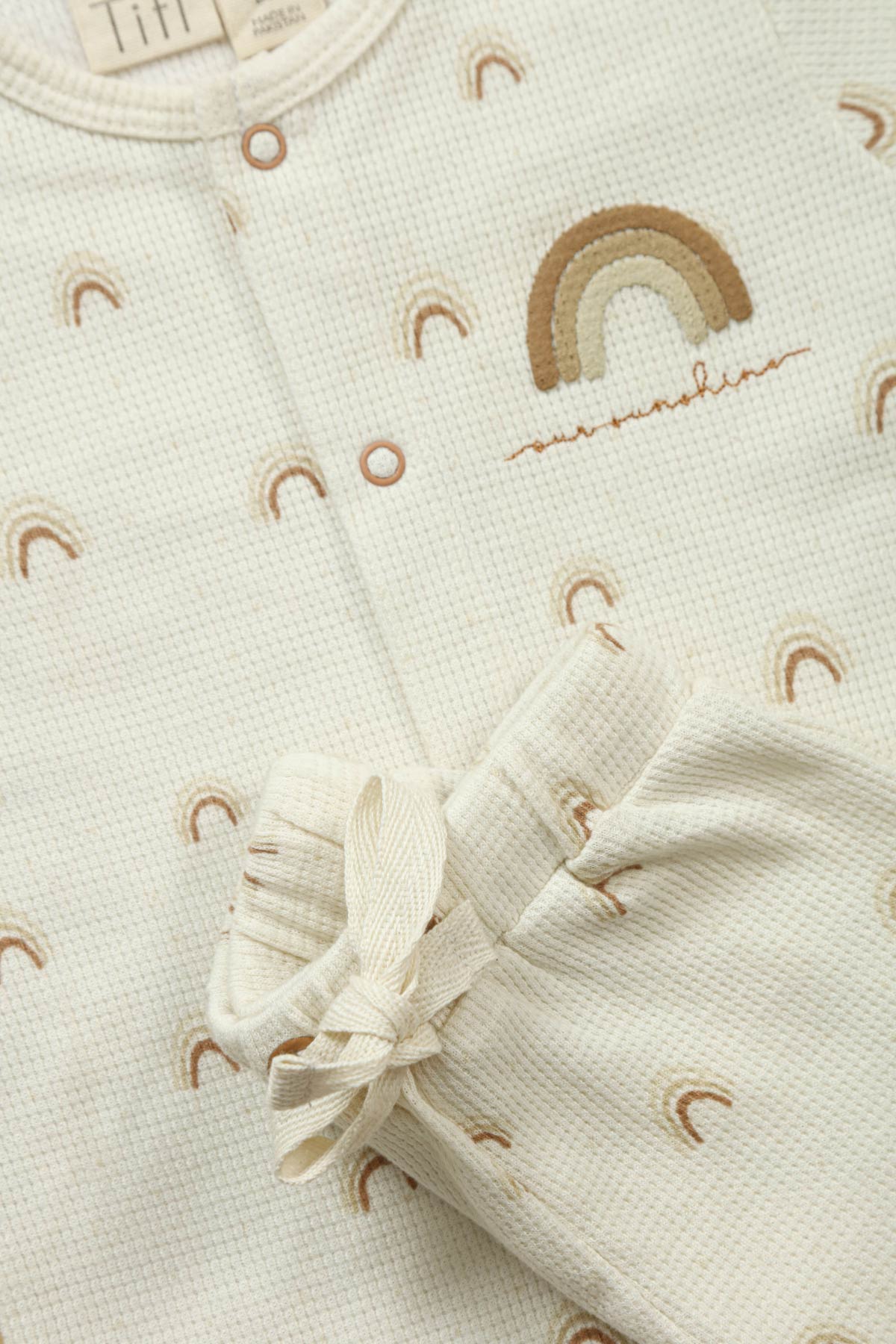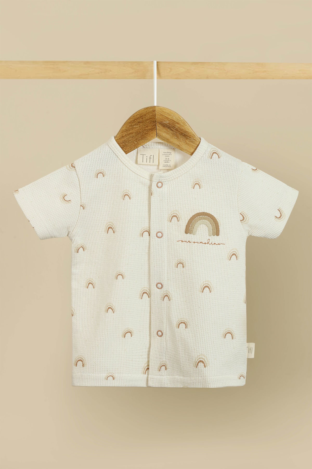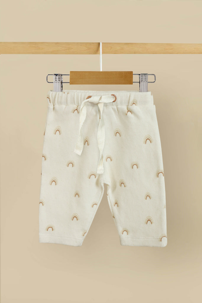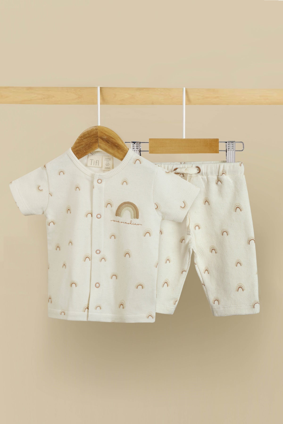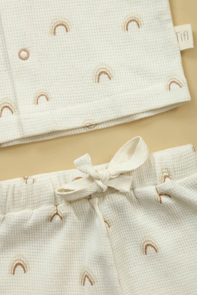 Bring joy to your baby's day with our rainbow waffle shirt & trouser. Bursting with cheerful rainbow prints and made from Waffle weave Fabric, this adorable 2pc is perfect for cozy naps and colorful adventures.