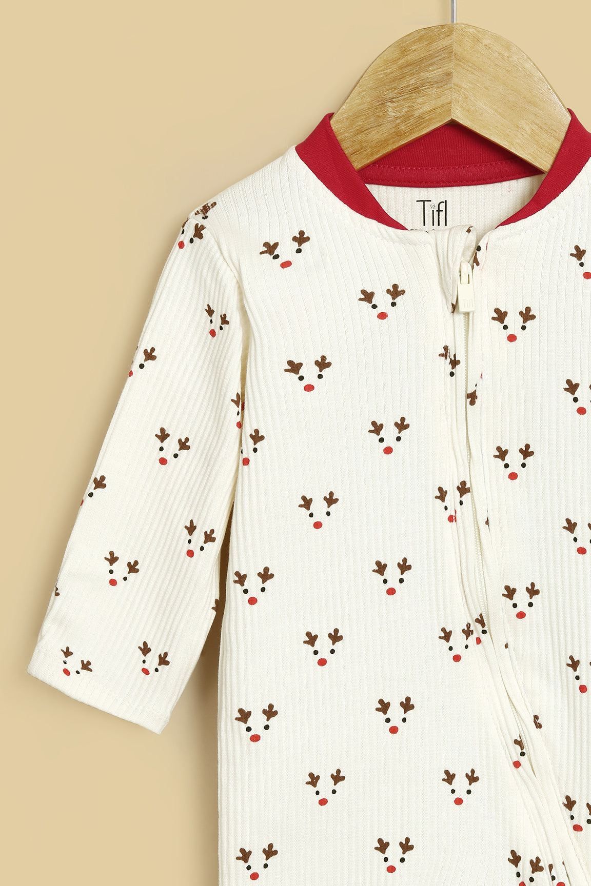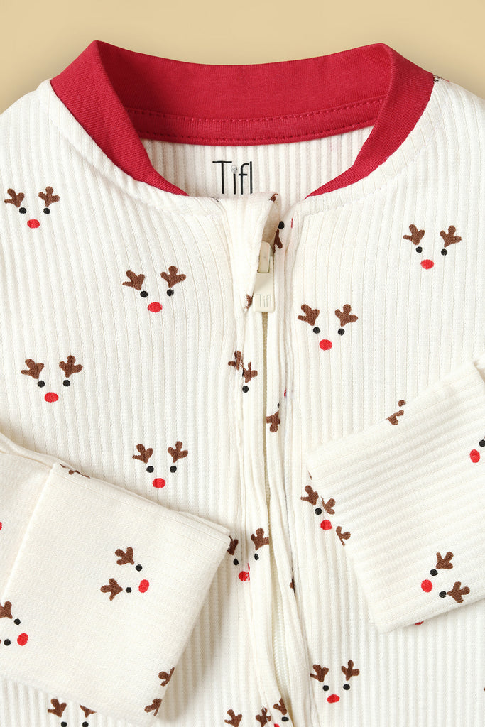 Made from premium 4x1 rib soft cotton, featuring snap closure or zip closure overall rein deer printed for effortless dressing. The fabric is stretchy, breathable, and gentle on delicate skin, ensuring all-day and night comfort.