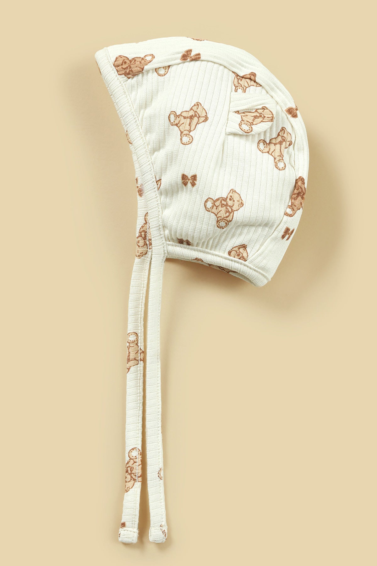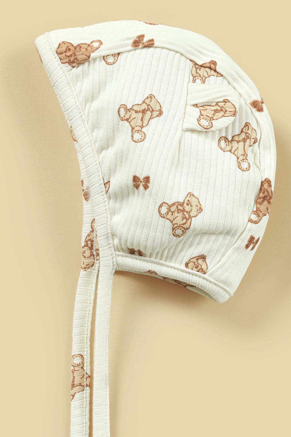 Made from soft, breathable fabric, this bonnet features a charming all-over bear print that adds a delicate, bear touch to your baby’s outfit. The bonnet includes gentle tie strings for a secure and comfortable fit, ensuring it stays in place during naps, outings, and photo sessions.