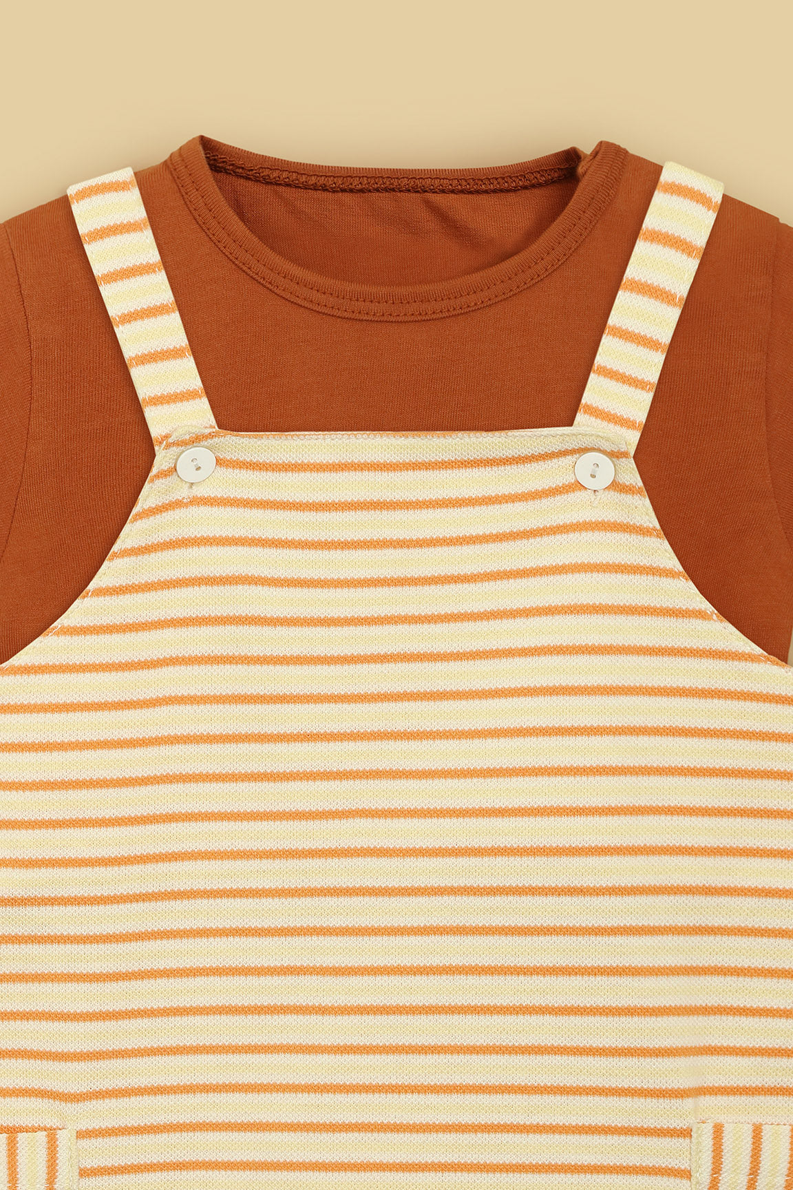 Striped Dungaree with Bodysuit-Yarn Dyed