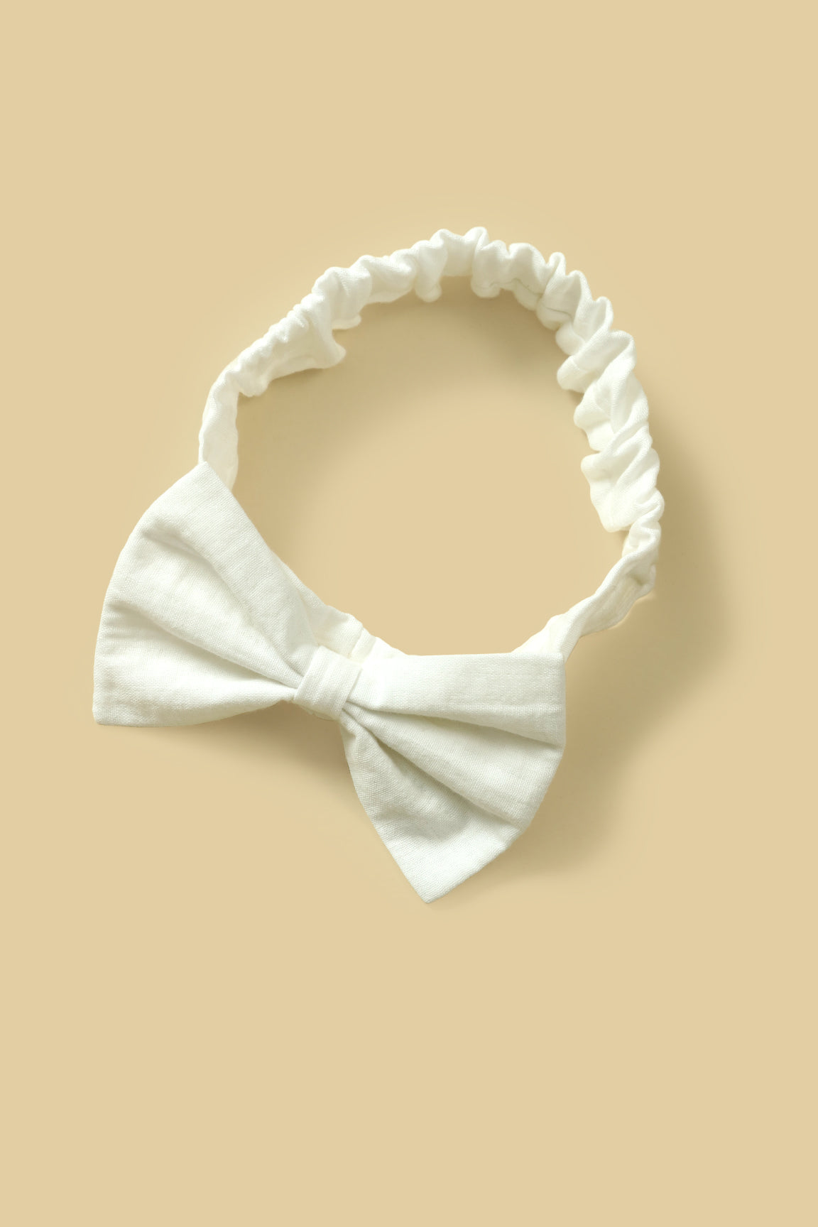 This charming baby accessory set is crafted from premium soft muslin fabric in a white shade. The set includes a ruffled muslin bib, a pair of matching soft-sole shoes, and a cute bow headband, all perfectly coordinated for a stylish newborn look. Perfect for daily wear, gifting, special events, or newborn photo-shoots, this set brings together comfort, softness, and adorable style.