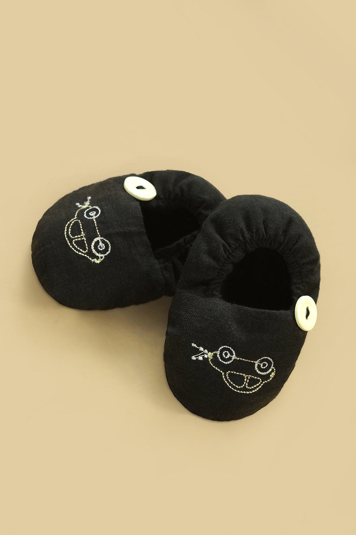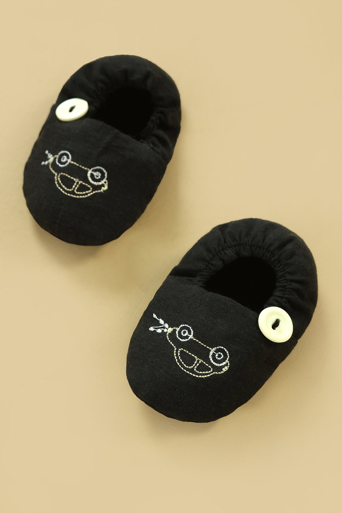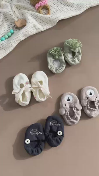 Made from plush, baby-gentle fabric with a snug elastic fit, these stay comfortably in place while keeping little toes cozy and feature a cute car embroidery.