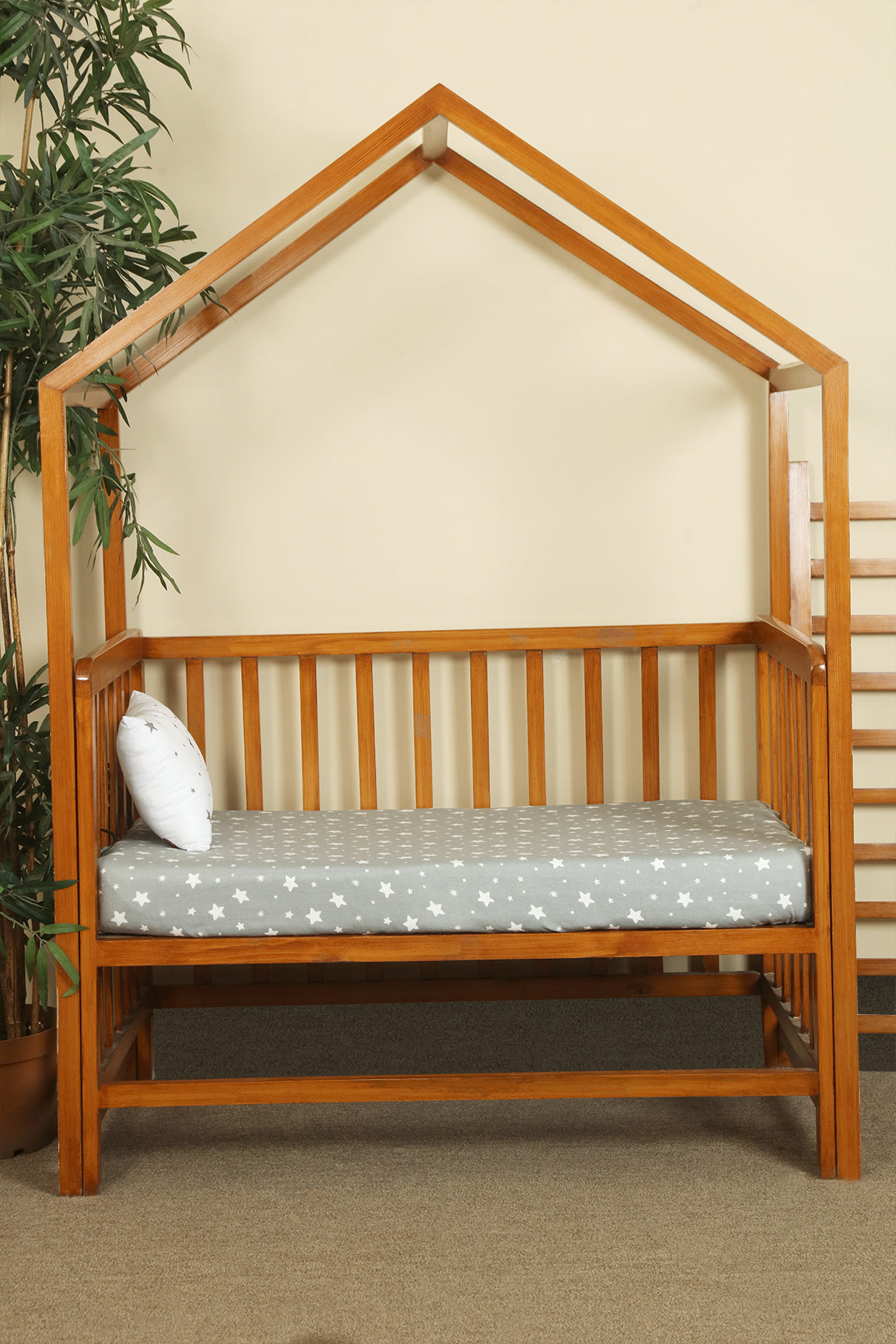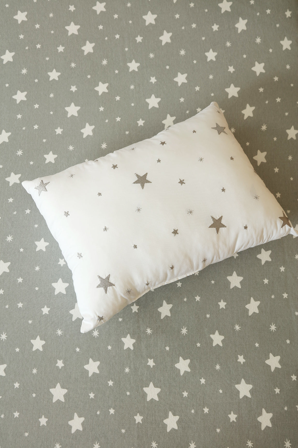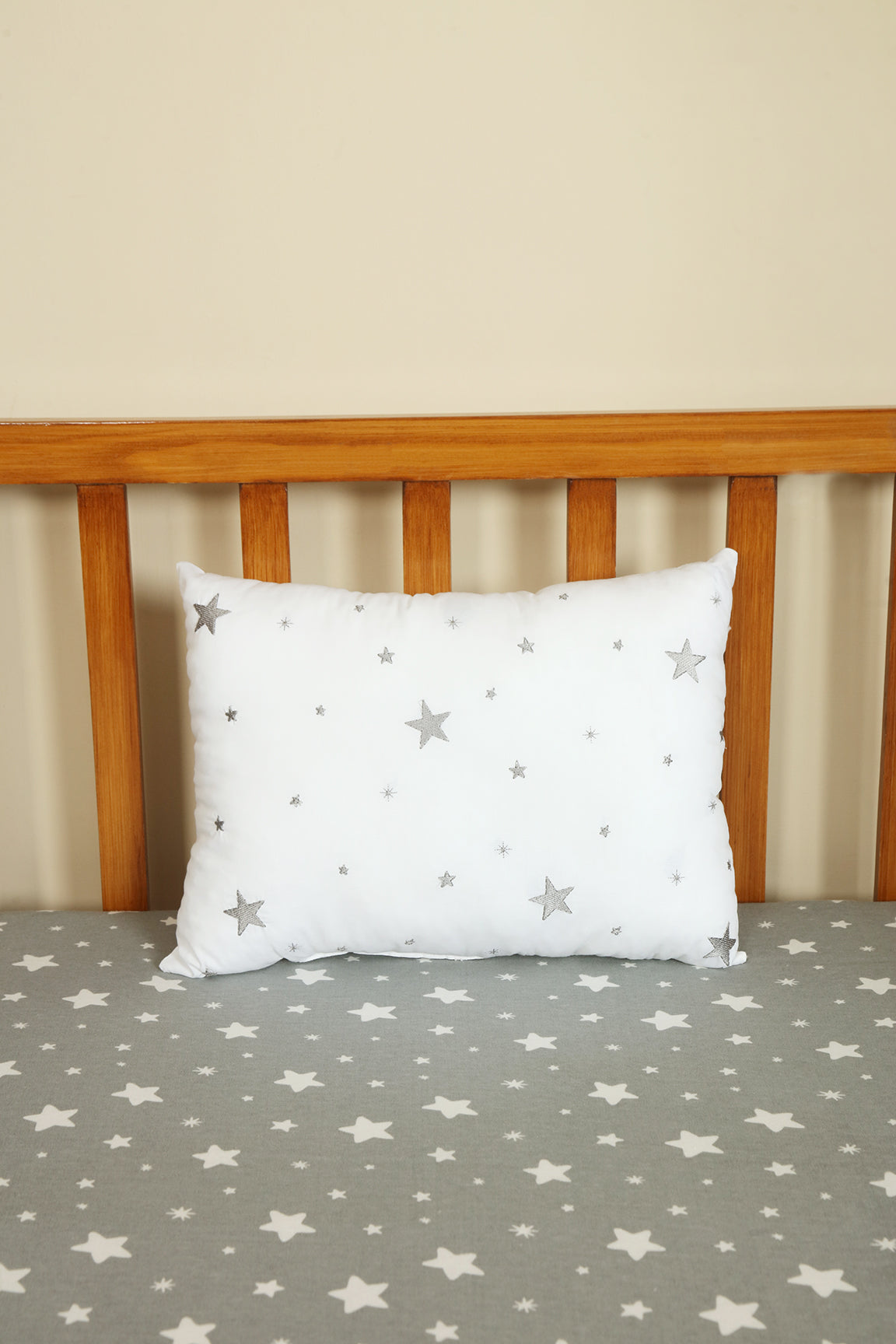 This charming crib bedding features a timeless grey star print, paired with a matching embroidered head pillow design for added versatility. The neutral tones blend seamlessly with any nursery theme, making it perfect for both boys and girls. Crafted from soft, breathable fabric, the bedding offers cozy comfort while the subtle star pattern adds a touch of dreamy elegance. A stylish and practical choice for a modern nursery.