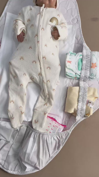 A baby diaper changing sheet provides a clean, comfortable, and hygienic surface for diaper changes, often with added storage for essentials.
