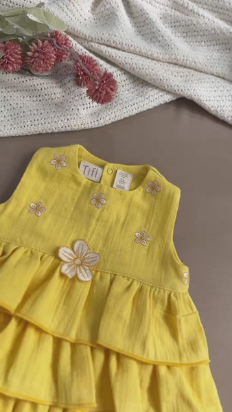 Crafted from soft, breathable muslin fabric, this frock keeps your little one cool and comfortable all day long. Designed with delicate smocking on the bodice, a sweet ruffled collar, and soft flutter sleeves, it brings a timeless, elegant feel to your baby’s wardrobe. The subtle floral print adds a gentle, refreshing touch.