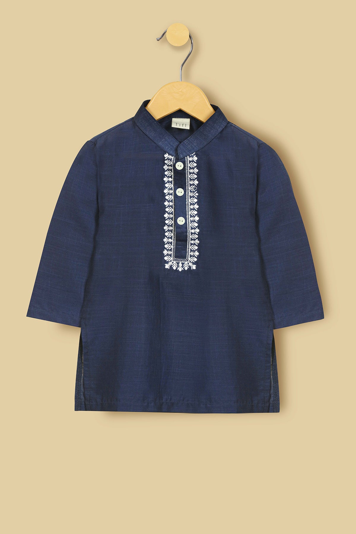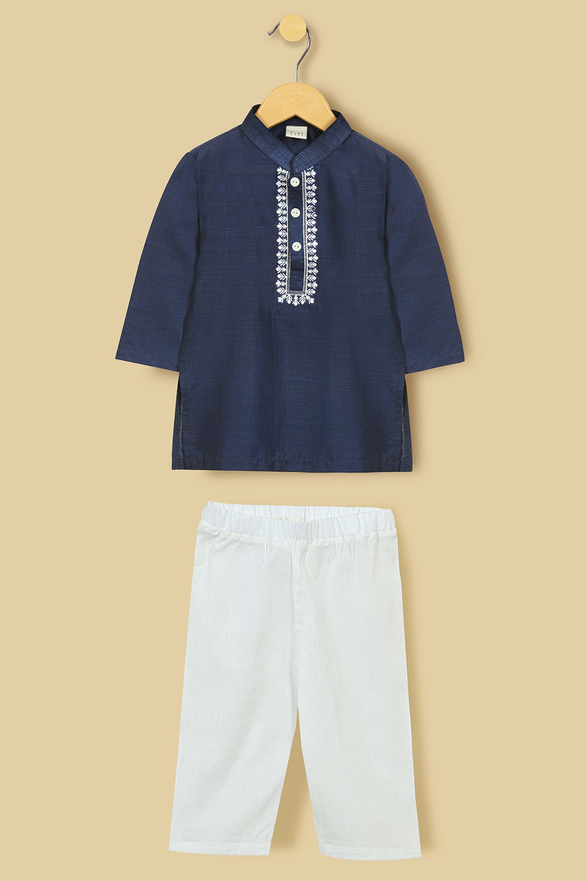 Eid Embroidered Baby Kurta and Trouser-Midnight Blue