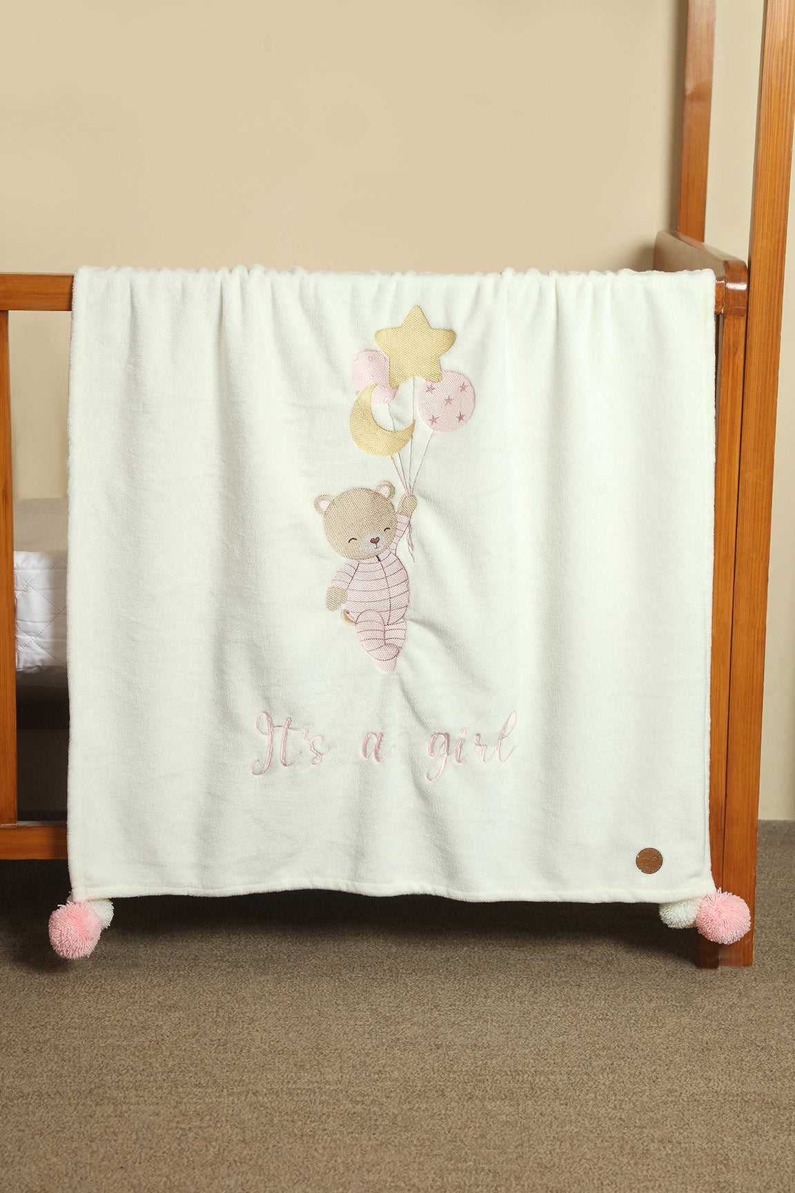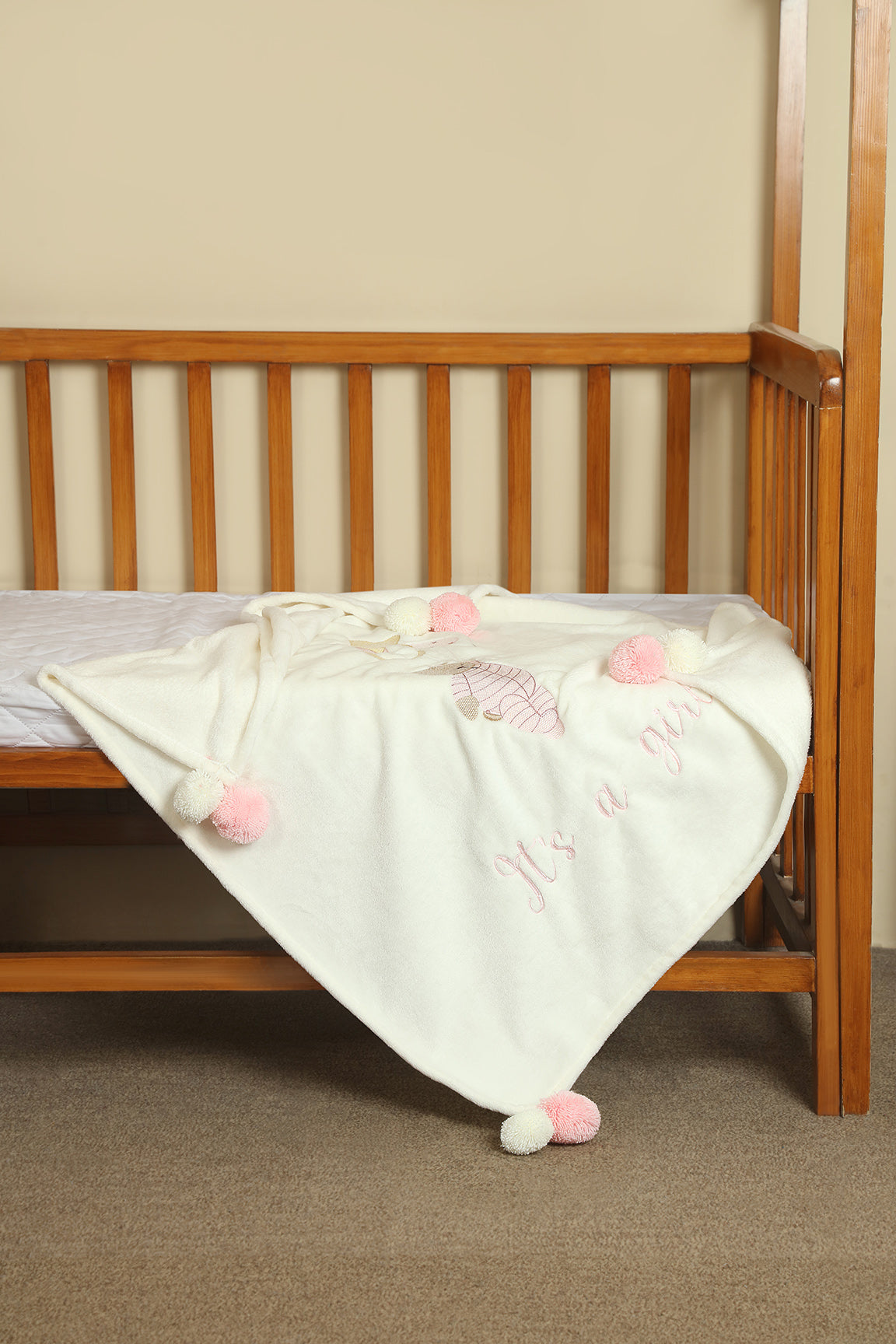 Made from ultra-soft fleece fabric, this blanket offers a gentle, plush feel that provides warmth and comfort for everyday use. The smooth texture and soothing design make it a cozy addition to any space, while the neatly finished edges add a touch of style. Lightweight yet warm, it’s perfect for lounging, relaxing, or staying comfortable during cooler moments. Featuring a delicate embroidery, it’s perfect for peaceful naps and bedtime cuddles.