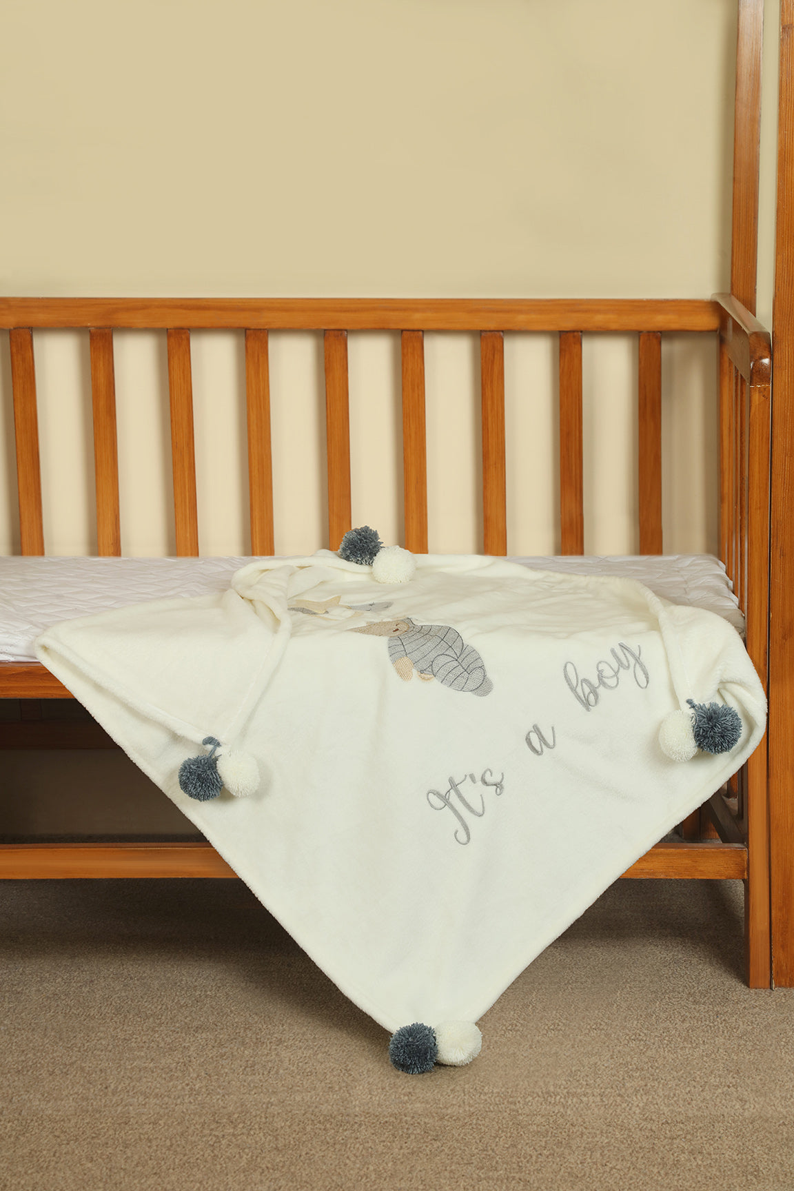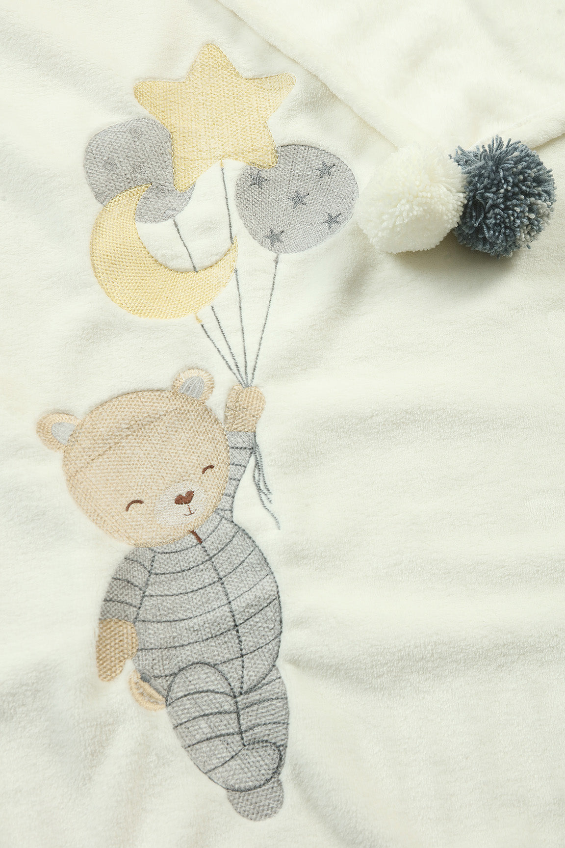 Made from ultra-soft fleece fabric, this blanket offers a gentle, plush feel that provides warmth and comfort for everyday use. The smooth texture and soothing design make it a cozy addition to any space, while the neatly finished edges add a touch of style. Lightweight yet warm, it’s perfect for lounging, relaxing, or staying comfortable during cooler moments. Featuring a delicate embroidery, it’s perfect for peaceful naps and bedtime cuddles.
