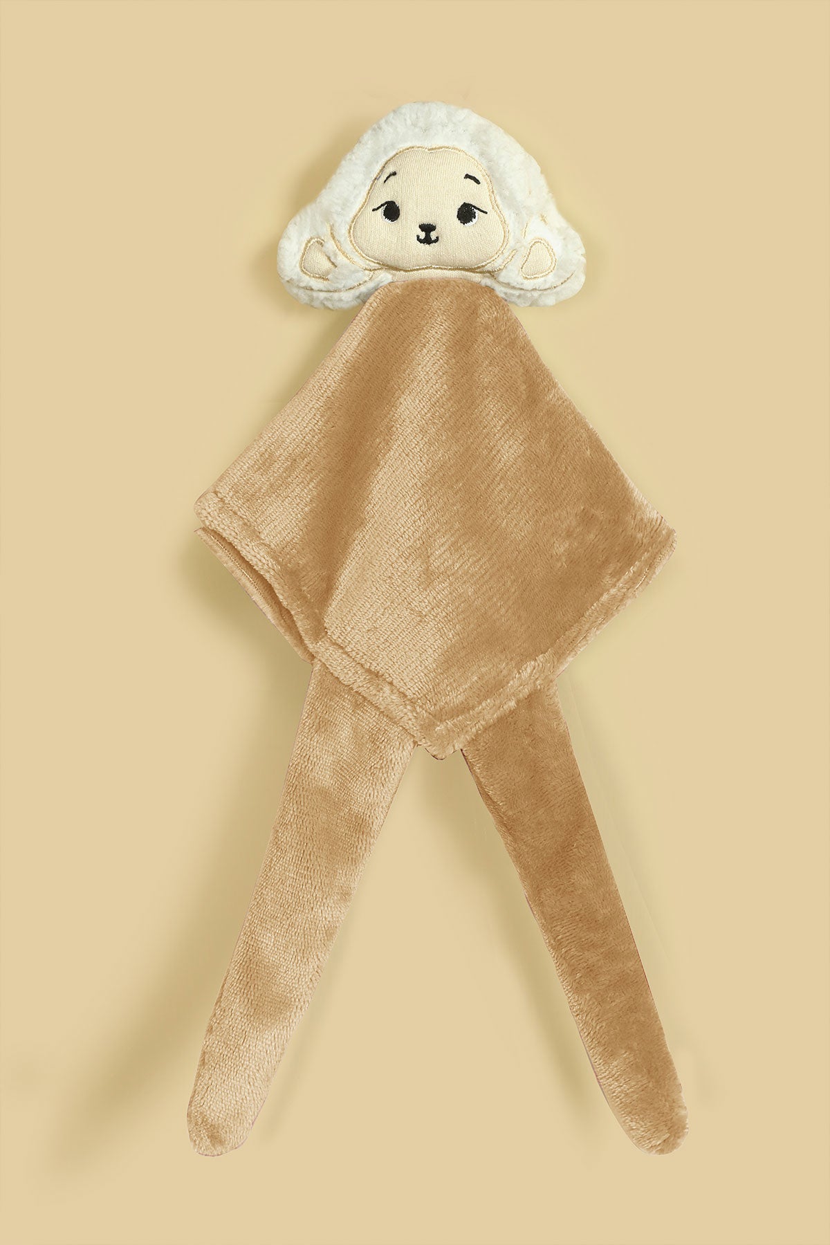 This adorable baby hankie features a soft, microfiber fleece with a cute haml face attached for a touch of charm. A practical yet endearing accessory, it combines comfort and style for your little one.