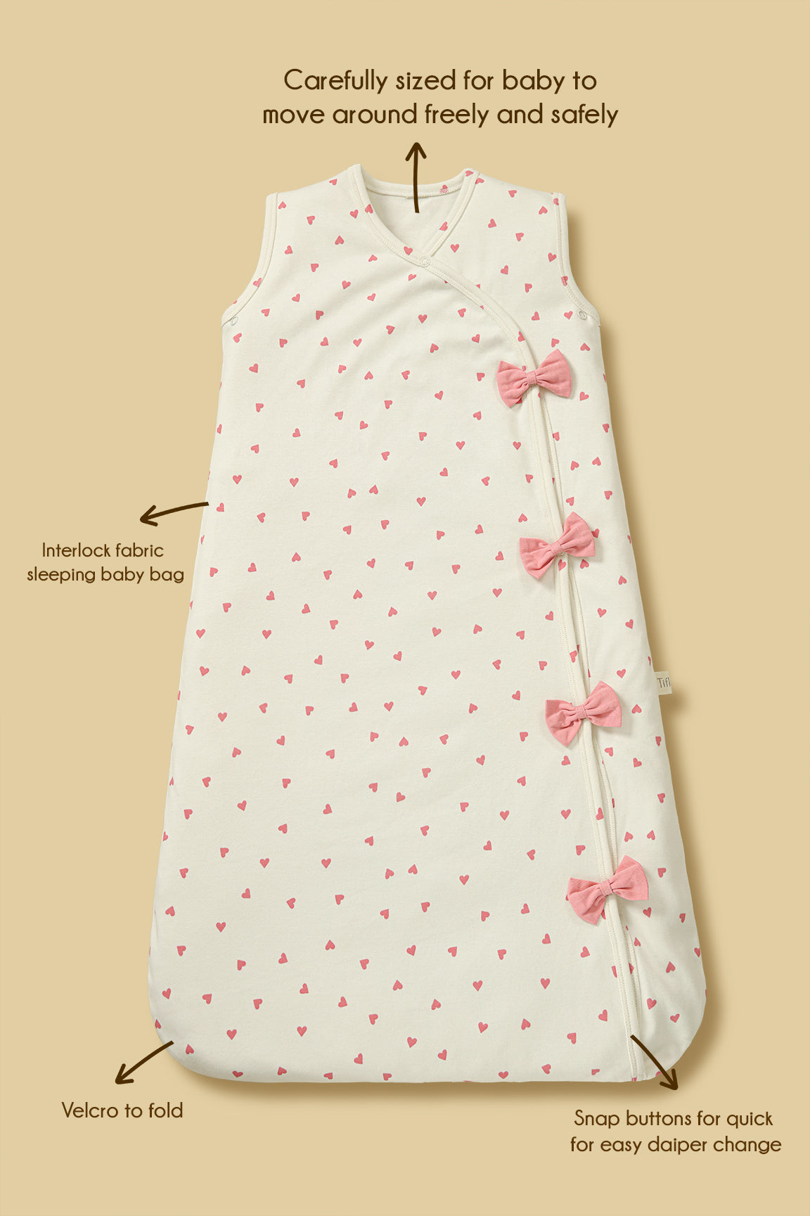 Heart Printed Bows Baby Sleeping Bag-Pink