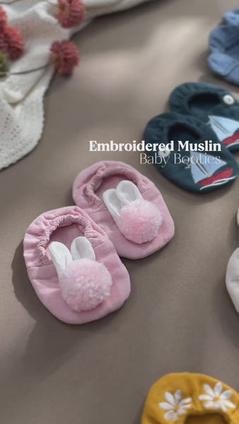 Daisy Embroidered Muslin Baby Booties