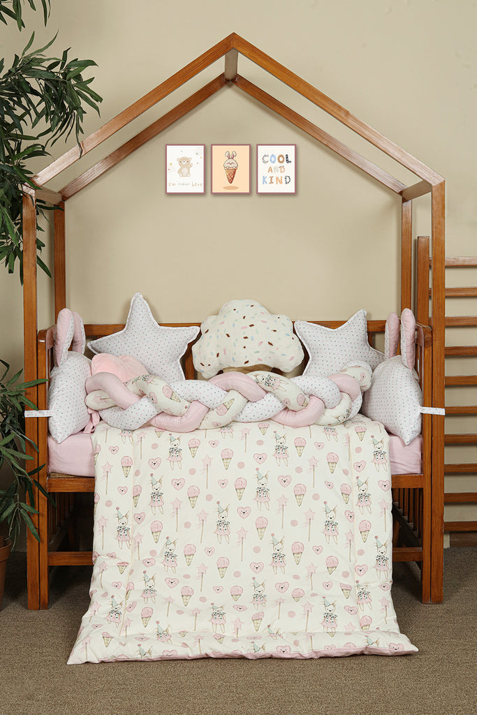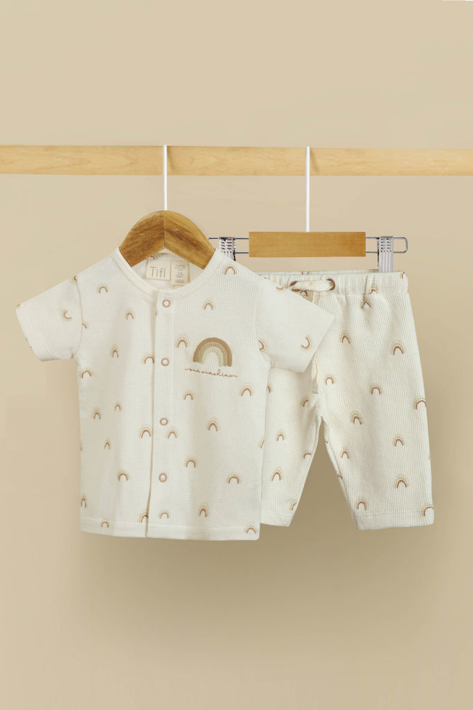 Off White Embroidered Muslin Baby Gift Set (Bow Headband, Shoes, Bib)