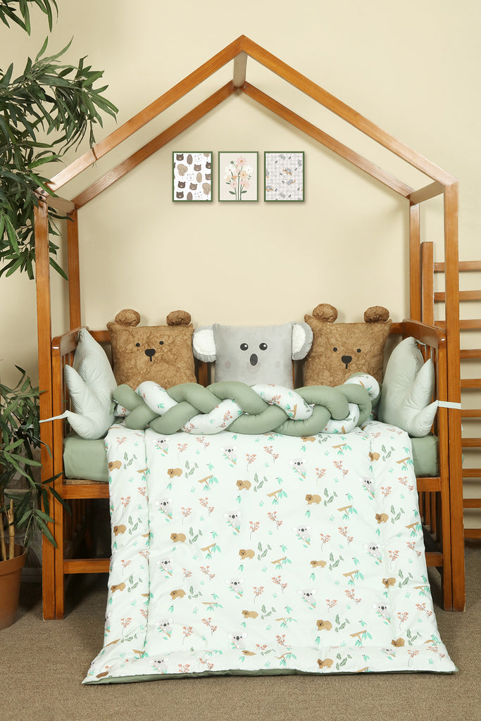 Olive Green Embroidered Muslin Baby Gift Set (Bow Headband, Shoes, Bib)
