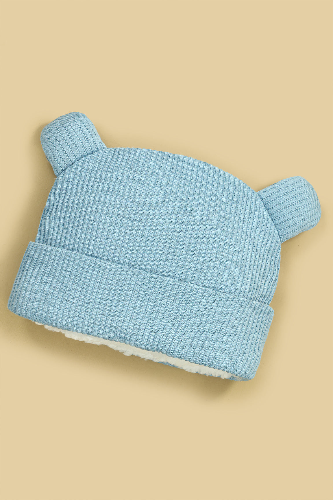 Soft and cozy sherpa-lined caps designed to keep little heads warm and comfortable.