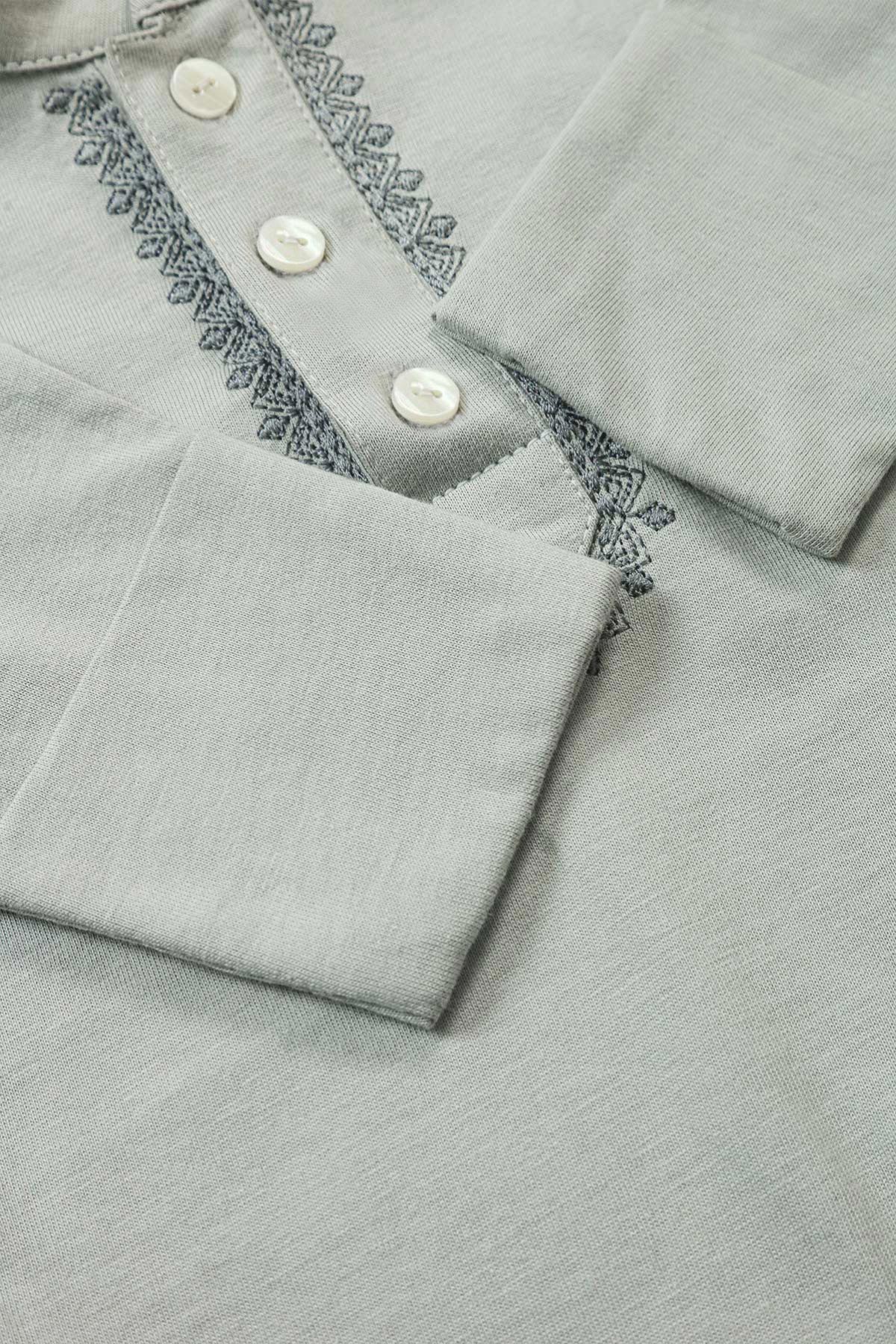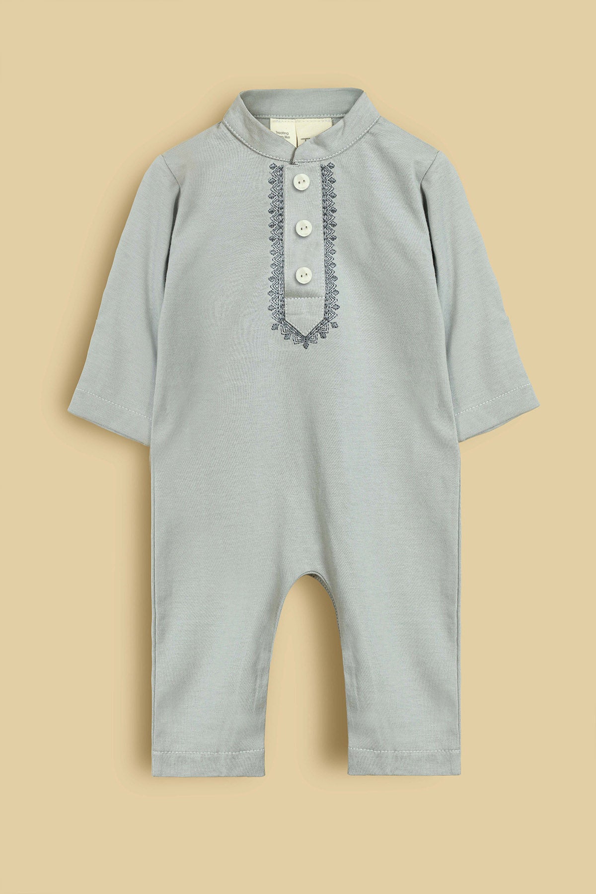 Eid Embroidered Baby Romper-Mist Grey