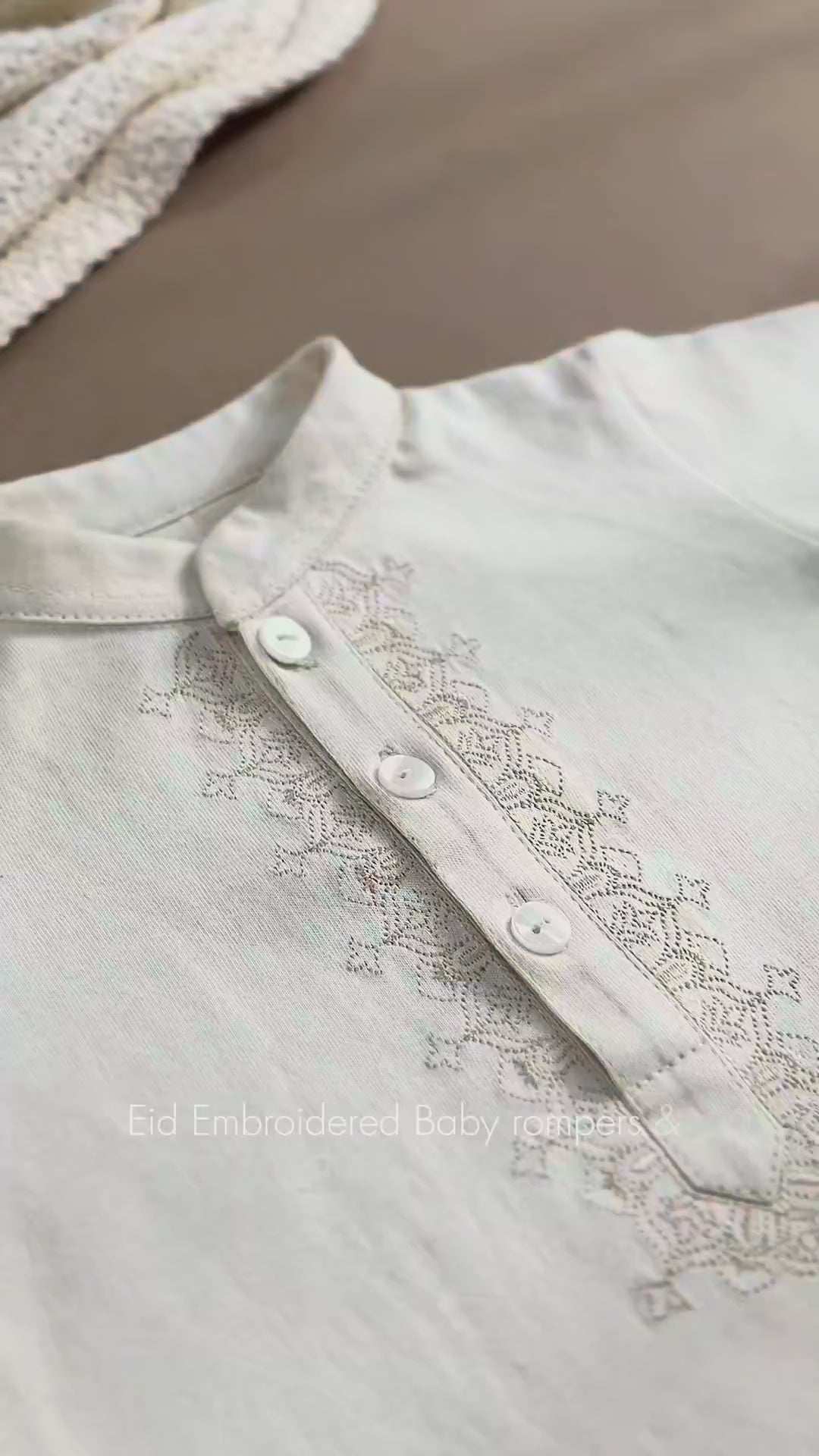 Crafted from soft knitted cotton along with our signature embroidery. featuring front placket with snap button detailing makes it perfect for babies on Eid. The relaxed fit and hidden button at bottom make diaper changes quick and easy.