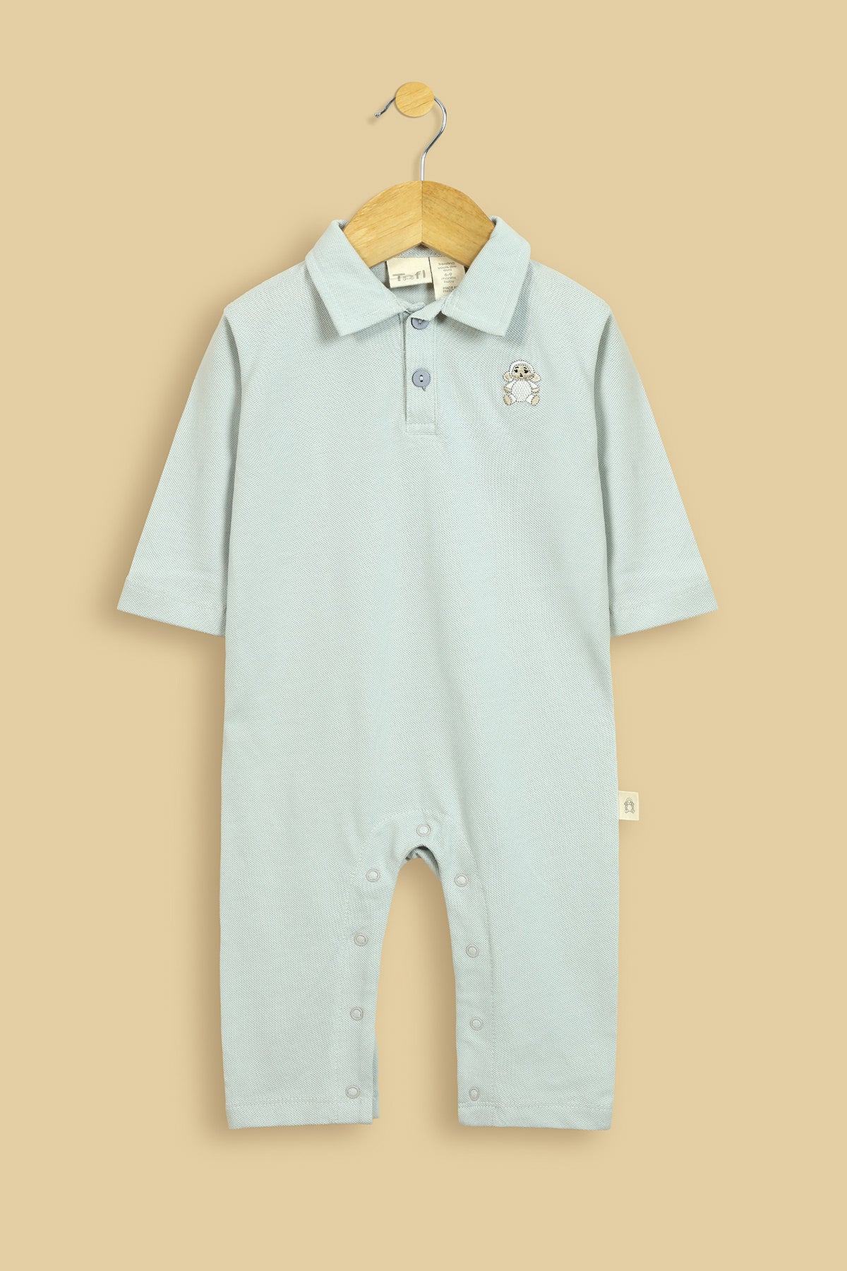 Grey Polo Overall Embroidered Haml Romper-Baby Boy