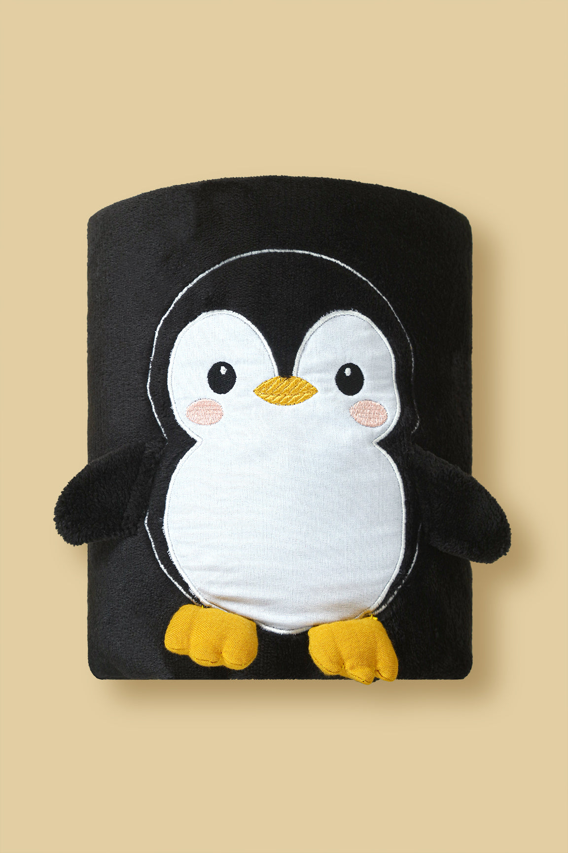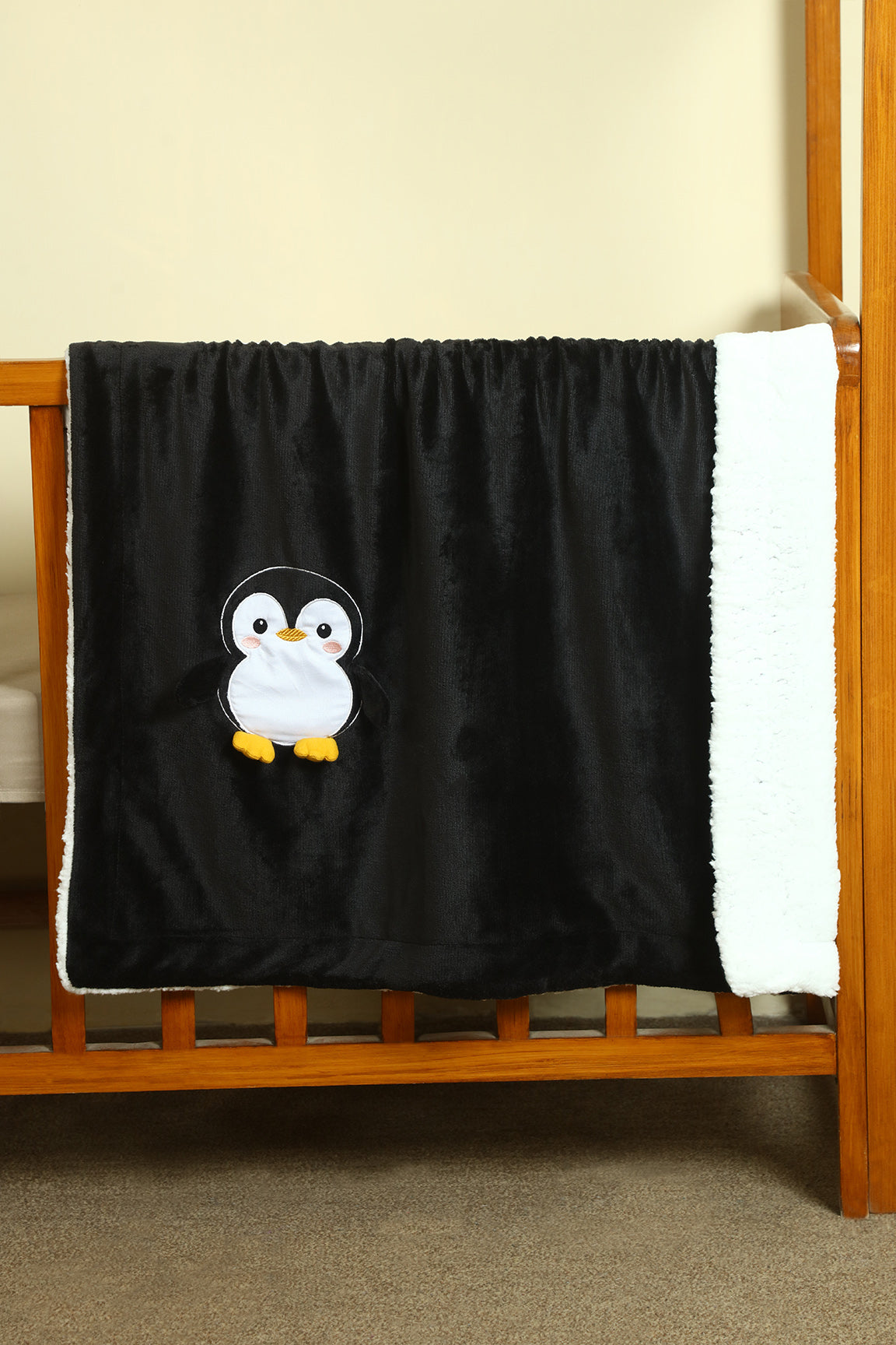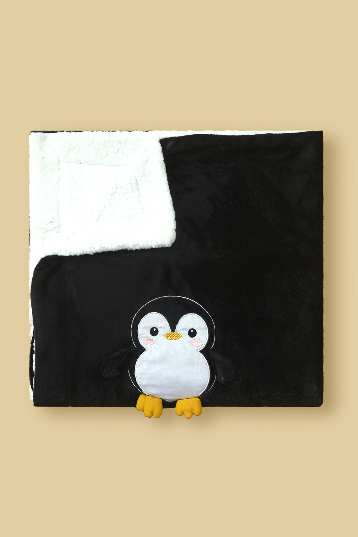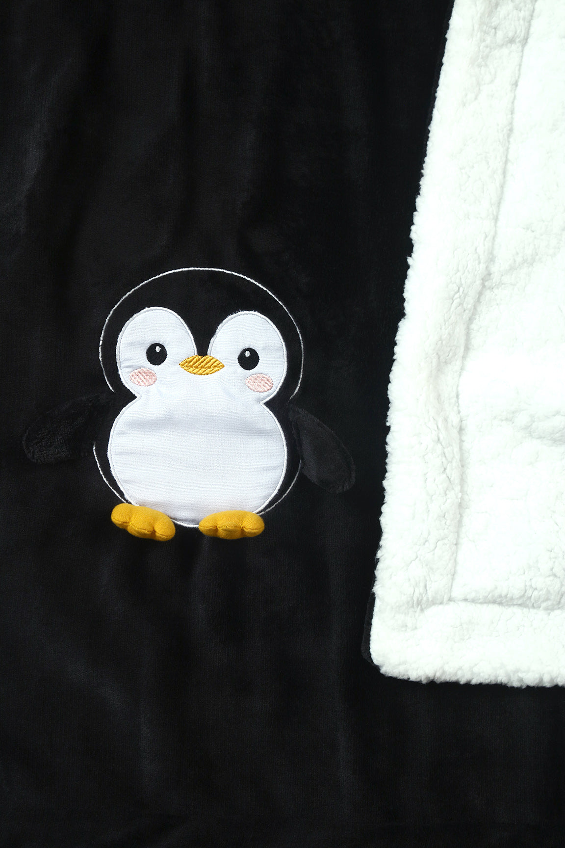 Penguin Embroidered Fleece-Sherpa Baby Blanket