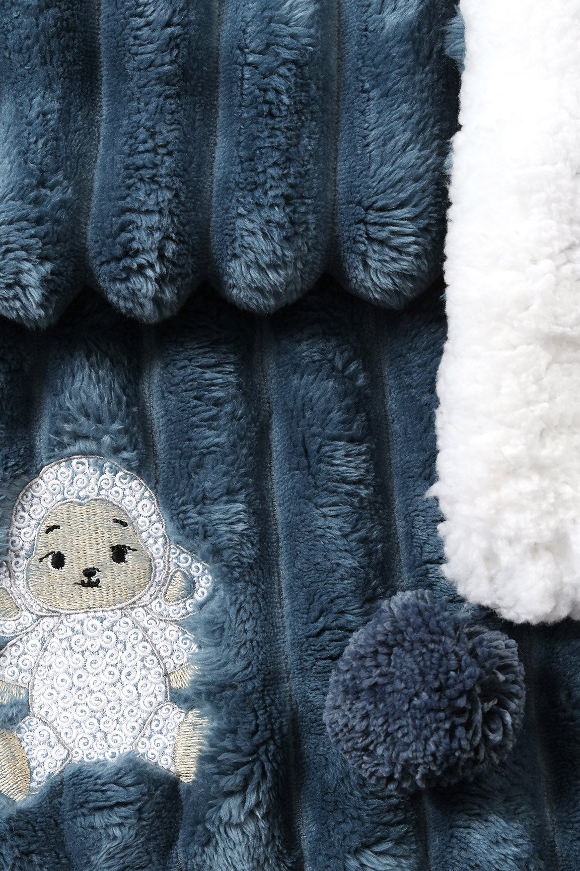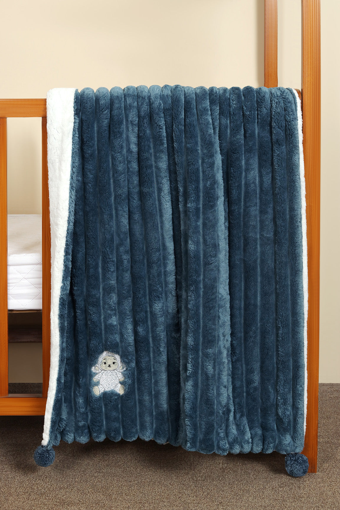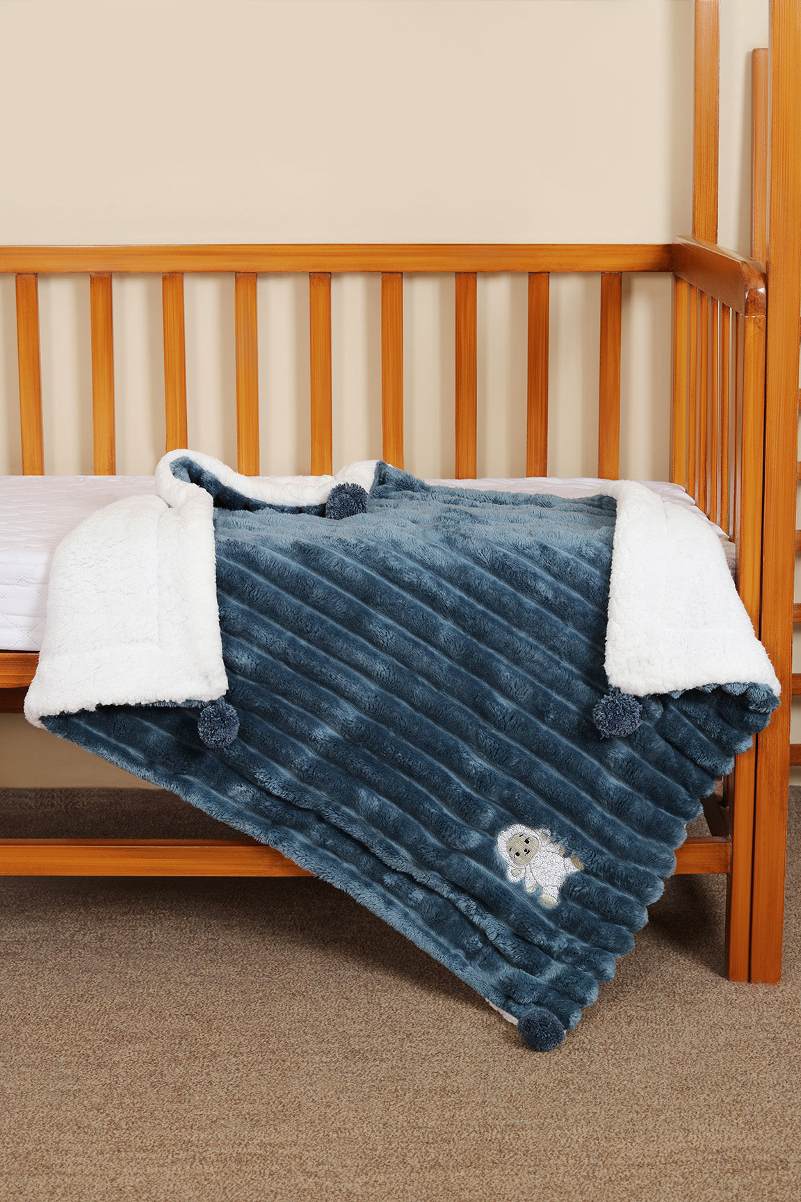 This Sherpa-lined fleece baby blanket offers ultimate warmth and softness, perfect for keeping your little one cozy. With single embroidered sheep motif. The plush Sherpa lining adds extra comfort. Ideal for both cuddling at home and on-the-go, this blanket combines luxury and practicality.